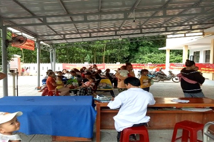 Bà mẹ đưa trẻ đến đăng ký tiêm chủng tại TYT xã Hương Nguyên và Hồng Hạ huyện A Lưới