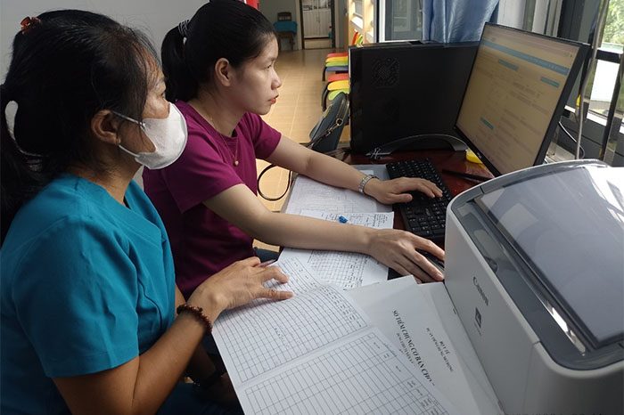Cán bộ CDC tỉnh hướng dẫn trên phần mềm tại TYT Hương Nguyên, huyện A Lưới