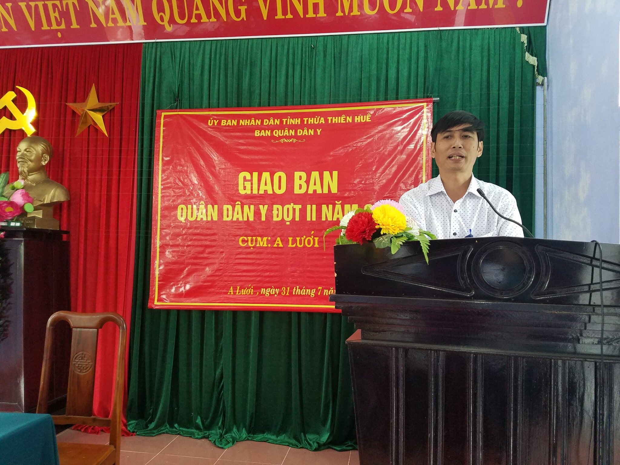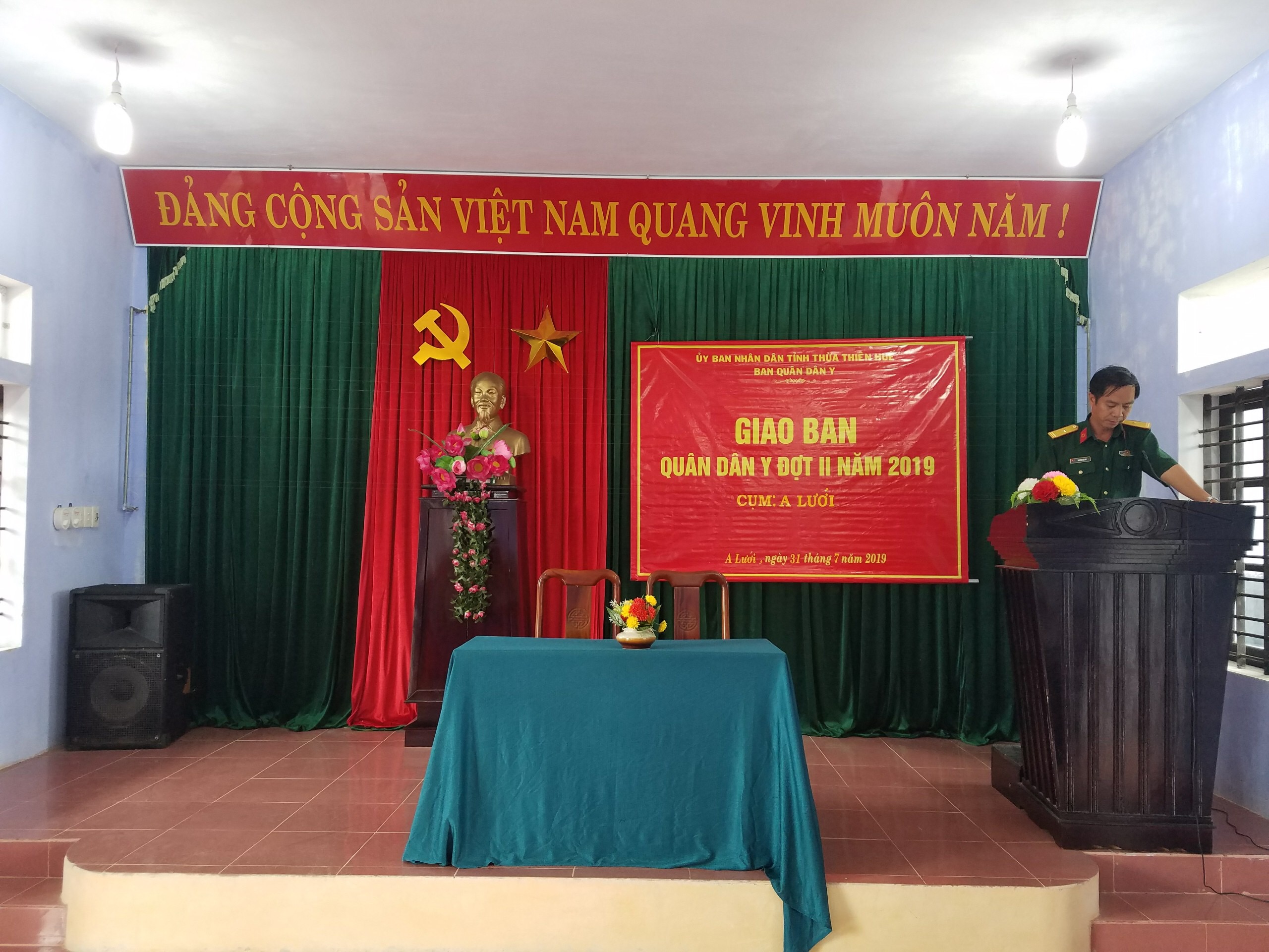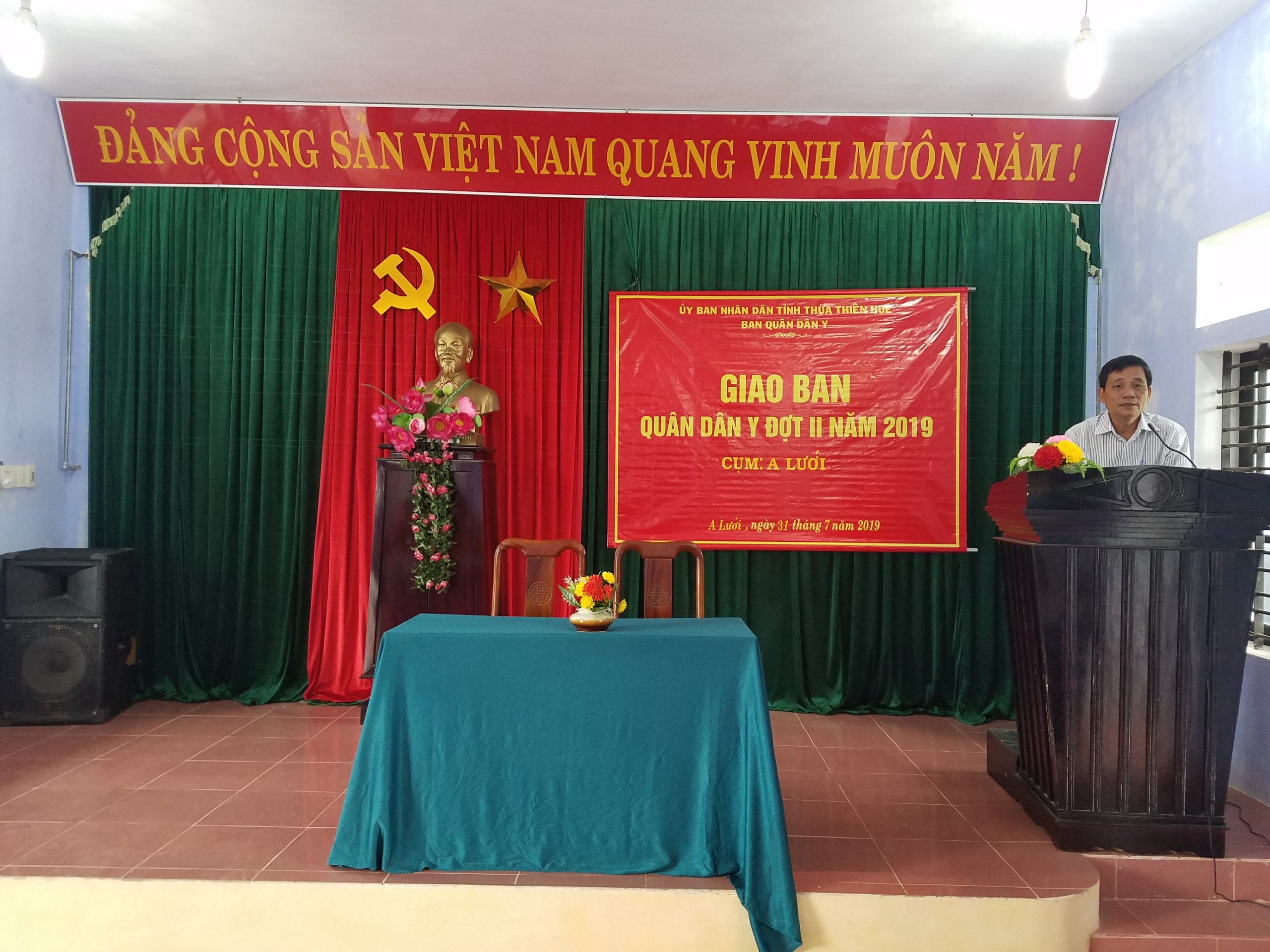 Ngày 31/7/2019, tại huyện đội thị trấn huyện A Lưới, hội nghị giao ban Quân dân y 6 tháng đầu năm 2019 do Ban quân dân y tỉnh phối hợp với Cụm Quân dân y A Lưới tổ chức. Ths.Bs Phan Đăng Tâm - Phó Giám đốc Trung tâm Kiểm soát bệnh tật, đại diện Ban Quân y tỉnh đội và Ban Quân Y Bộ đội biên phòng tỉnh cùng chủ trị hội nghị.