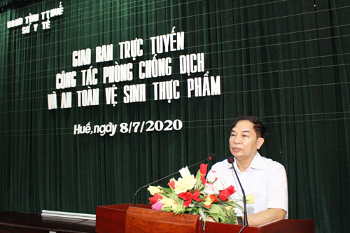 Chiều ngày 08-07-2020, Sở Y tế tổ chức Hội nghị trực tuyến đánh giá công tác phòng chống dịch, an toàn vệ sinh thực phẩm và triển khai những nhiệm vụ trọng tâm trong thời gian tới. TS.BS Nguyễn Nam Hùng - Giám đốc Sở Y tế chủ trì hội nghị tại điểm cầu Sở Y tế cùng với Ban lãnh đạo Sở Y tế, lãnh đạo Chi cục VSATTP, Trung tâm KSBT tỉnh; 9 TTYT huyện/thị xã/thành phố, các cán bộ chuyên trách phòng chống dịch tại điểm cầu trực tuyến của các TTYT và đơn vị trực thuộc.