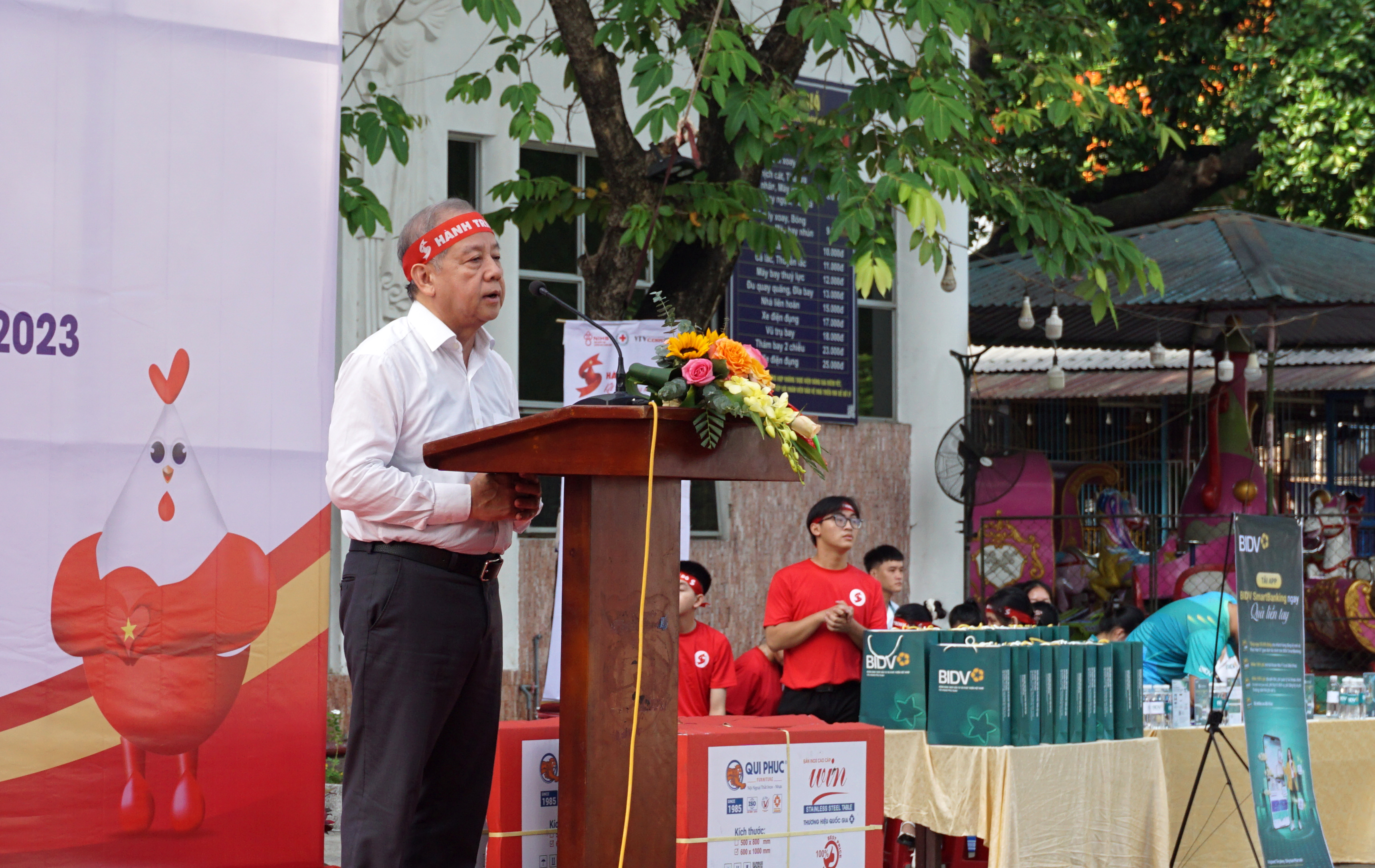 Ông Phan Ngọc Thọ - Phó Bí thư Thường trực Tỉnh ủy - Chủ tịch danh dự Hội Chữ thập đỏ tỉnh, phát biểu kêu gọi cộng đồng tích cực tham gia hiến máu tình nguyện với thông điệp “Kết nối dòng máu Việt” và “Giọt Hồng xứ Huế”.