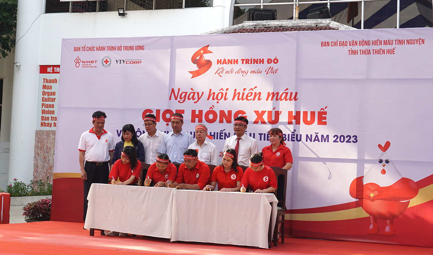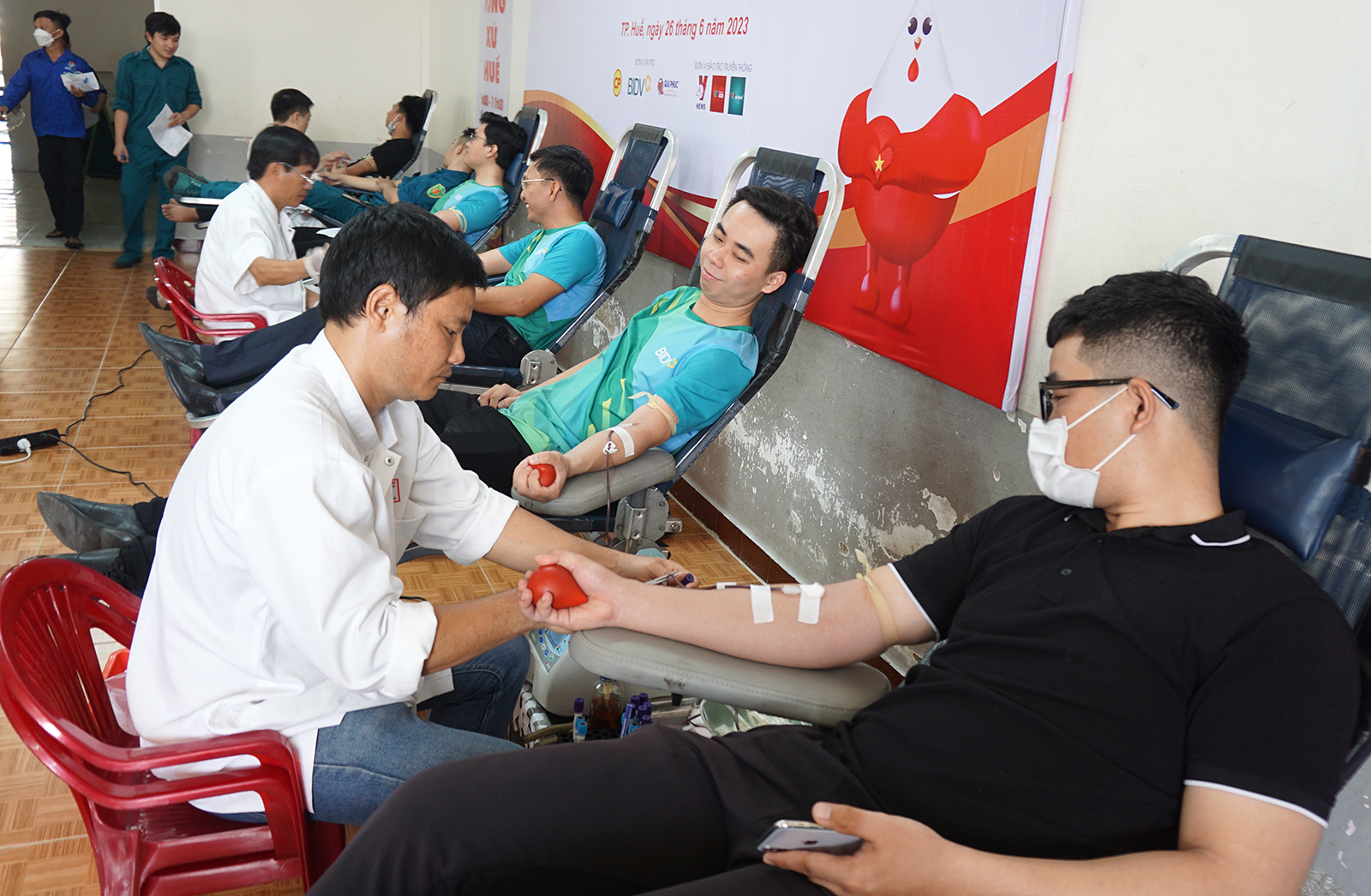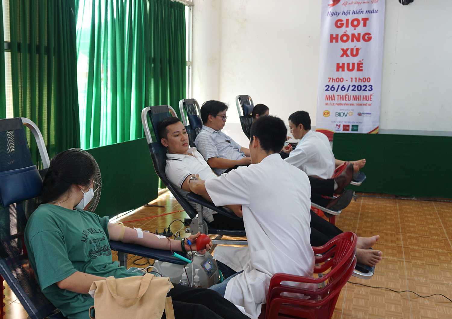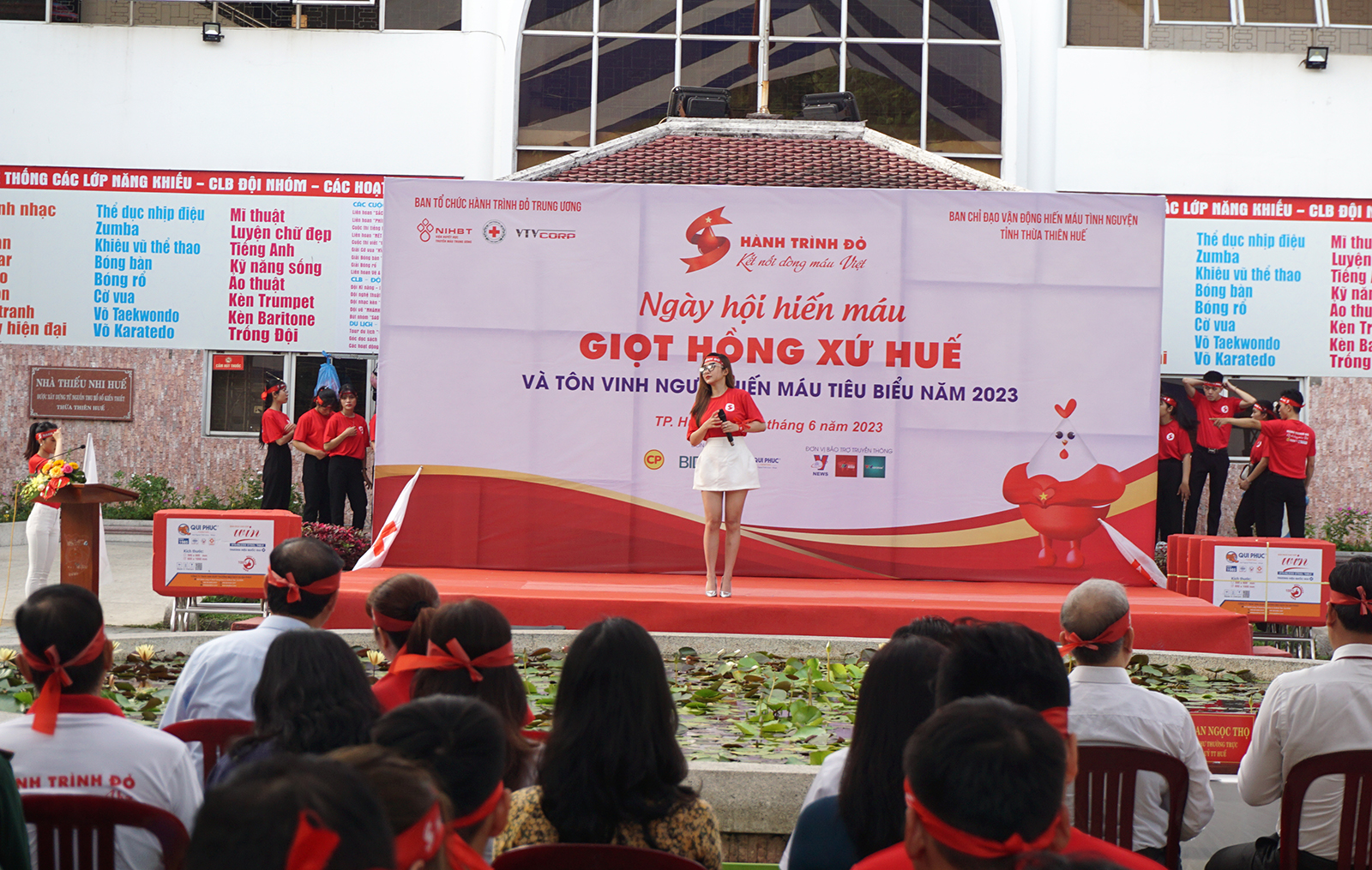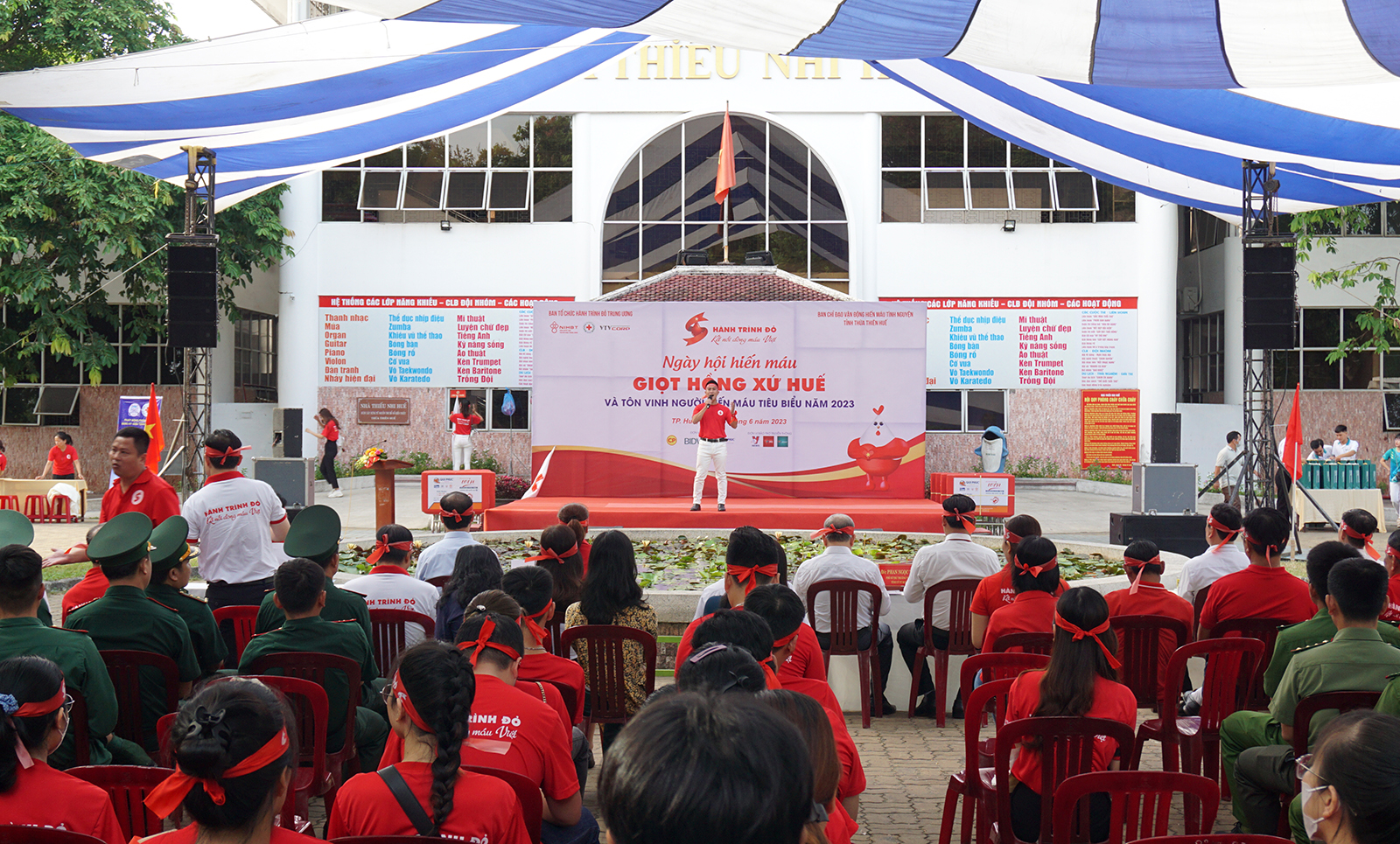 Sáng ngày 26/6/2023, tại Nhà Văn hóa Thiếu nhi Huế, Ban Chỉ đạo vận động hiến máu tình nguyện tỉnh Thừa Thiên Huế phối hợp với Ban Tổ chức Hành trình Đỏ Trung ương tổ chức “Ngày Hội hiến máu - Giọt Hồng xứ Huế” và tôn vinh người hiến máu tiêu biểu năm 2023. Tham dự ngày hội có ông Phan Ngọc Thọ - Phó Bí thư Thường trực tỉnh ủy - Chủ tịch danh dự Hội chữ thập đỏ tỉnh, ông Nguyễn Chí Tài - Trưởng Ban Dân vận tỉnh ủy, PGS.TS.BS Trần Kiêm Hảo - Giám đốc Sở Y tế, TS.BS Mai Đình Điểu - Phó Giám đốc BVTW Huế, cùng đông đảo đại biểu các cơ quan/ban ngành, các tổ chức Hội Phụ nữ, Đoàn Thanh niên, Hội Chữ Thập đỏ, lực lượng vũ trang, các nhà tài trợ… và đặc biệt là những tình nguyện viên những người đã hiến những giọt máu hồng của mình để cứu bao người.
