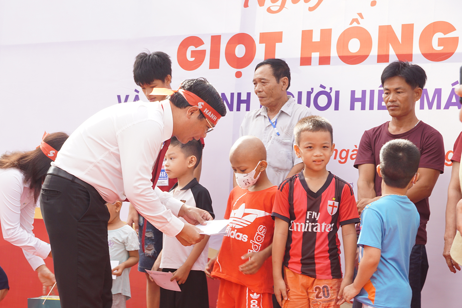 Ban Tổ chức trao 20 suất quà cho 20 bệnh nhân nhi và 10 suất quà cho 10 hộ gia đình có hoàn cảnh khó khăn tổng giá trị hơn 23 triệu đồng.