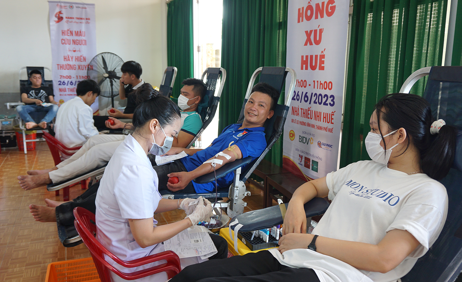 Ngày hội hiến máu lần thứ VII năm 2023 tại Thừa Thiên Huế có chủ đề “Giọt Hồng Xứ Huế” được diễn ra trong tháng 6 và 7/2023. Từ đầu tháng 6 đến nay, sau 8 đợt tổ chức, toàn tỉnh đã hiến tặng trên 1.790 đơn vị máu. Thông qua Chương trình “Hành trình Đỏ - Kết nối dòng máu Việt”, Ban Chỉ đạo VĐHMTN tỉnh Thừa Thiên Huế sẽ tiếp tục phối hợp với các ban ngành/đoàn thể, các địa phương, trường học vận động trên 4.000 đơn vị máu mà Ban Chỉ đạo quốc gia đã giao, góp phần khắc phục tình trạng thiếu máu điều trị và cấp cứu cho bệnh nhân.