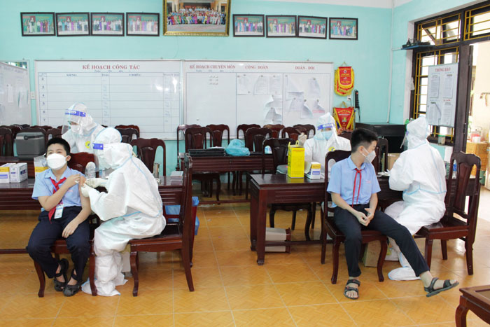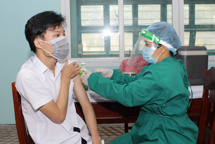 Sở Y tế tỉnh Thừa Thiên Huế phối hợp Sở Giáo dục và Đào tạo và các đơn vị liên quan chỉ đạo triển khai tiêm vắc xin phòng Covid-19 đúng quy trình, nhanh chóng, thuận tiện nhất cho người dân trên tinh thần đảm bảo tuyệt đối an toàn, không để dịch bệnh lây lan trên cộng đồng. Trong đó, phấn đấu mục tiêu phủ ít nhất 1 mũi vắc xin cho toàn bộ học sinh khối cấp 2, cấp 3 để các em đi học trở lại bình thường trước ngày 15/12/2021. Dưới đây Một số hình ảnh tiêm chủng cho học sinh tại các điểm tiêm các huyện, thị xã, thành phố Huế: