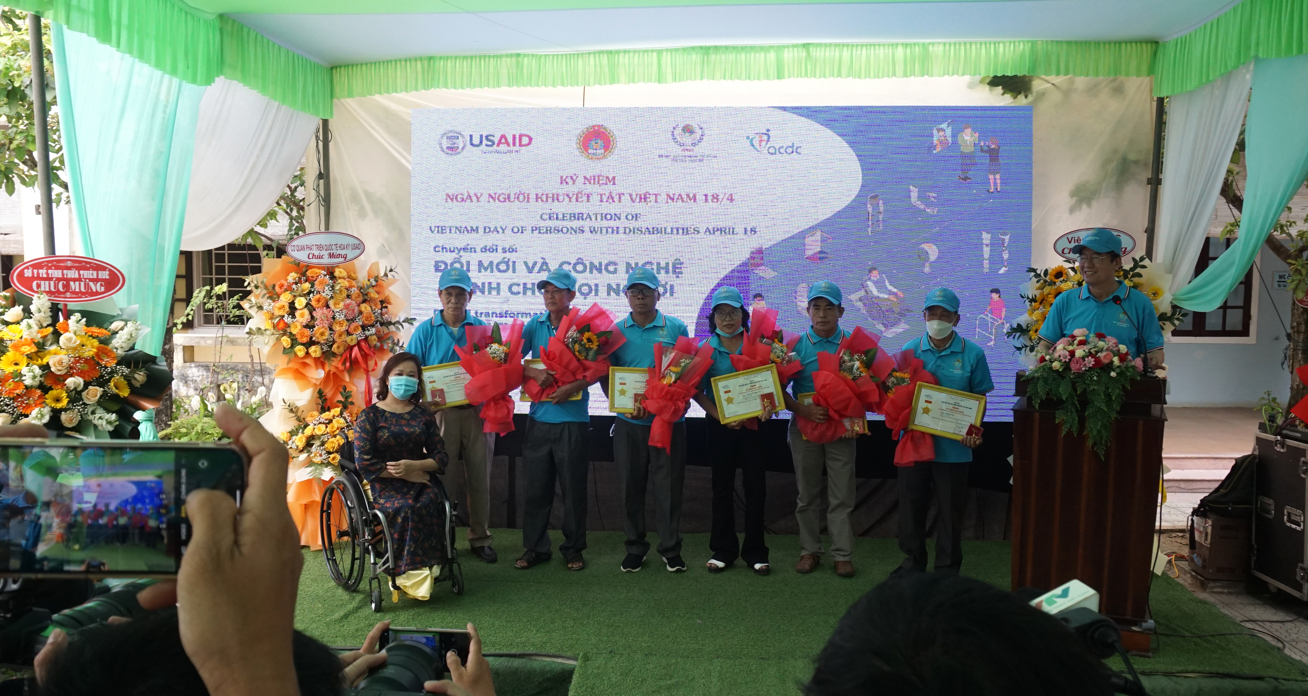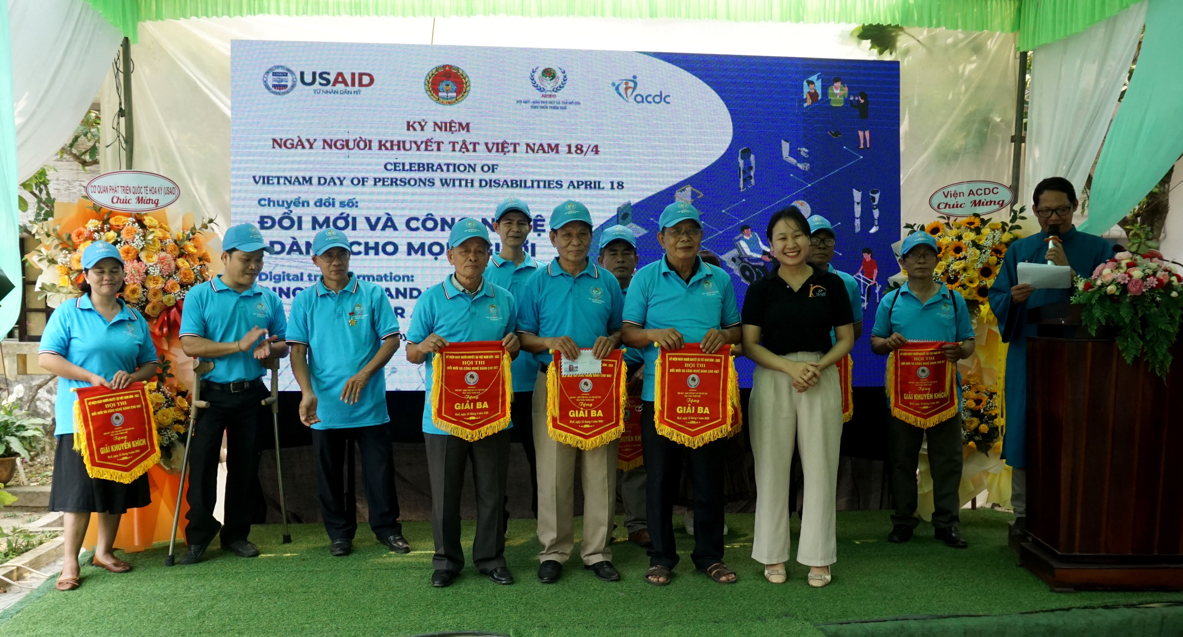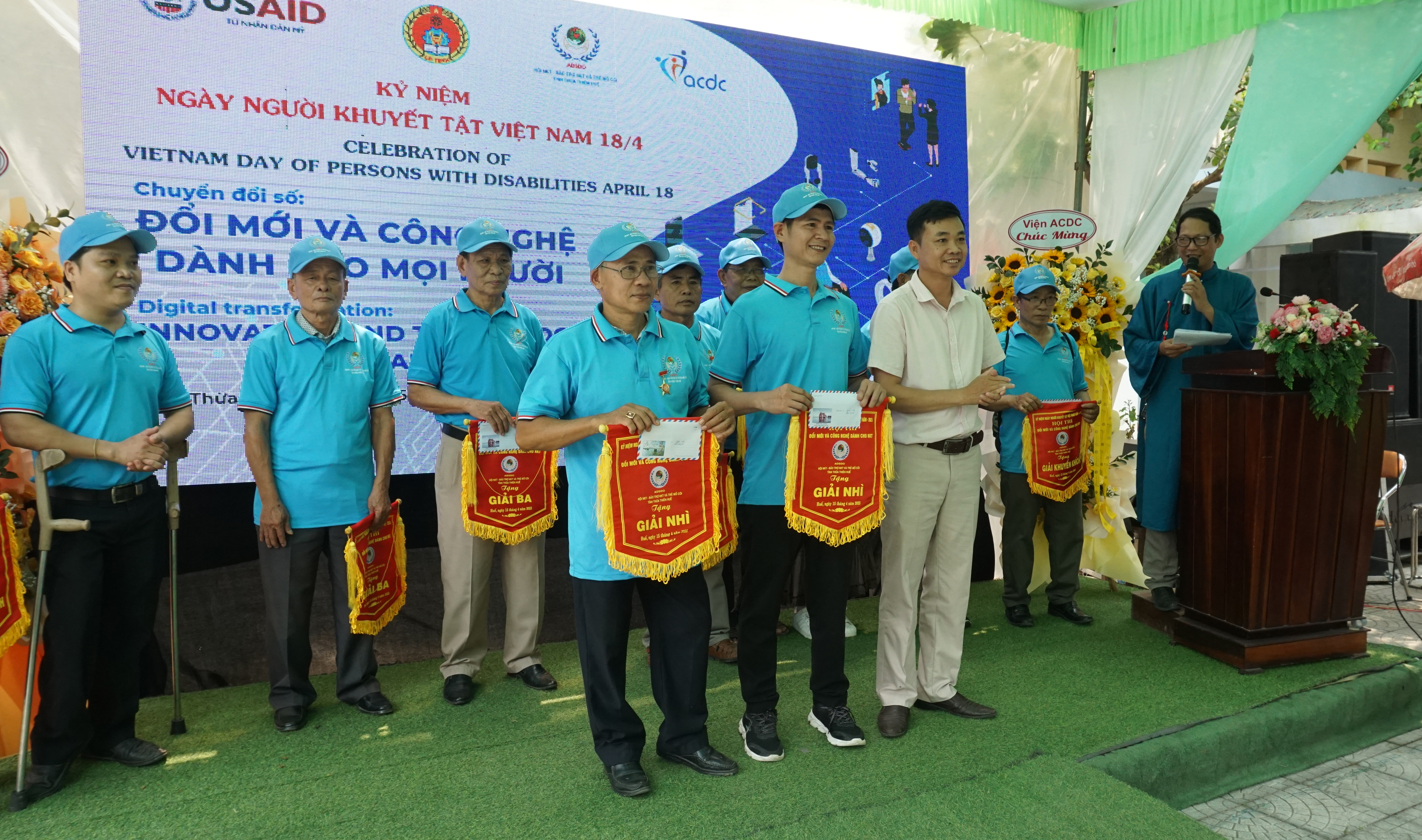 Ban Tổ chức trao giải thưởng "Hội thi Đổi mới và Công nghệ dành cho NKT". Giải Ba thuộc về Đội NKT huyện Nam Đông, Phú Lộc, Phú Vang; giải Nhì: thị xã Hương Trà, Hương Thủy; giải Nhất thuộc về Trung tâm dạy nghề và tạo việc làm cho NKT