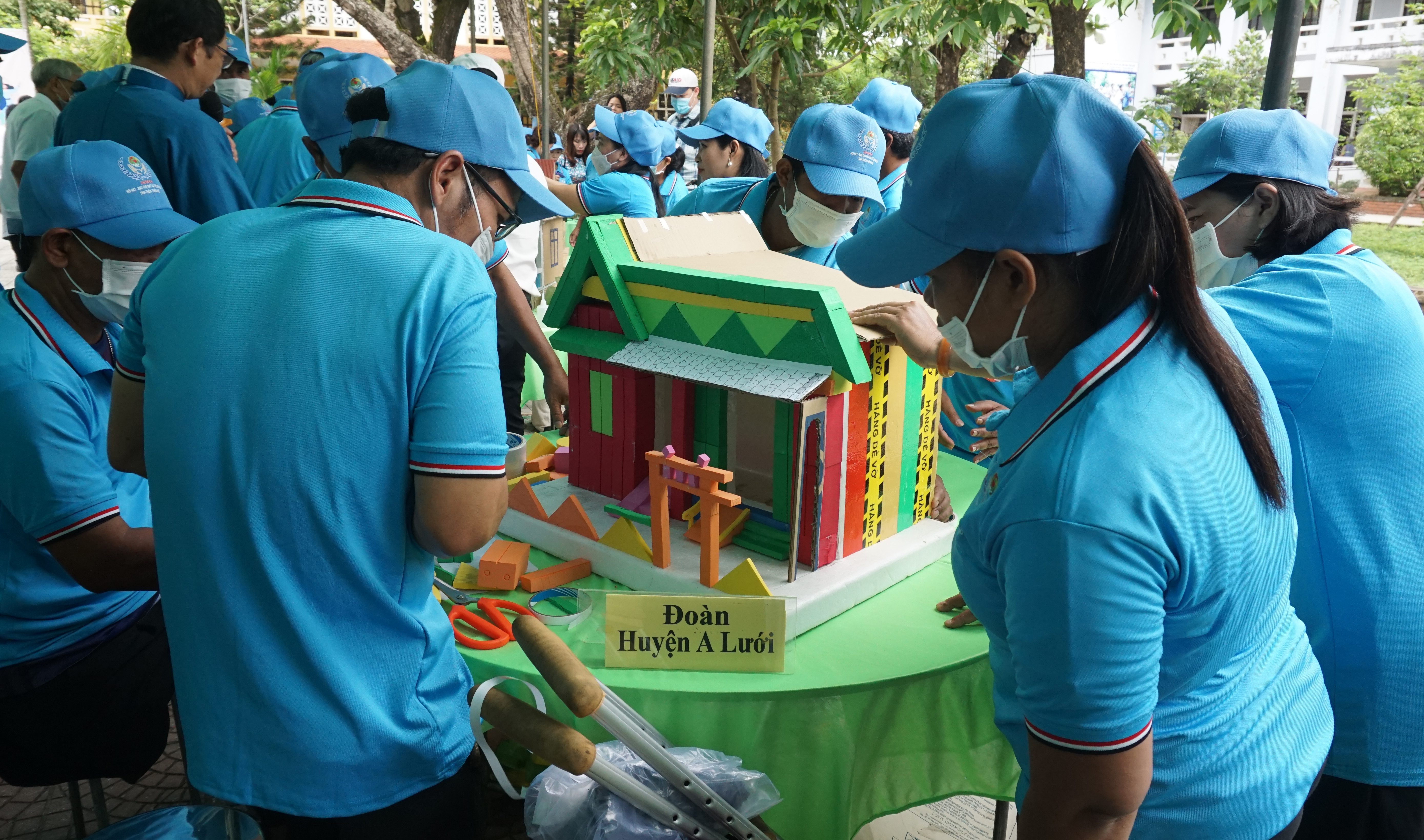 Các đội tham gia phần thi lắp ghép "Ngôi nhà mơ ước" thích ứng và an toàn dành cho người khuyết tật bằng các vật liệu phế thải.