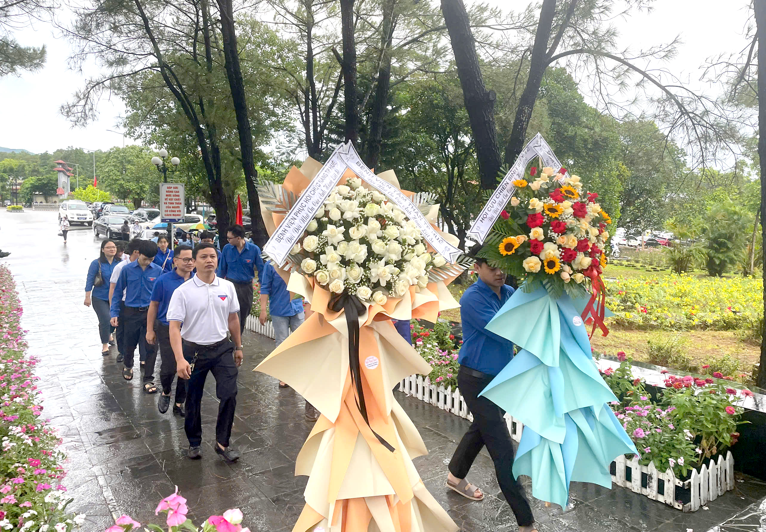Các Hội viên Cựu chiến binh, Đoàn TNCS Hồ Chí Minh Sở Y tế, BV Phục hồi chức năng Huế và BV Tâm thần Huế dâng hoa và dâng hương trước tượng đài Nghĩa trang Liệt sĩ thành phố Huế.