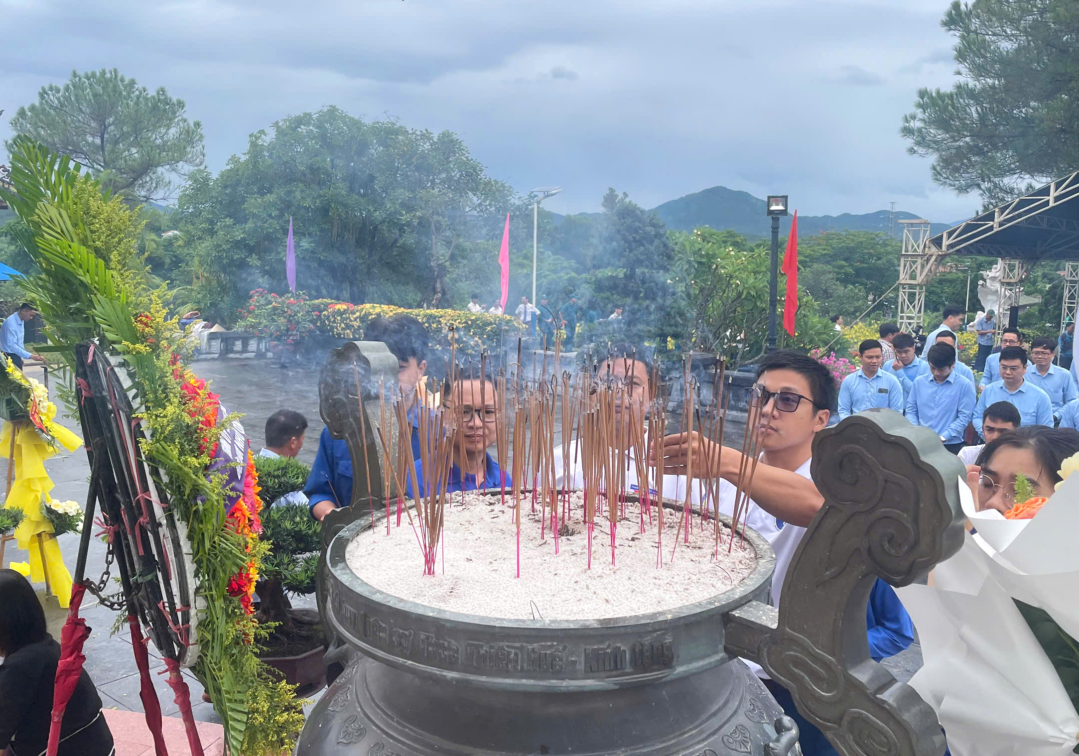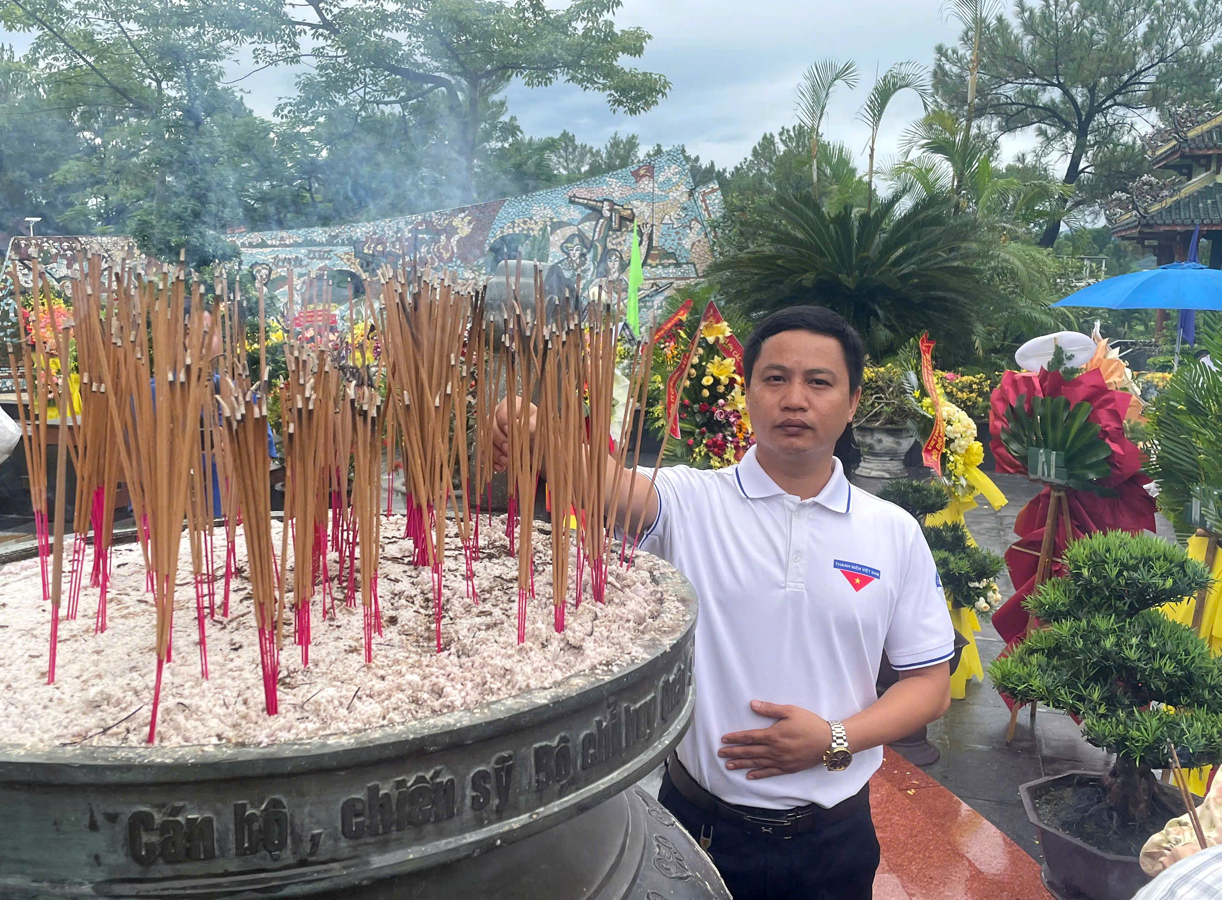 Thành kính dâng hương trước tượng đài Nghĩa trang Liệt sĩ thành phố Huế.