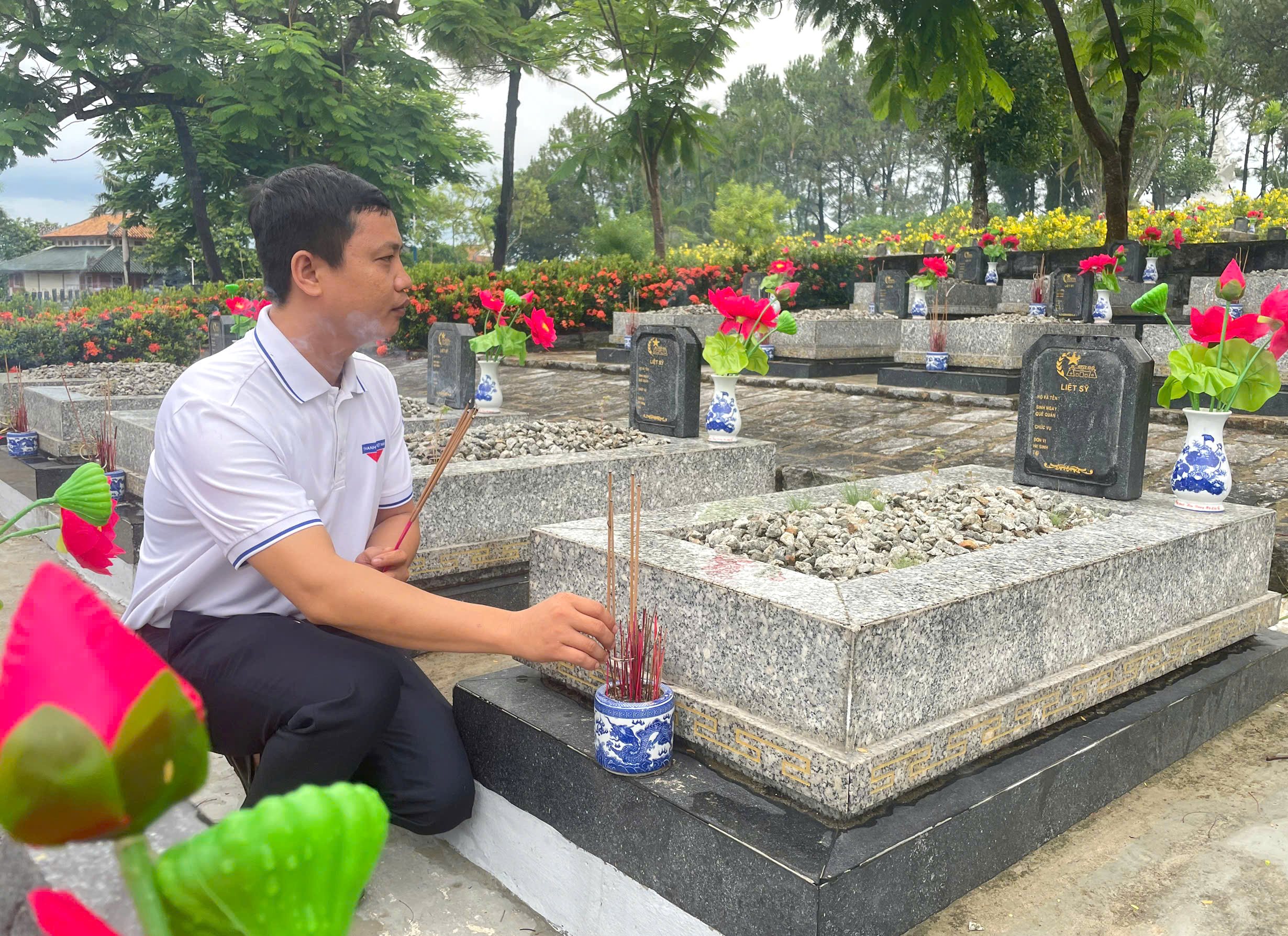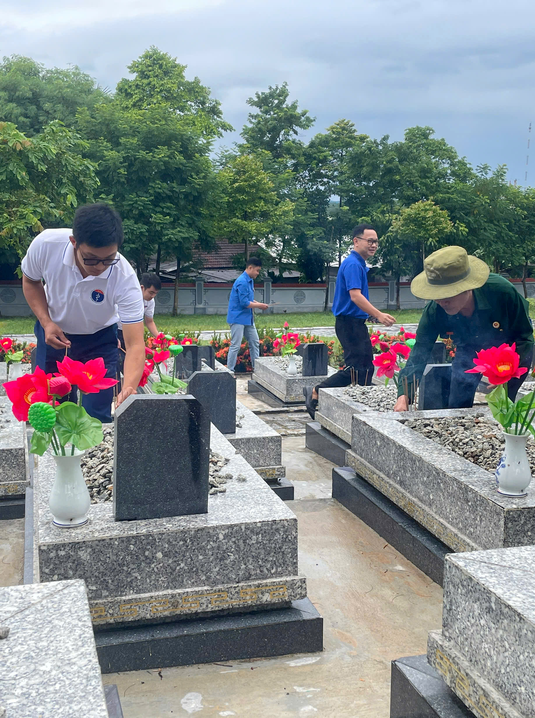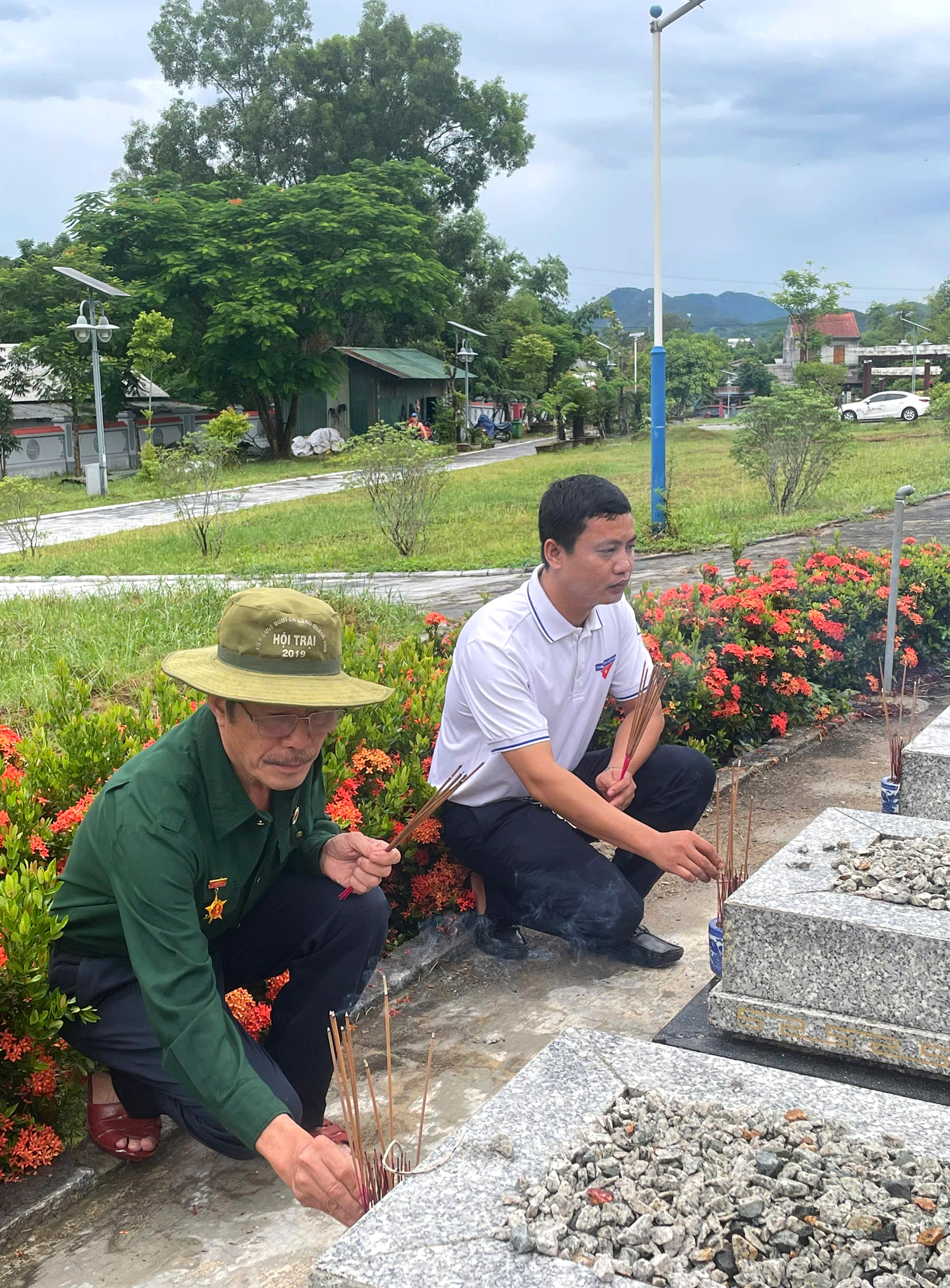 Ngay sau lễ dâng hoa, dâng hương, các Hội viên CCB và các ĐVTN, đã thắp những nén hương với lòng biết ơn sâu sắc tri ân lên từng phần mộ liệt sĩ, thể hiện lòng thành kính đối với các Anh hùng Liệt sĩ không tiếc máu xương, đã anh dũng hy sinh vì sự nghiệp cách mạng vĩ đại của dân tộc, vì nhân dân, vì tổ quốc Việt nam.
