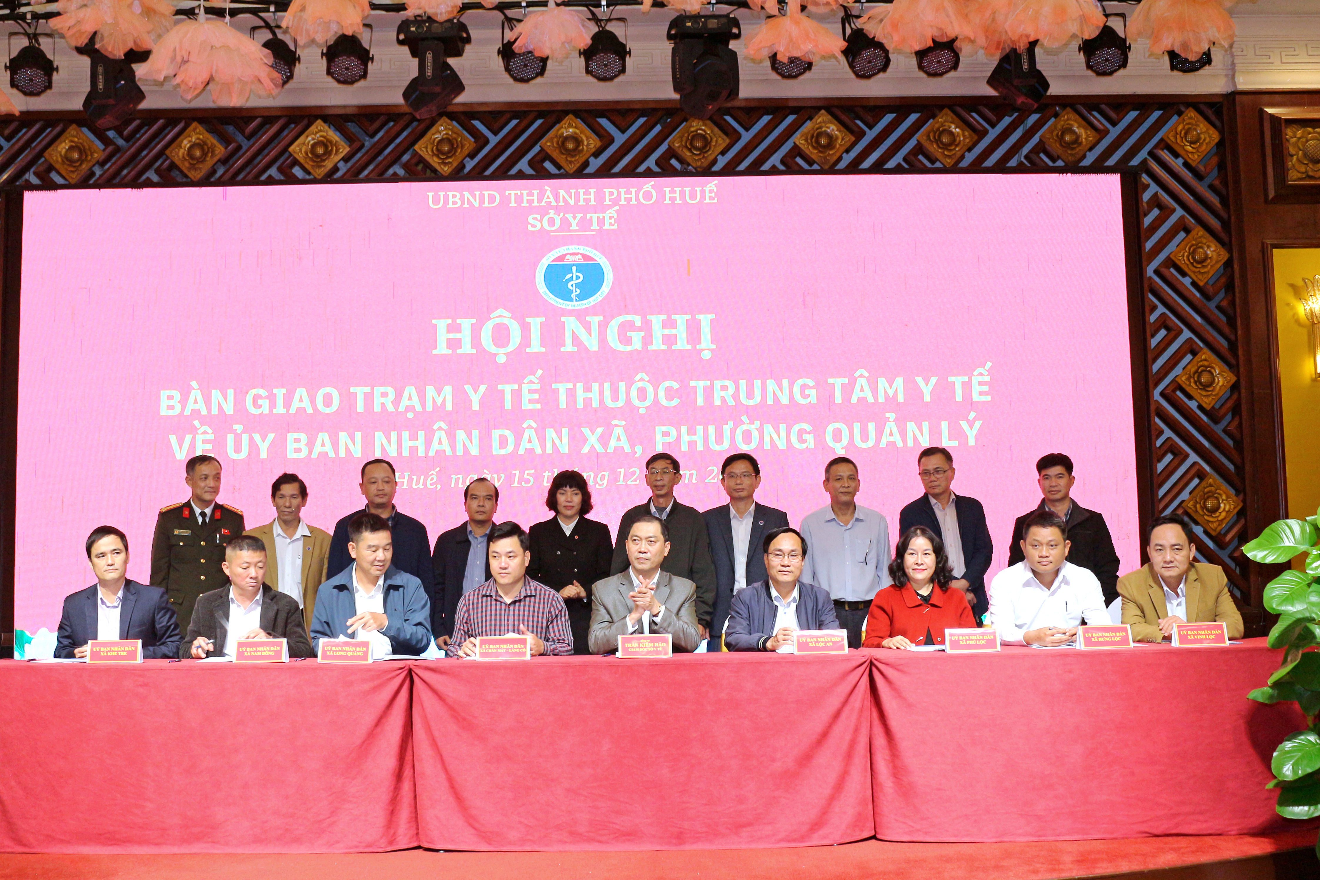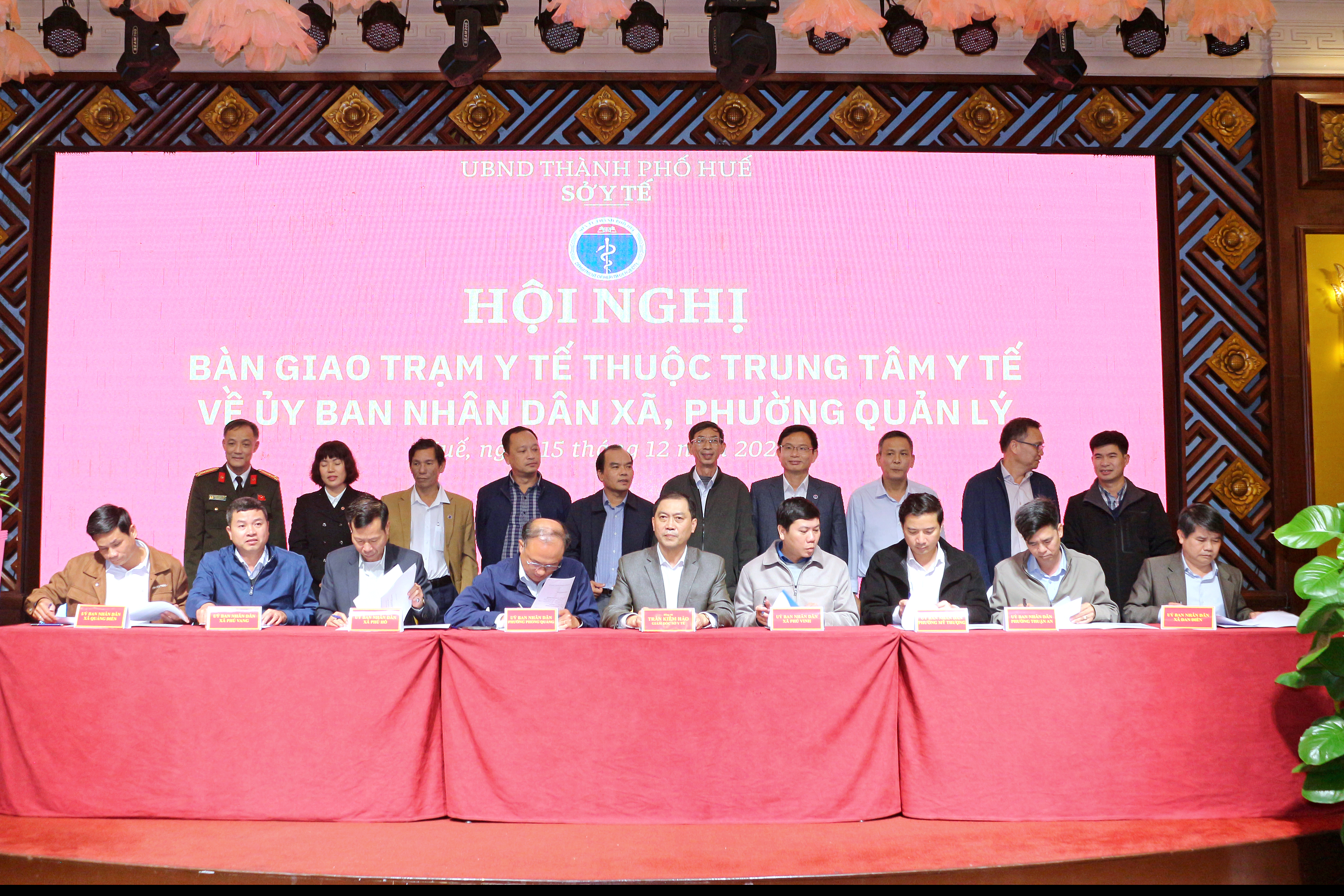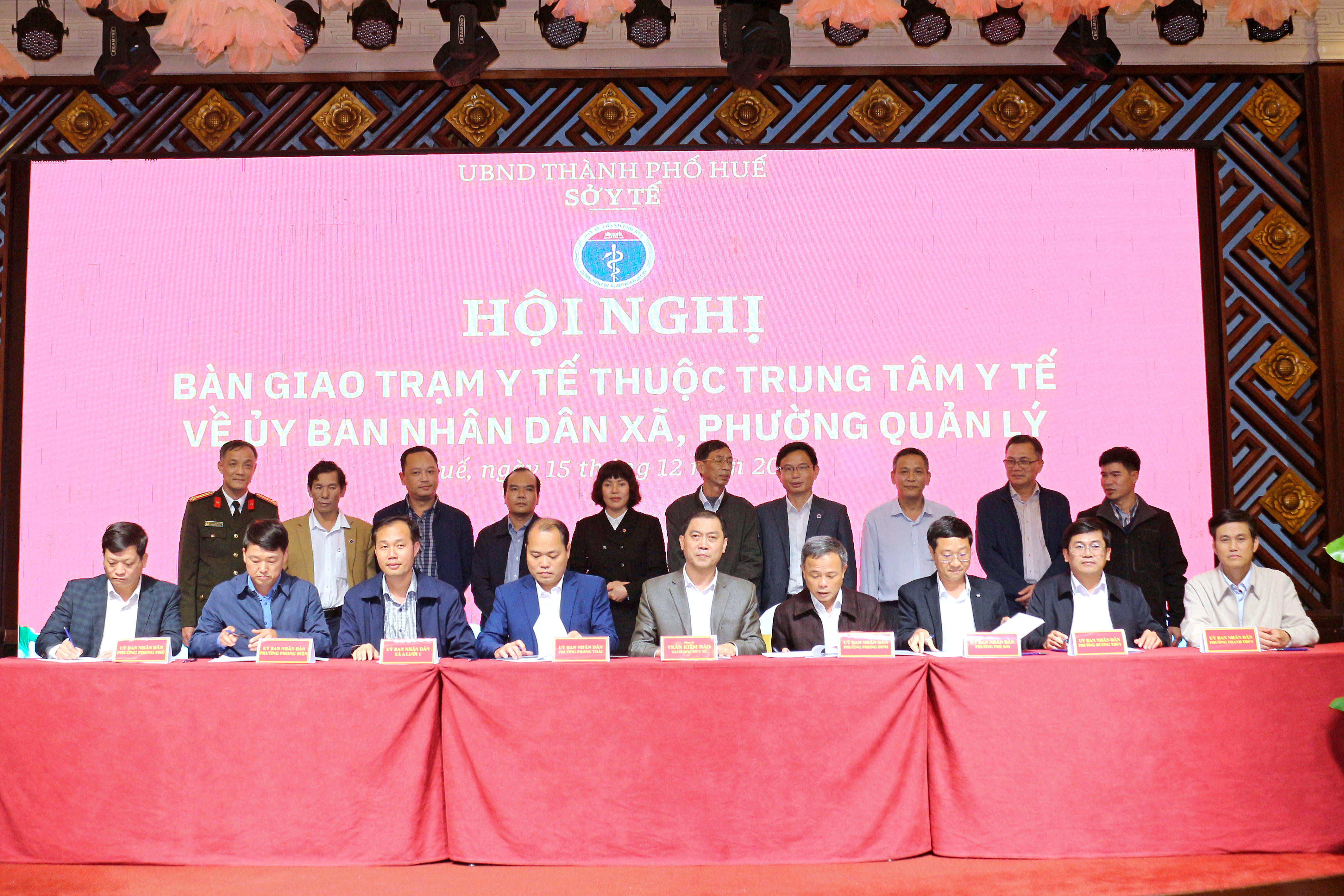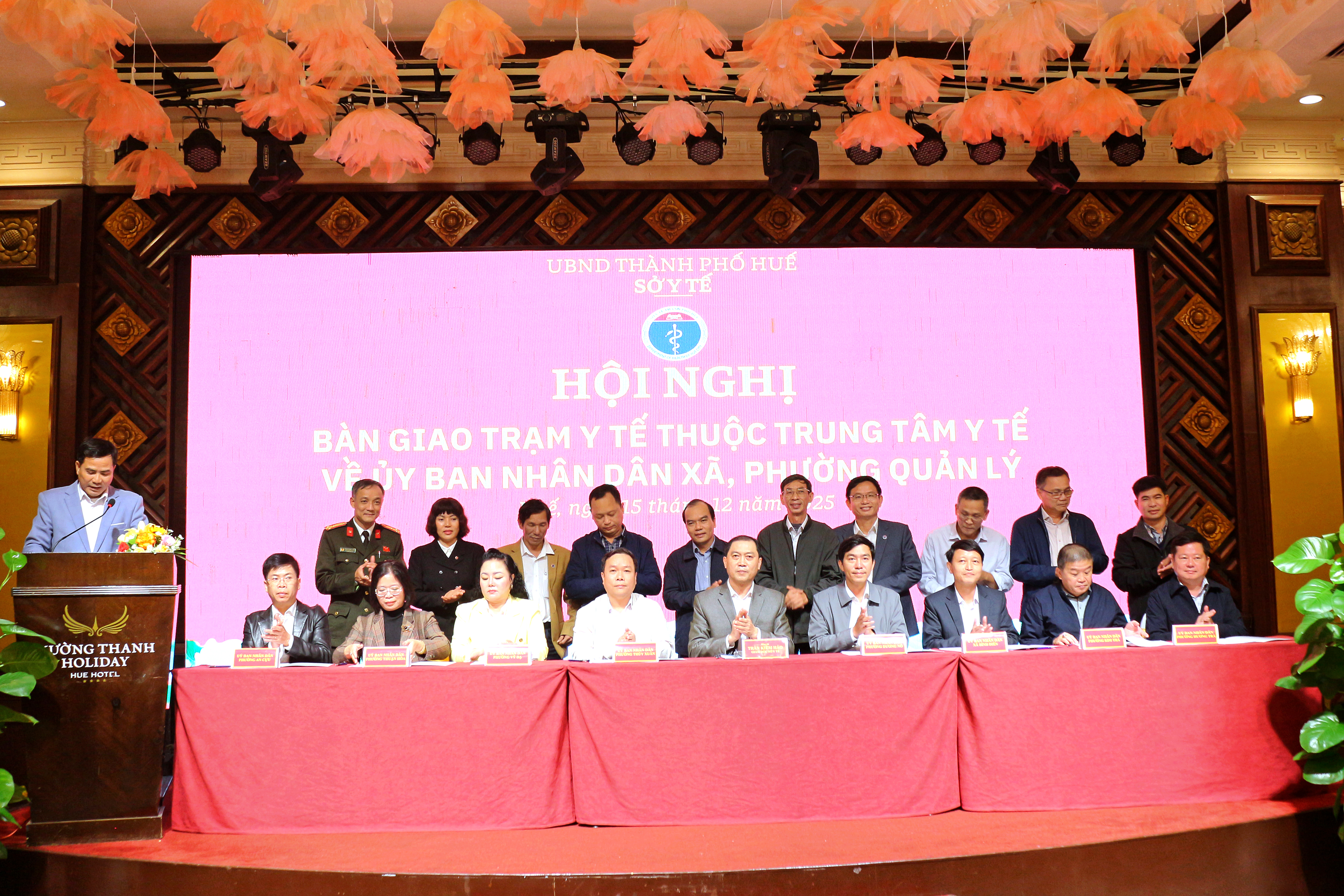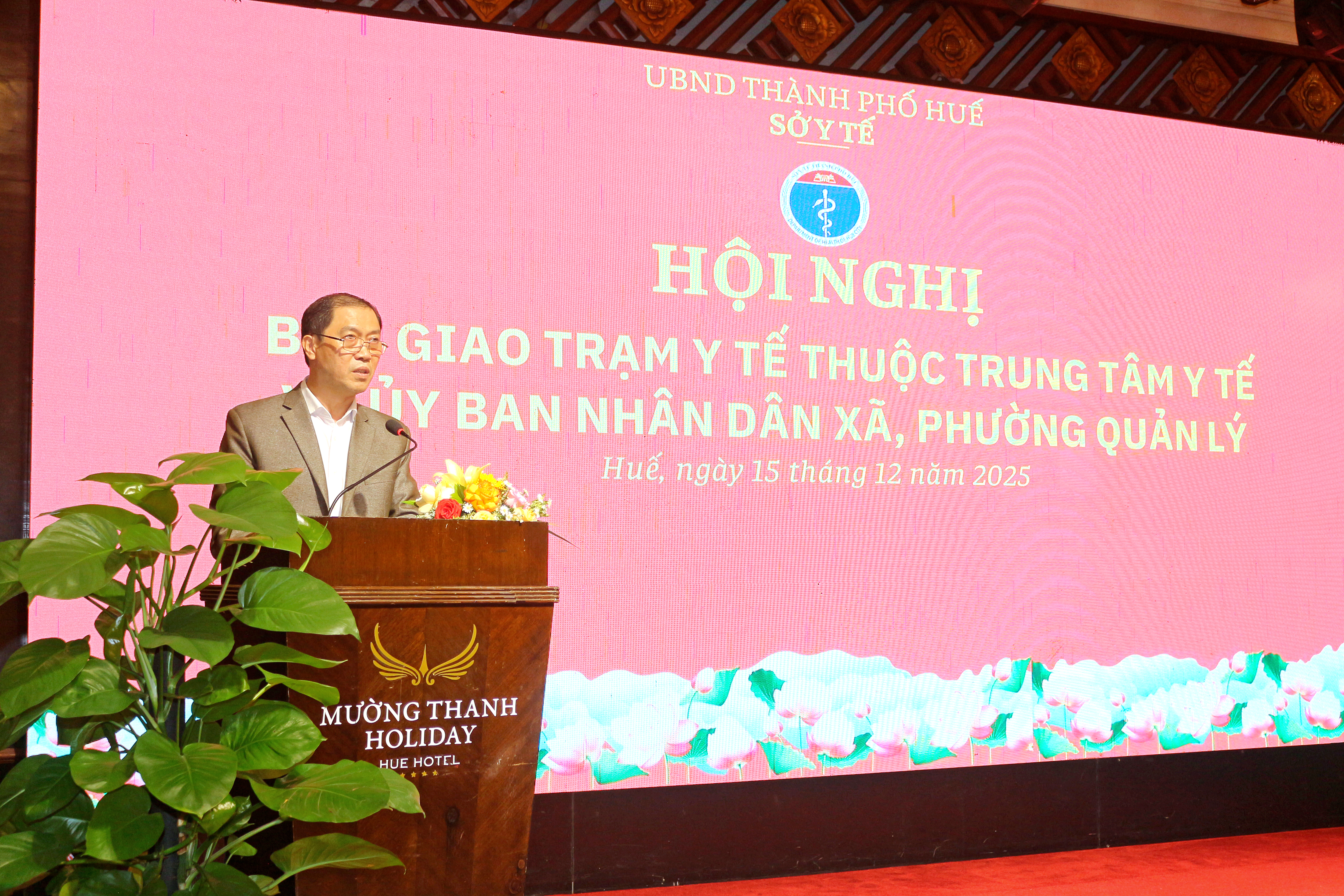 Ngày 15/12/2025, Sở Y tế thành phố Huế đã tổ chức Hội nghị bàn giao Trạm Y tế xã, phường trực thuộc Trung tâm Y tế về Ủy ban nhân dân xã, phường quản lý. Hội nghị nhằm triển khai thực hiện chủ trương sắp xếp, kiện toàn tổ chức bộ máy y tế cơ sở, góp phần nâng cao hiệu lực, hiệu quả quản lý nhà nước và chất lượng chăm sóc sức khỏe ban đầu cho Nhân dân.