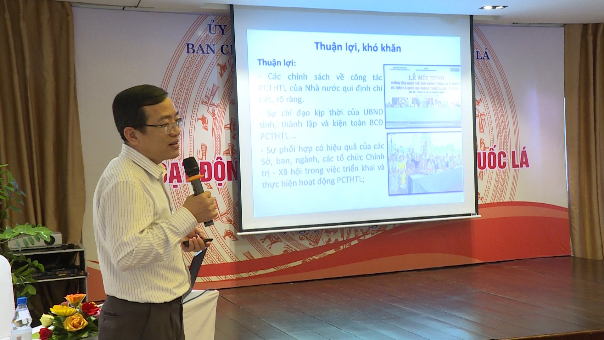 Cũng tại hội nghị các thành viên tham dự được nghe phần trình bày tham luận của UBND thị xã Hương Thuỷ và TTYT huyện Phong Điền về công tác PCTHTL và những kinh nghiệm xây dựng bênh viện không khói thuốc.