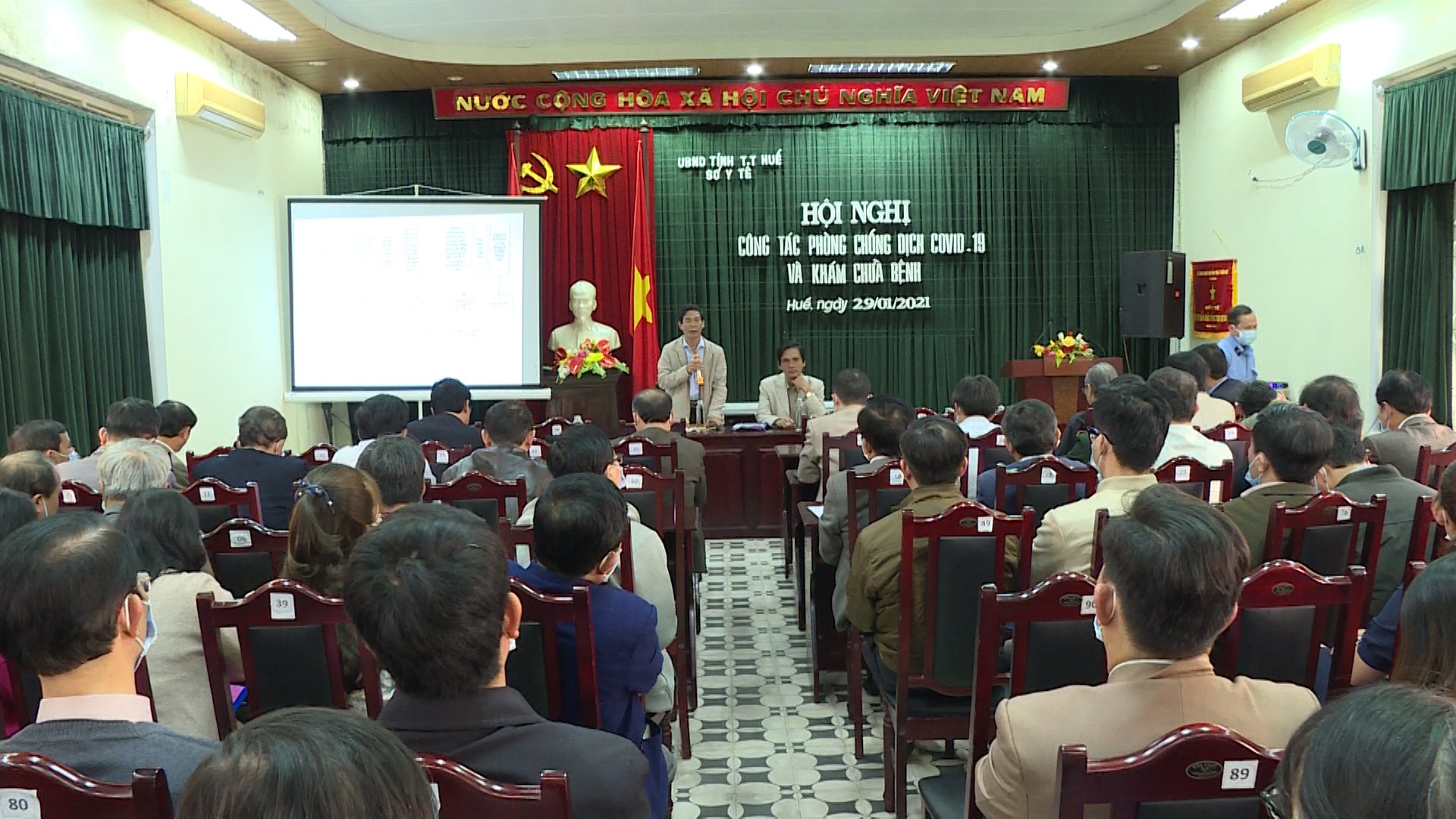 Chiều ngày 29 - 01 - 2021, Sở Y tế tỉnh Thừa Thiên Huế tổ chức Hội nghị công tác Phòng chống dịch Covid-19 và khám chữa bệnh. Tham dự và chỉ đạo Hội nghị có Ds Lê Viết Bắc- Phó Giám đốc phụ trách Sở Y tế , Trưởng ban chỉ đạo phòng chống dịch Covid-19 Sở Y tế; Ths.Bs Hoàng Hữu Nam - Phó Giám đốc Sở Y tế, Phó ban chỉ đạo phòng chống dịch Covid-19 Sở Y tế; Đại diện lãnh đạo bệnh viện Trung ương Huế; các Bệnh viện đa khoa, chuyên khoa, phòng khám trên địa bàn ; các đơn vị trực thuộc Sở Y tế liên quan và 9 TTYT huyện, thị, thành phố.