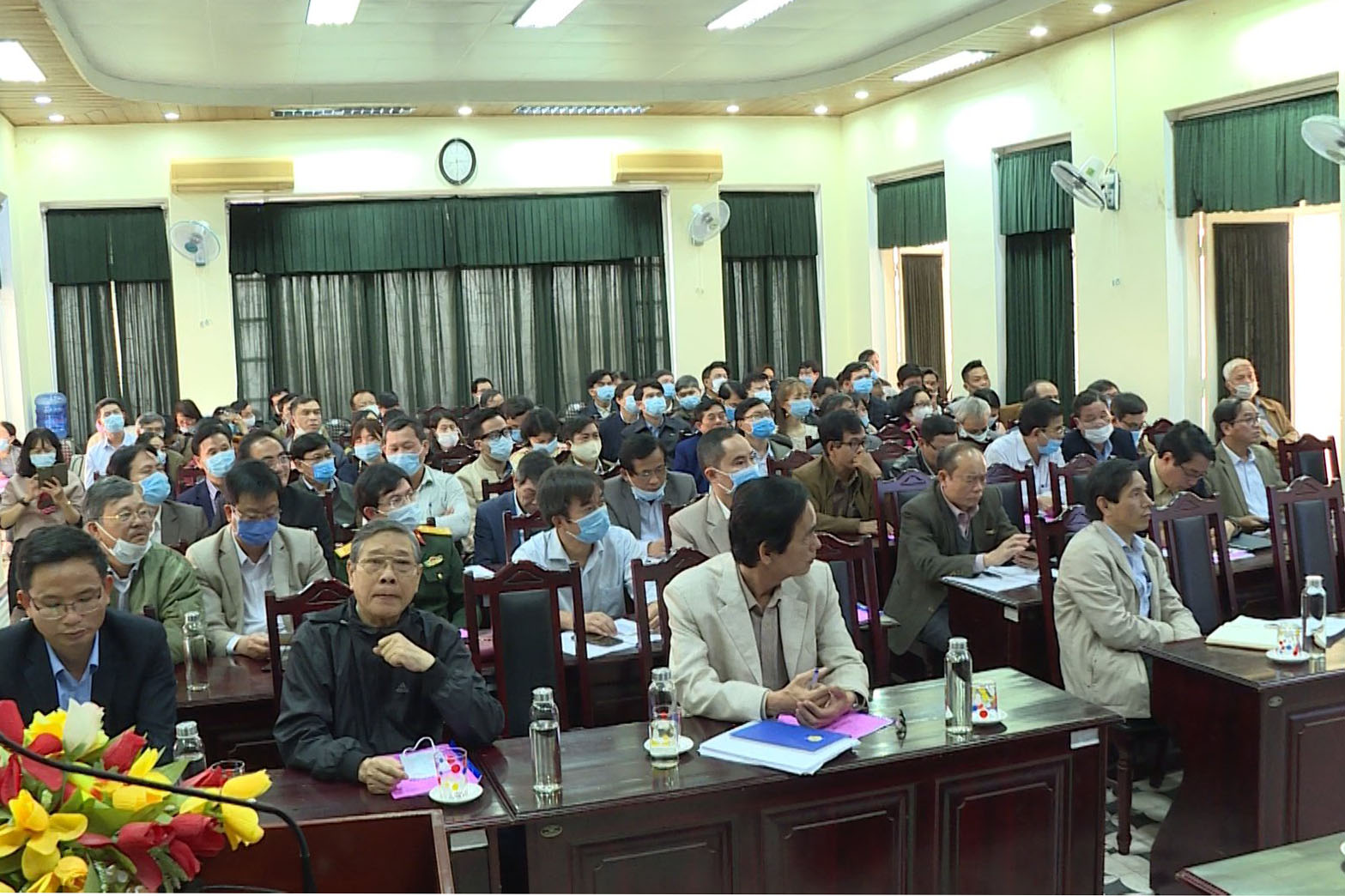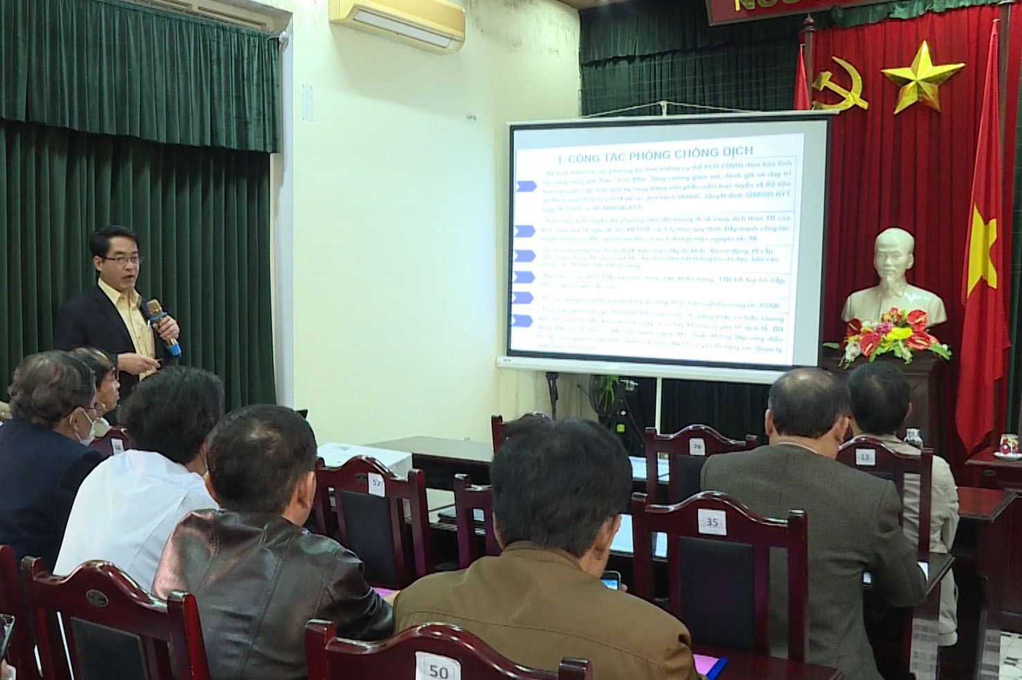 Cũng tại hội nghị Ths.Bs Nguyễn Mậu Duyên, Trưởng phòngNghiệp vụ Y trình bày chi tiết nội dung liên quan về phòng chống dịch bệnh Covid-19 và nghe tham luận của Trung tâm Kiểm soát bệnh tật những giải pháp phòng chống Covid-19 thời gian tới.
