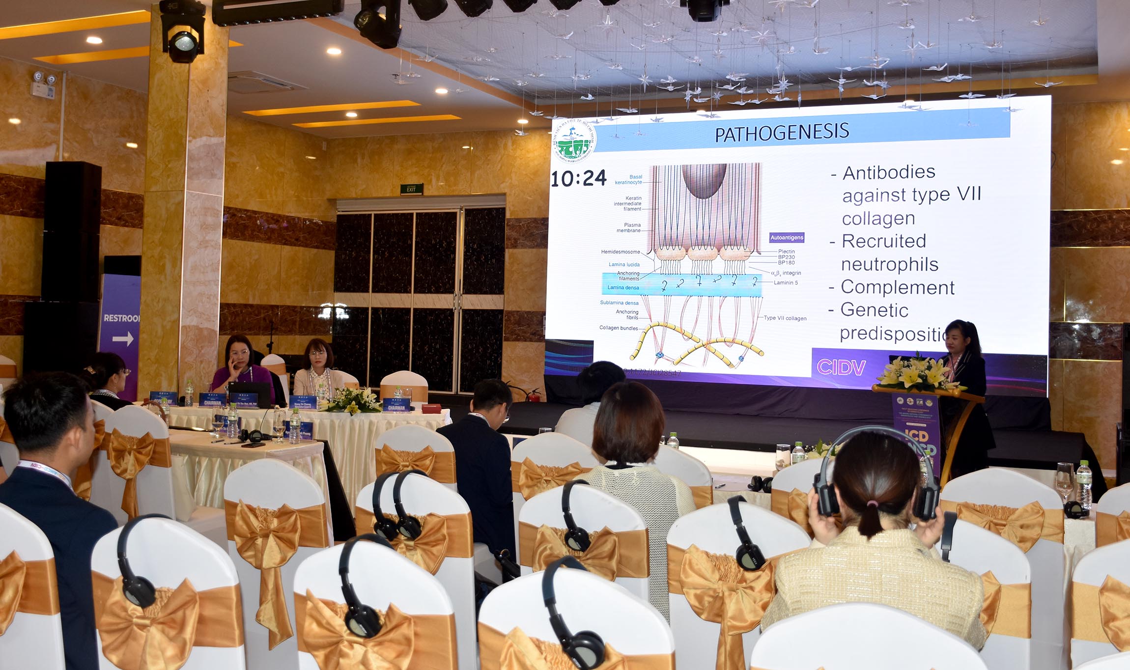 Chủ tọa điều hành tại các phiên báo cáo khoa học, hội nghị có hơn 100 báo cáo các chuyên đề được trình bày bằng tiếng Anh.