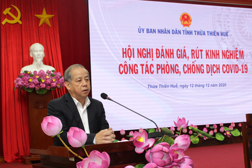 Ngày 12-12-2020, Ủy ban nhân dân tỉnh Thừa Thiên Huế tổ chức Hội nghị đánh giá, rút kinh nghiệm công tác, phòng, chống dịch COVID-19 trên địa bàn tỉnh, Hội nghị do Chủ tịch UBND tỉnh Phan Ngọc Thọ, Trưởng Ban chỉ đạo phòng, chống dịch COVID-19 tỉnh chủ trì. Dự Hội nghị còn có đồng chí Nguyễn Thanh Bình – Ủy viên Ban Thường vụ Tỉnh ủy, Phó Chủ tịch UBND tỉnh, Phó Trưởng Ban Thường trực Ban Chỉ đạo tỉnh; cùng các thành viên Ban Chỉ đạo phòng, chống dịch COVID-19 của tỉnh.