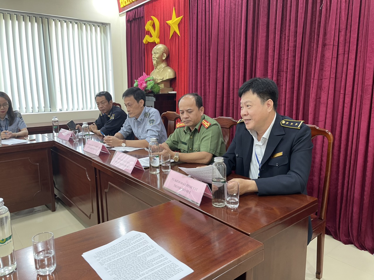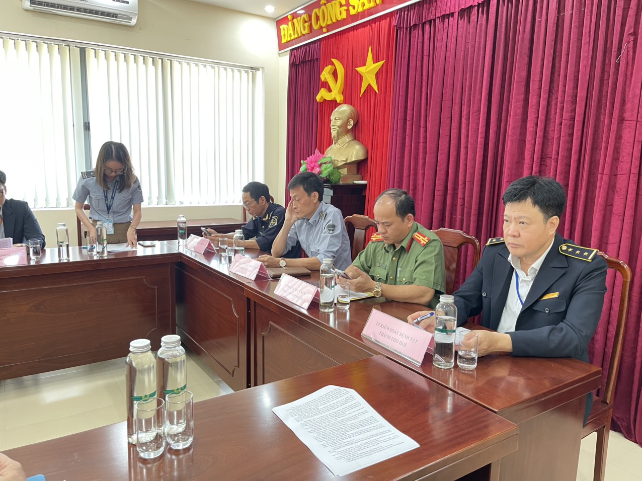 Phát biểu tham gia ý kiến tại Hội nghị, Ths.Bs. Hồ Xuân Vũ-Phó Giám đốc Trung tâm Kiểm soát bệnh tât thành phố Huế đã cám ơn các đơn vị hữu quan tại sân bay Phú Bài đã tạo điều kiện cũng như phối hợp với khoa Kiểm dịch Y tế quốc tế - Trung tâm KSBT triển khai các hoạt động giám sát các bệnh truyền nhiễm nhóm A và các bệnh truyền nhiễm nguy hiểm mới nổi, tái nổi.
