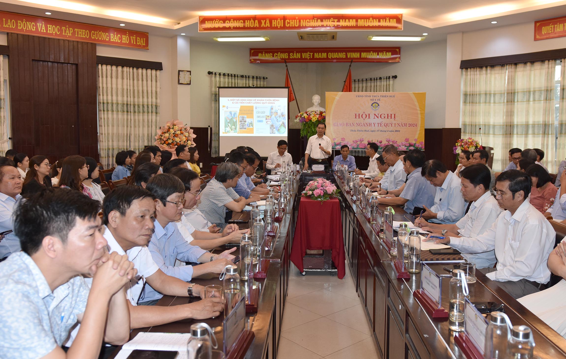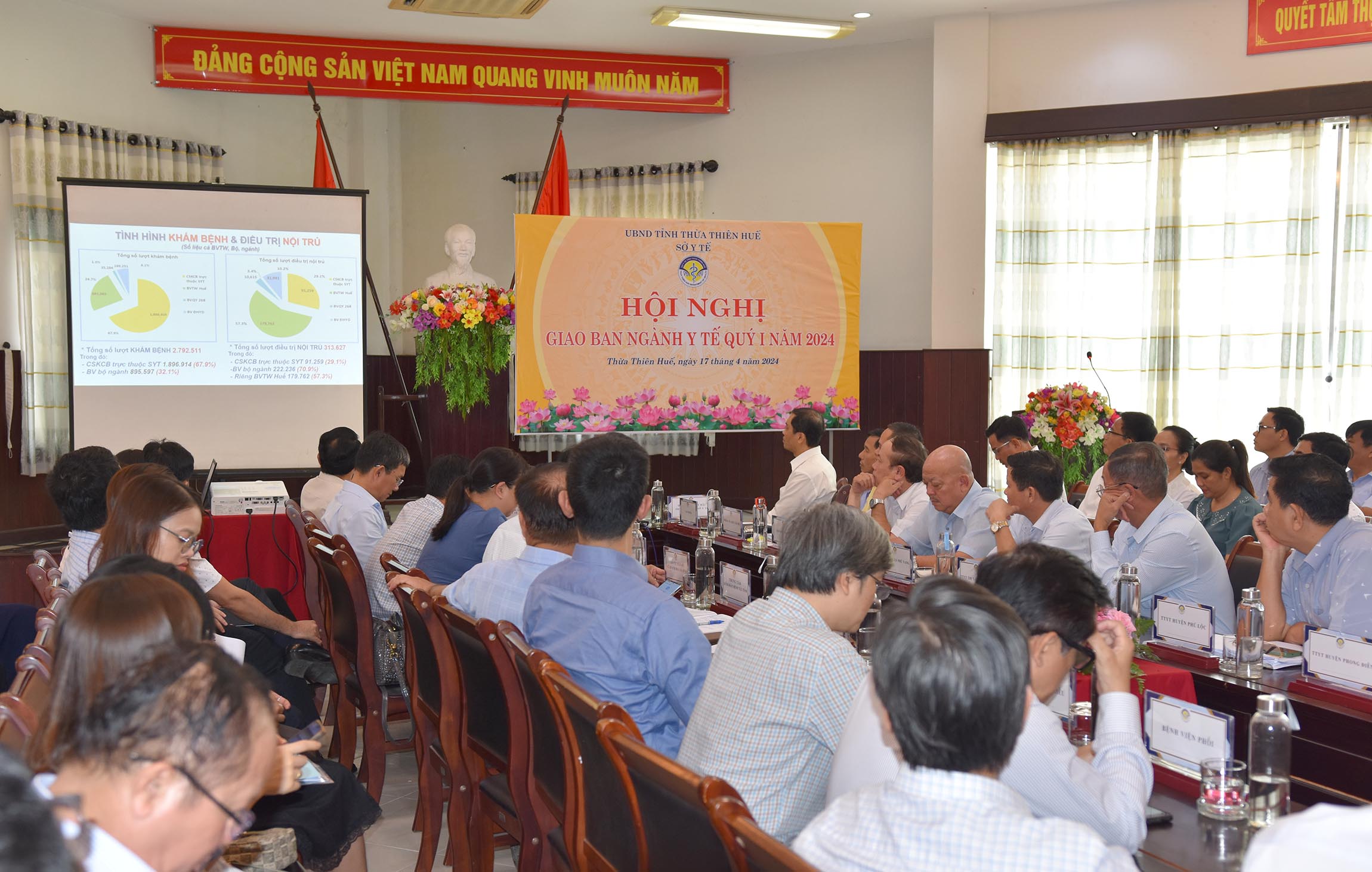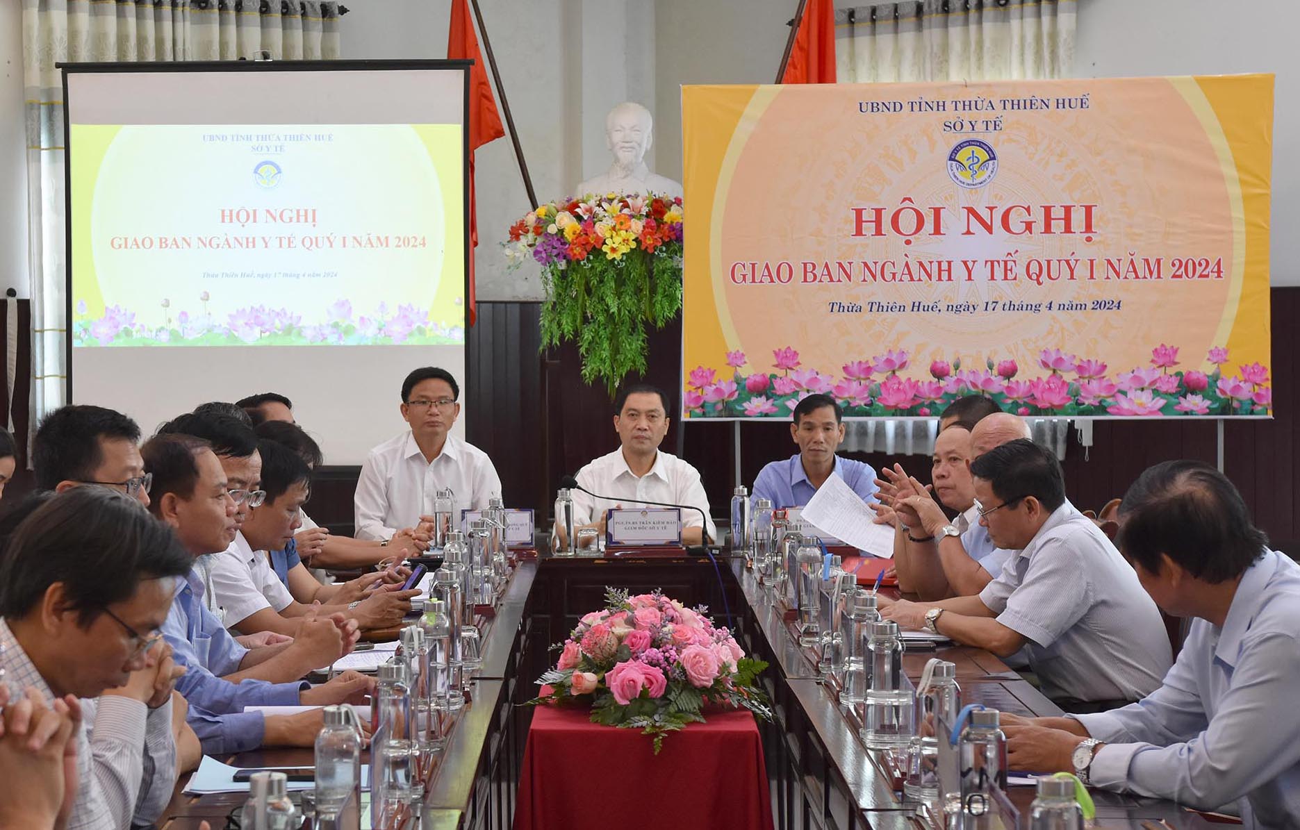 Ngày 17/4/2024, tại Bệnh viện Mắt Huế, Sở Y tế tỉnh Thừa Thiên Huế tổ chức Hội nghị giao ban Ngành Y tế quý I/2024, PGS.TS.BS Trần Kiêm Hảo - Giám đốc Sở Y tế chủ trì hội nghị. Tham dự hội nghị có Ban Giám đốc, lãnh đạo/chuyên viên các Phòng của Sở Y tế; Lãnh đạo và phụ trách các bộ phận Nghiệp vụ, Kế hoạch, Tài chính, Dược, Vật tư y tế của 9 BV đa khoa/chuyên khoa tuyến tỉnh , 9 TTYT huyện/thị xã/thành phố và 7 đơn vị trực thuộc sở.