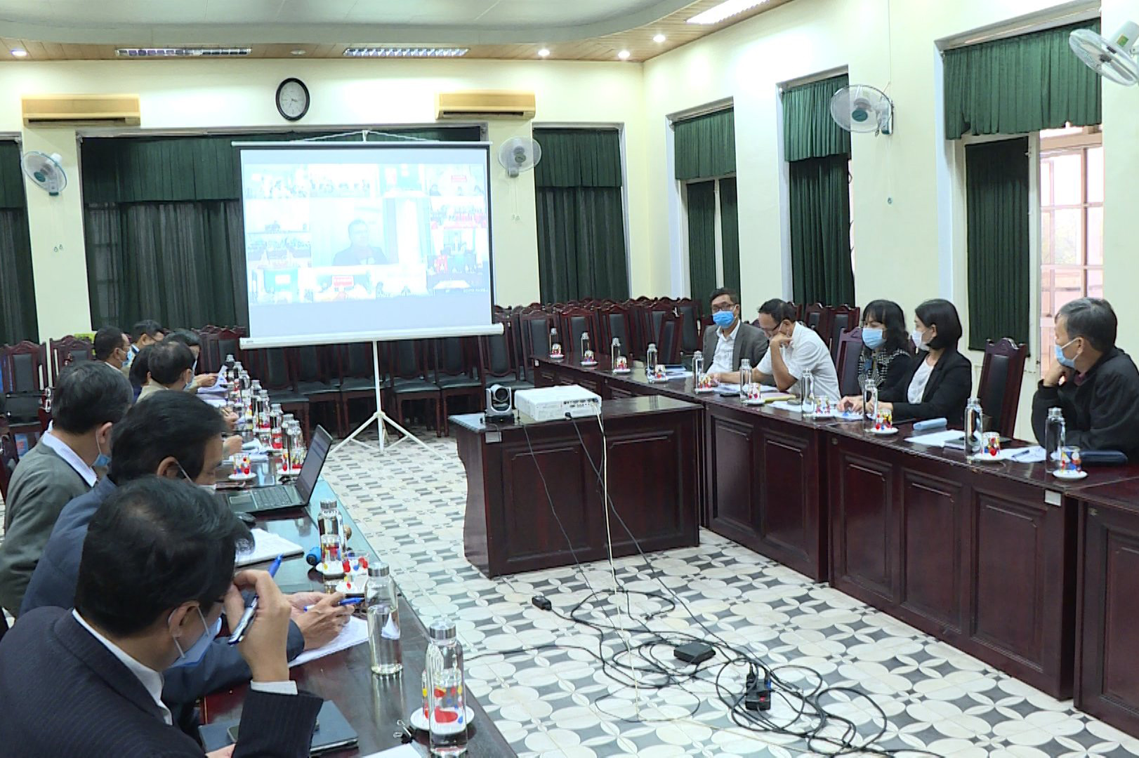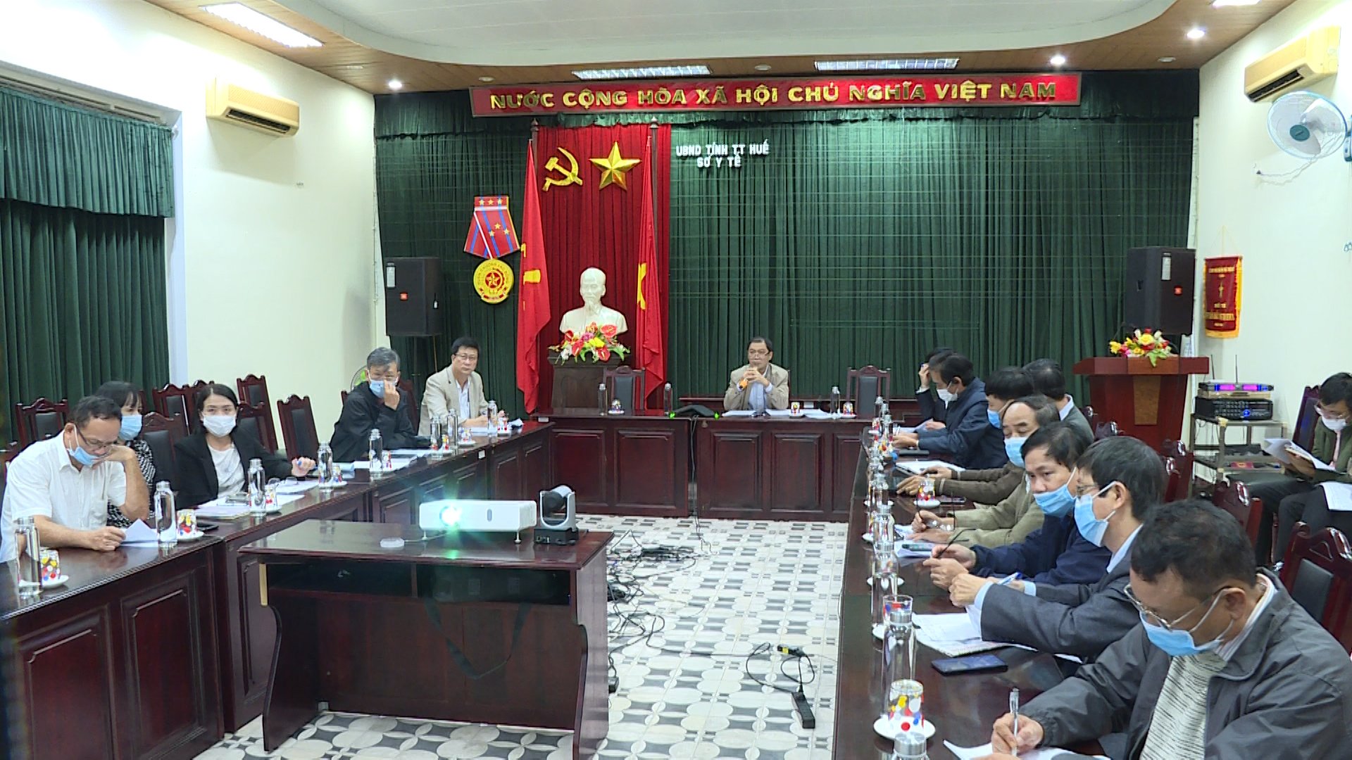 Trước diễn biến phức tạp của tình hình dịch bệnh Covid-19 và để đẩy nhanh tiến độ triển khai Chiến dịch tiêm chủng các loại vắc xin phòng Covid-19, chiều ngày 25-10-2021, Sở Y tế tổ chức Hội nghị giao ban trực tuyến về công tác phòng chống dịch và công tác tiêm chủng vắc xin phòng Covid- 19, PGS.TS.BS Trần Kiêm Hảo - Giám đốc Sở Y tế chủ trì hội nghị. Cùng tham dự tại điểm cầu Sở Y tế có Ban Giám đốc và các phòng chức năng Sở Y tế; lãnh đạo, khoa phòng liên quan Trung Tâm Kiểm soát bệnh tật tỉnh, đại diện lãnh đạo Bệnh viện đa khoa, chuyên khoa tuyến tỉnh và 9 điểm cầu Trung tâm Y tế huyện /thị xã/ thành phố đại diện lãnh đạo và các khoa, phòng liên quan.