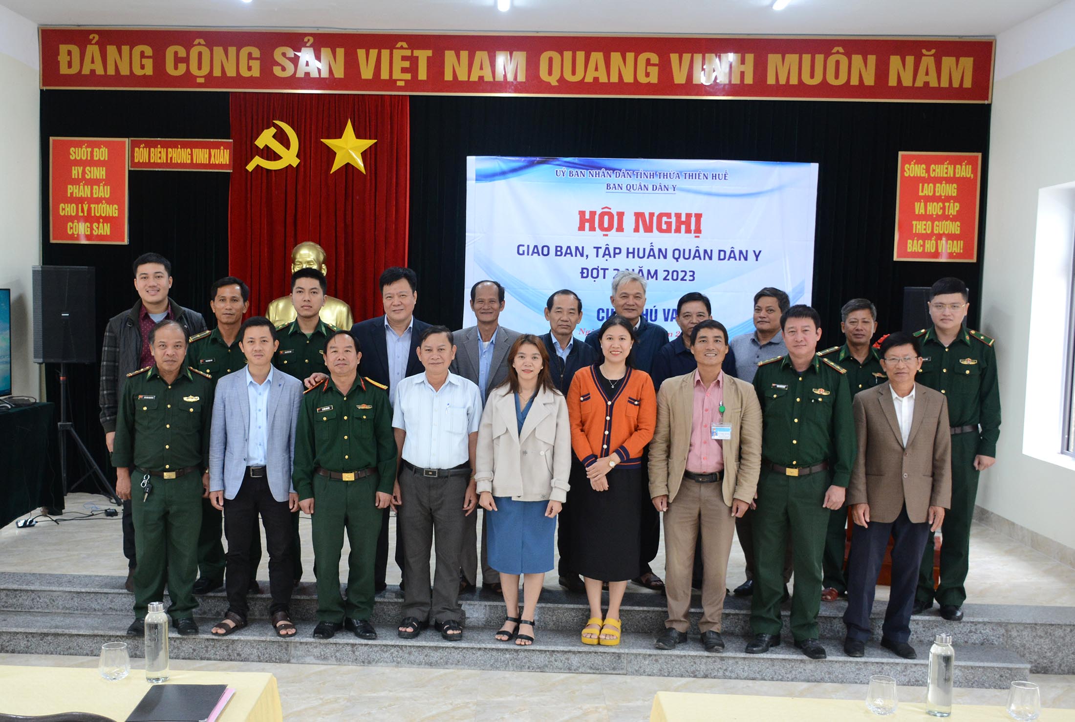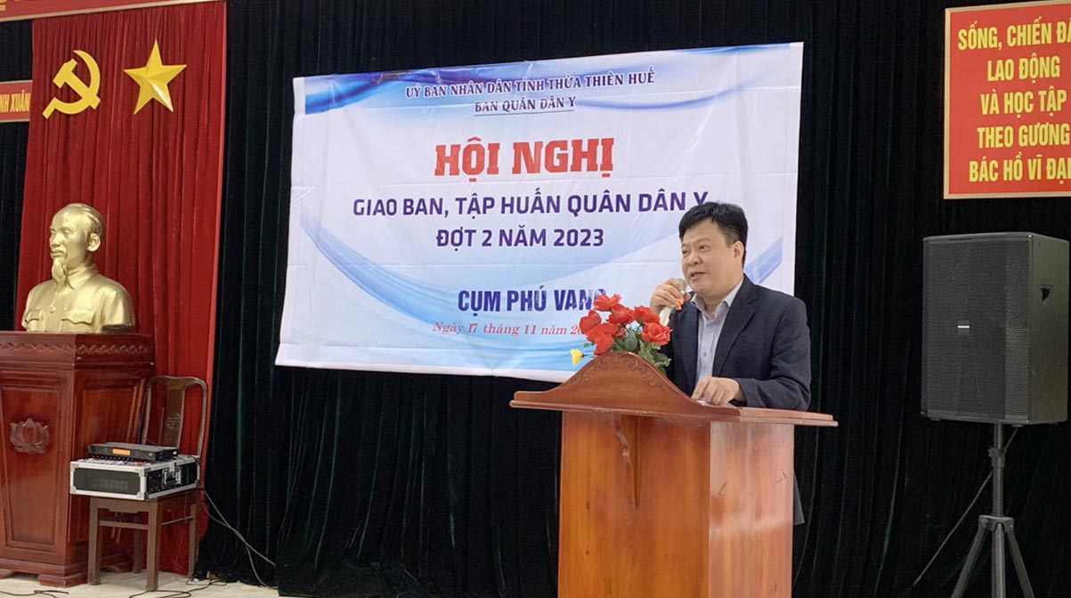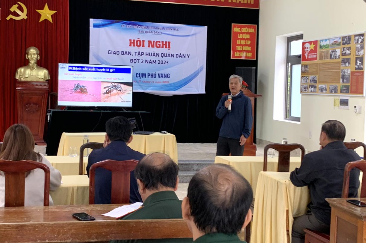 Thực hiện Kế hoạch của Ban Quân dân y (QDY) tỉnh Thừa Thiên Huế, trong ngày 17/11/2023, tại đồn Biên phòng Vinh Xuân, Chương trình QDY kết hợp tỉnh đã tổ chức Hội nghị giao ban năm 2023 và tập huấn công tác Y tế dự phòng cho các Đồn Biên phòng và các Trạm Y tế thuộc cụm Phú Vang. Dự giao ban và tham gia tập huấn có Ban Quân y BCH Quân sự tỉnh, Ban Quân y BCH Biên phòng tỉnh, lãnh đạo và các khoa/phòng liên quan Trung tâm Kiểm soát bệnh tật (CDC), TTYT huyện Phú Vang, cán bộ phụ trách Quân y, cán bộ Vận động quần chúng các đồn Biên phòng, Trưởng Trạm Y tế các địa phương vùng ven biển huyện Phú Vang.