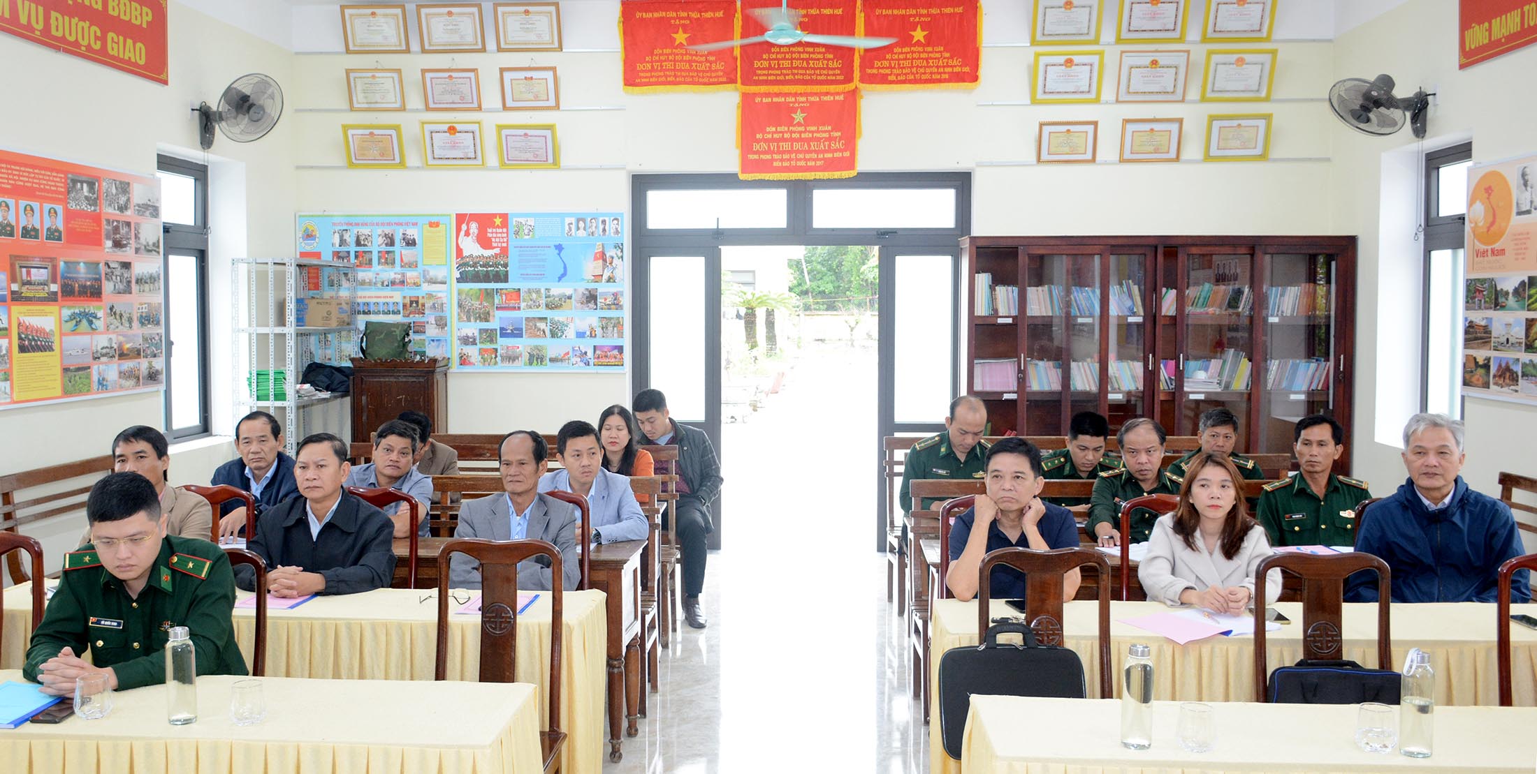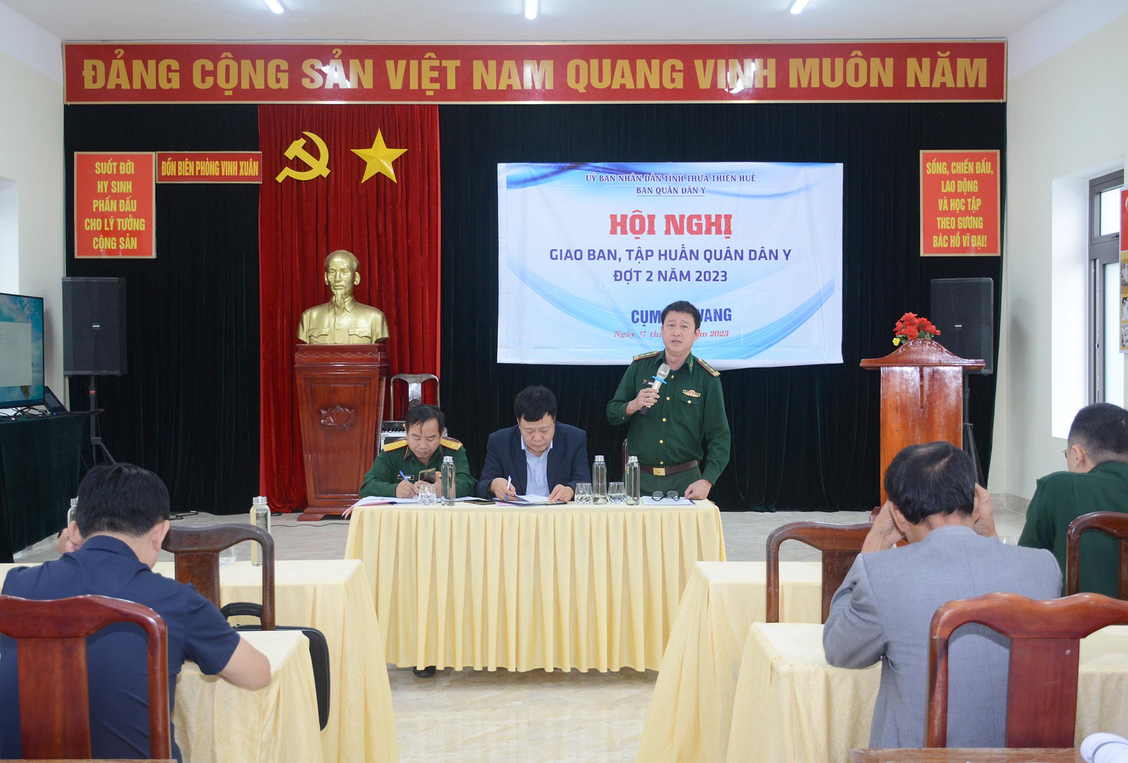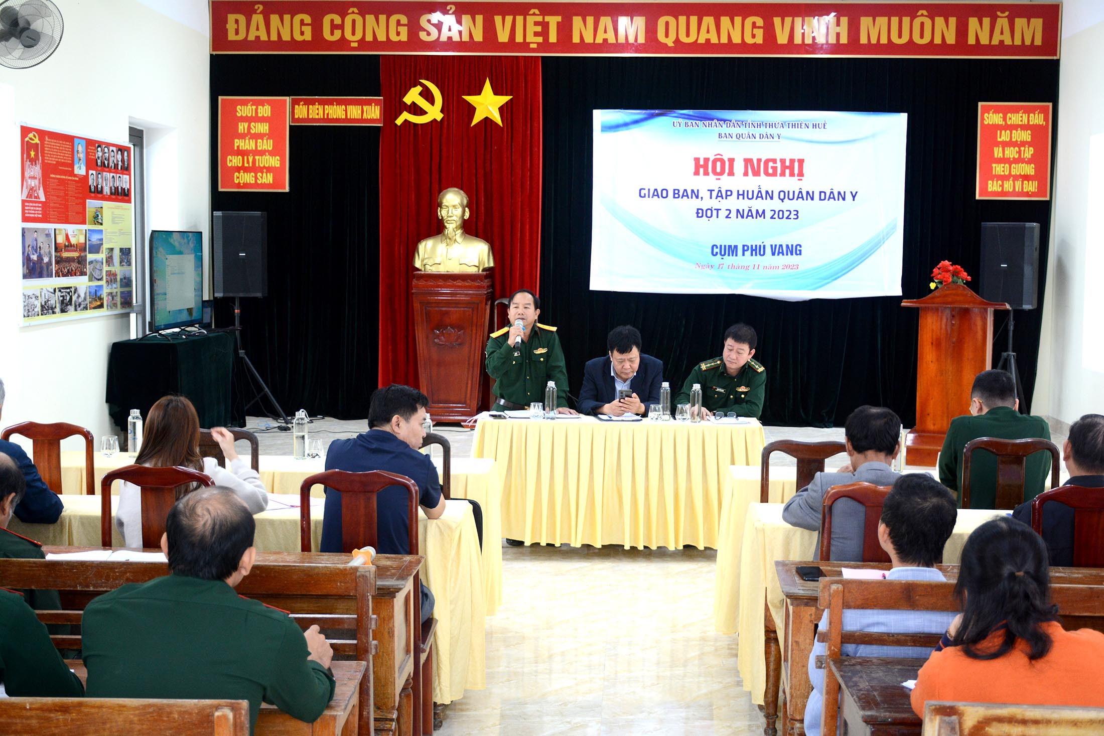 Thực hiện Kế hoạch của Ban Quân dân y (QDY) tỉnh Thừa Thiên Huế, trong ngày 17/11/2023, tại đồn Biên phòng Vinh Xuân, Chương trình QDY kết hợp tỉnh đã tổ chức Hội nghị giao ban năm 2023 và tập huấn công tác Y tế dự phòng cho các Đồn Biên phòng và các Trạm Y tế thuộc cụm Phú Vang. Dự giao ban và tham gia tập huấn có Ban Quân y BCH Quân sự tỉnh, Ban Quân y BCH Biên phòng tỉnh, lãnh đạo và các khoa/phòng liên quan Trung tâm Kiểm soát bệnh tật (CDC), TTYT huyện Phú Vang, cán bộ phụ trách Quân y, cán bộ Vận động quần chúng các đồn Biên phòng, Trưởng Trạm Y tế các địa phương vùng ven biển huyện Phú Vang.