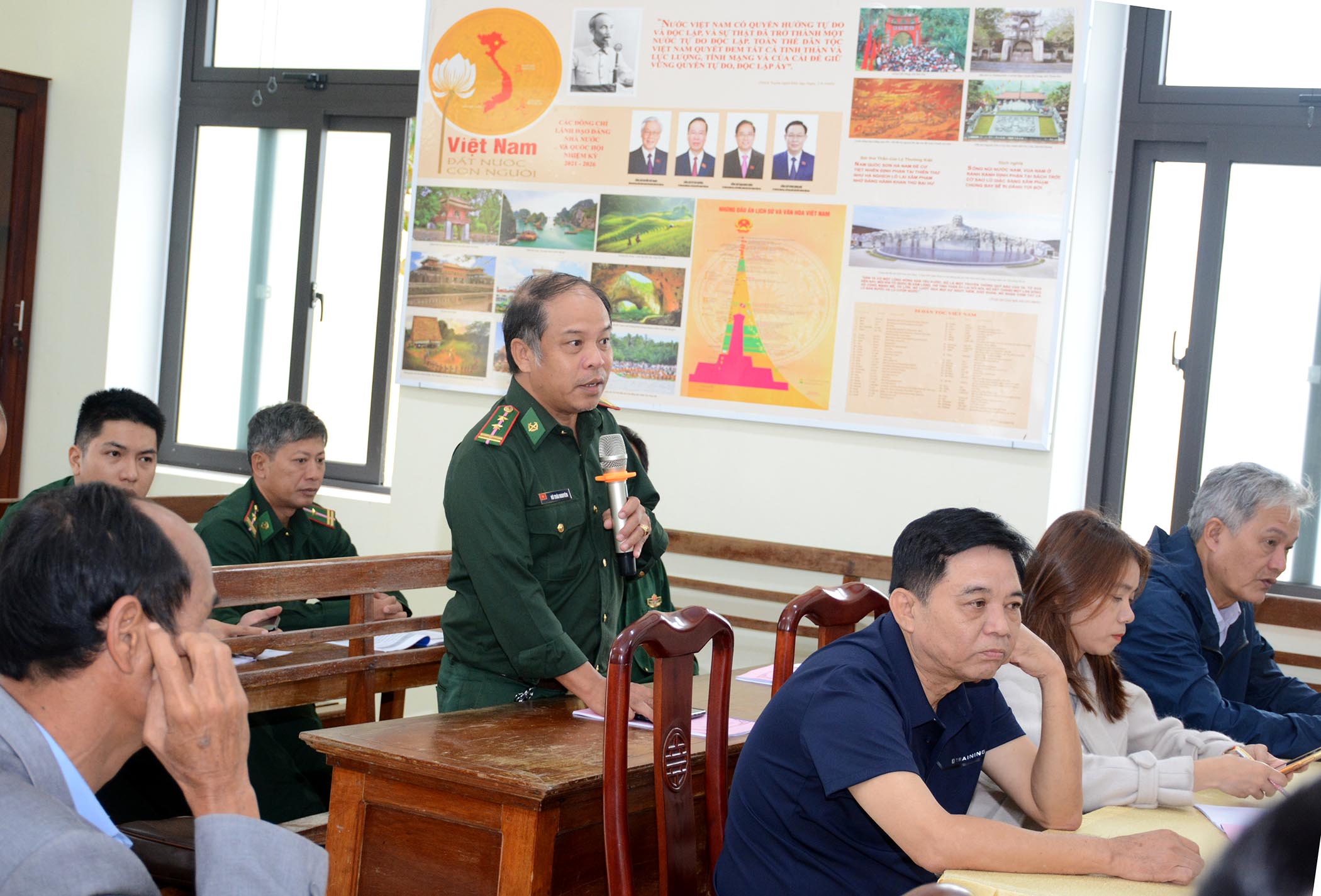 Cán bộ các đồn Biên phòng và trạm Y tế phát biểu tham luận những thuận lợi và khó khăn trong hoạt động QDY kết hợp trên địa bàn quản lý.