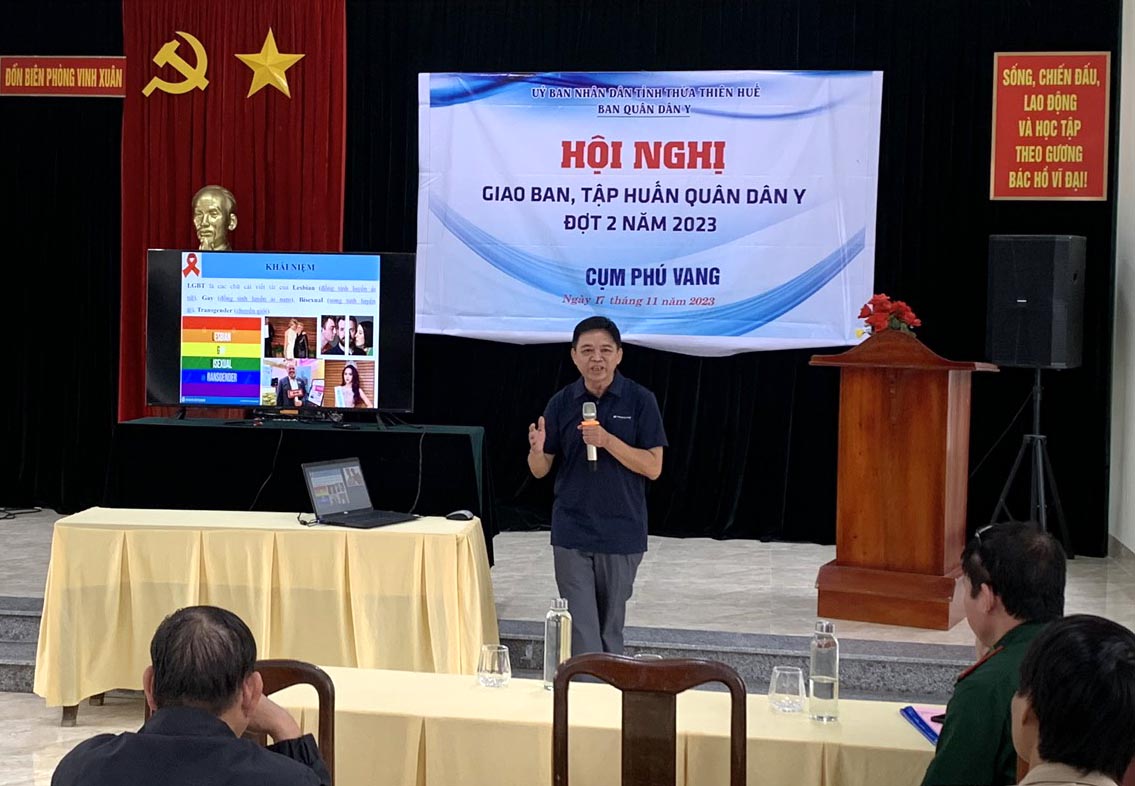 ThS. BS Lê Hữu Sơn - Khoa phòng chống HIV/AIDS báo cáo tình hình lây nhiễm, yếu tố dịch tễ HIV tại Thừa Thiên Huế, các khái niệm mới về MSM, LGBT, điều trị dự phòng trước phơi nhiễm HIV (PrEP), giới thiệu trang WEBSITE.TUXETNGHIEM.VN