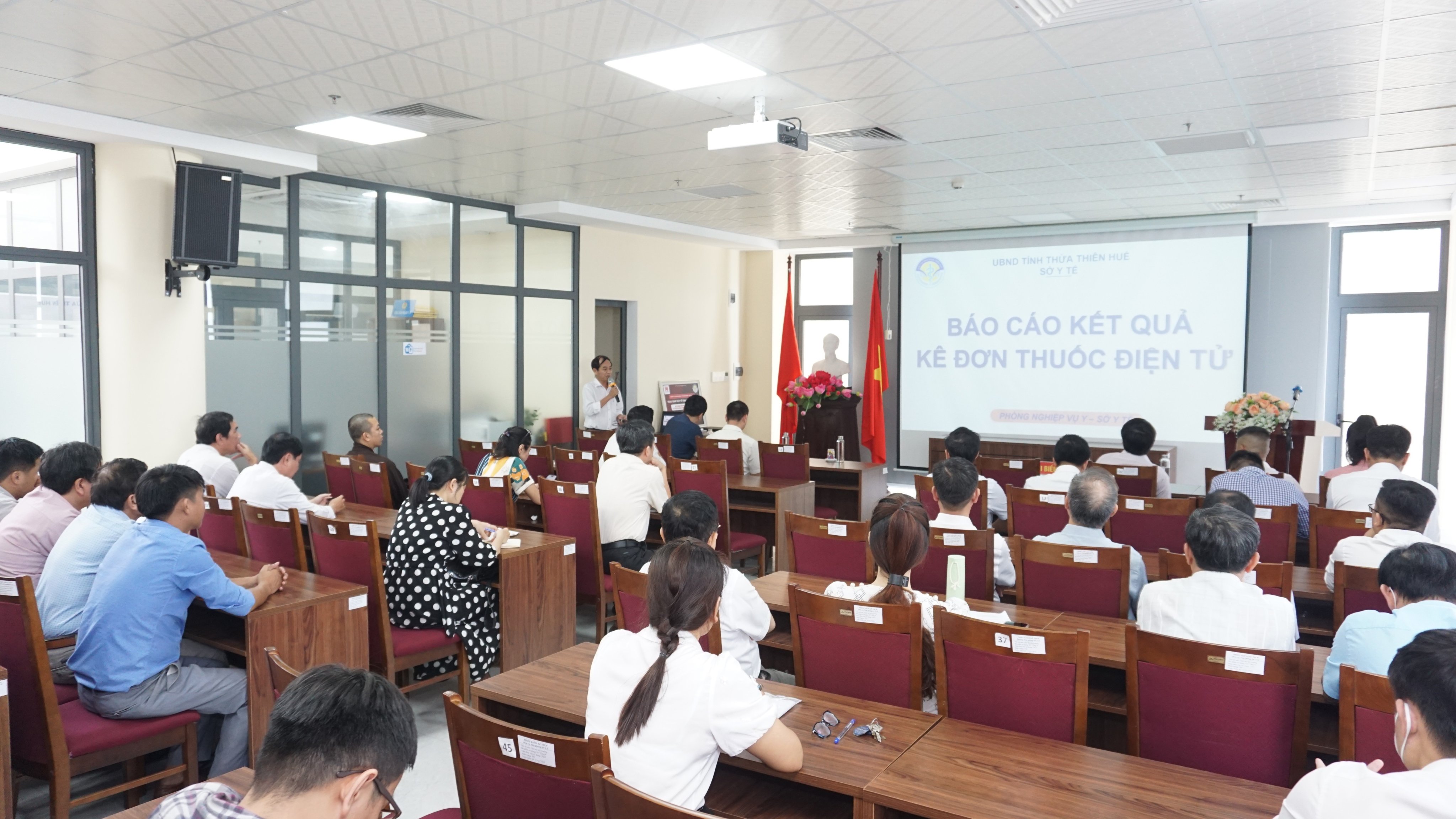 Chiều ngày 12/5/2023, Sở Y tế tổ chức Hội nghị giới thiệu giải pháp gửi đơn thuốc bằng hình thức điện tử tới người bệnh và giải pháp phần mềm HIS mã nguồn mở. Về tham dự Hội nghị có Ông Bùi Hoàng Minh – Giám đốc Trung tâm Giám sát Điều hành đô thị thông minh tỉnh. Đại diện Sở Y tế có Ông Thái Văn Tuấn – Chánh văn phòng Sở Y tế cùng lãnh đạo các phòng và các thành phần liên quan Sở Y tế, Ông Nguyễn Hữu Trọng – Tổng thư ký Hội Tin học Y tế Việt Nam, Bà Nguyễn Thiên Hương - Phó tổng giám đốc công ty cổ phần mạng y tế cộng đồng cùng Đại diện Lãnh đạo và cán bộ phụ trách các đơn vị KCB công lập và tư nhân trên địa bàn...
