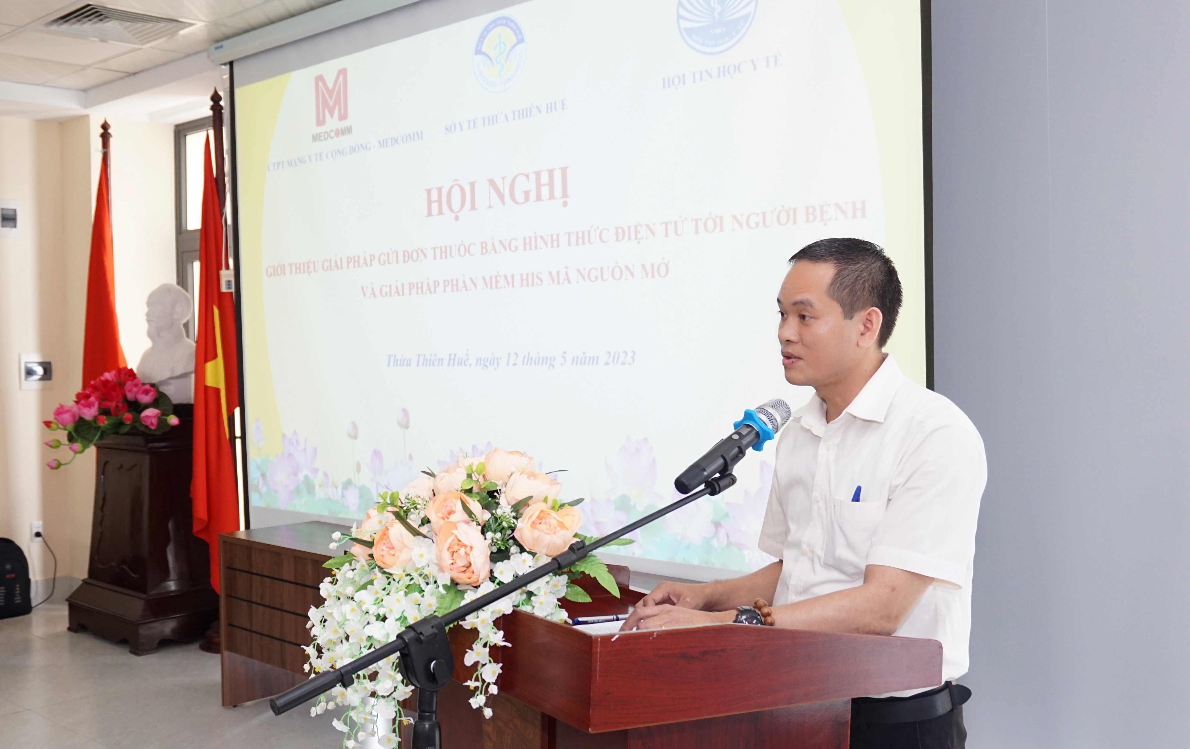 Tại Hội nghị, ông Lê Đình Nhân - Phó Trưởng phòng Nghiệp vụ Y trình bày Đánh giá bước đầu về tình hình triển khai kê đơn thuốc điện tử tại các cơ sở khám chữa bệnh trên địa bàn tỉnh Thừa Thiên Huế. Hội nghị được nghe Công ty Cổ phần mạng y tế cộng đồng MedComm cũng Giới thiệu giải pháp gửi đơn thuốc bằng hình thức điện tử tới người bệnh và Trao tặng tượng trưng ứng dụng Y Tế Box (ứng dụng gửi đơn thuốc bằng hình thức điện tử tới người bệnh) cho Sở Y tế. Giới thiệu phần mềm HIS mã nguồn mở của Hội tin học Y tế Việt Nam. Theo đó, người dùng có quyền sửa đổi, cải tiến, phát triển, nâng cấp theo các nguyên tắc chung được quy định trong giấy phép phần mềm nguồn mở mà không cần phải xin phép nhà cung cấp. Phần mềm nguồn mở rất hữu ích và có nhiều lợi thế cho ngành y tế trong việc triển khai ứng dụng CNTT, thúc đẩy cộng đồng CNTT y tế phát triển, giúp các bệnh viện không mất chi phí thuê, mua phần mềm, góp phần đẩy nhanh chuyển đổi số y tế.