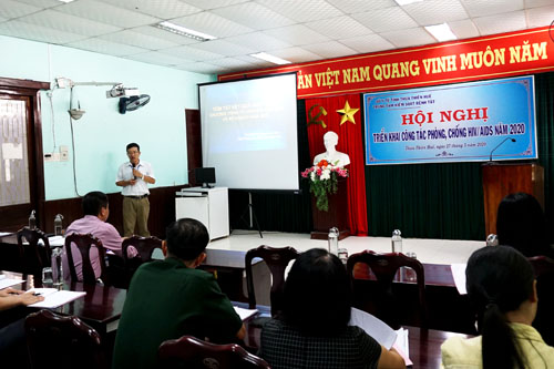 Sáng 27-05-2020, Trung tâm Kiểm soát bệnh tật tỉnh tổ chức "Hội nghị hướng dẫn triển khai Kế hoạch hoạt động phòng, chống HIV/AIDS năm 2020 ". Đến dự có Bs. Hoàng Văn Đức - Giám đốc Trung tâm Kiểm soát tỉnh; đại diện lãnh đạo và cán bộ chuyên trách công tác phòng chống HIV/AIDS của 9 Trung tâm Y tế huyện, thị, thành phố và cơ quan liên quan.
