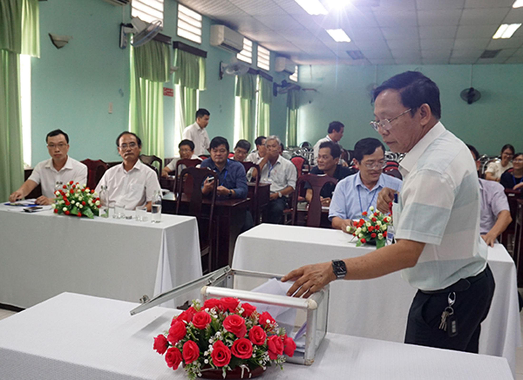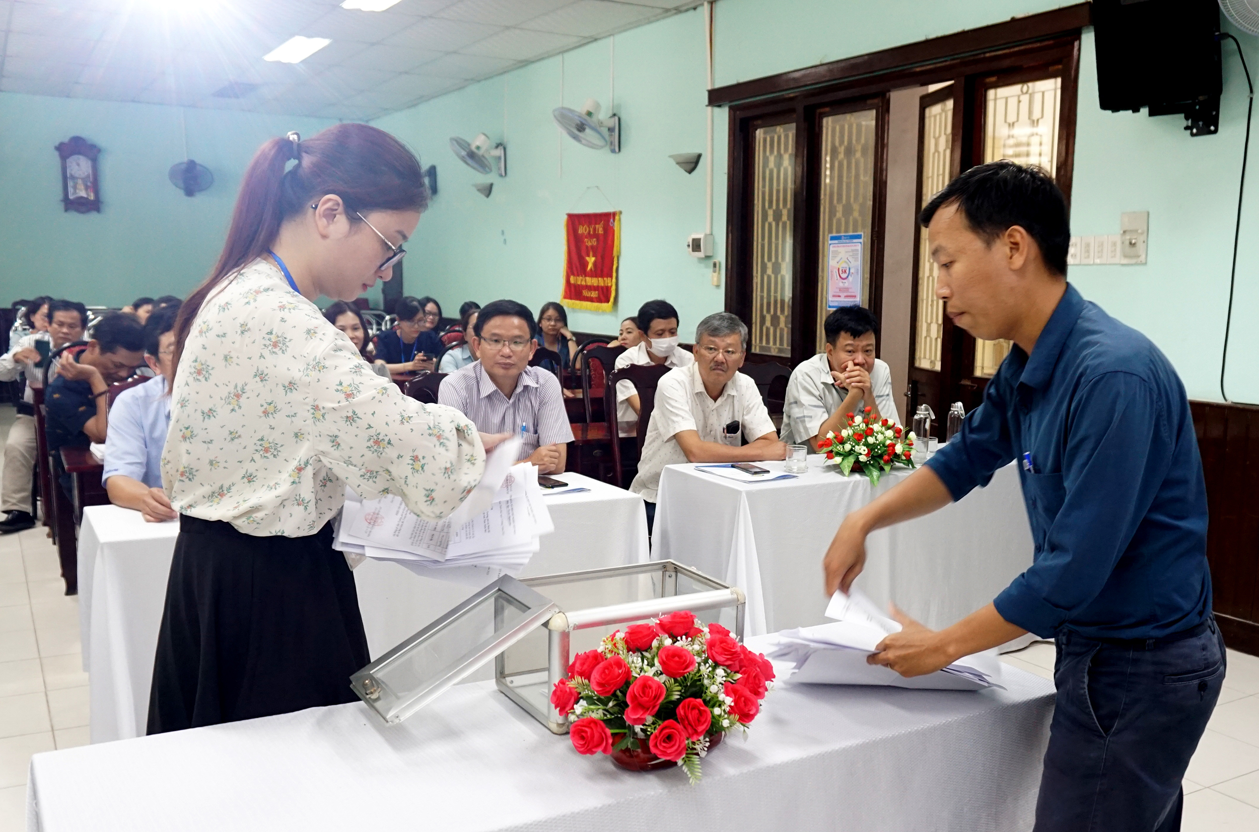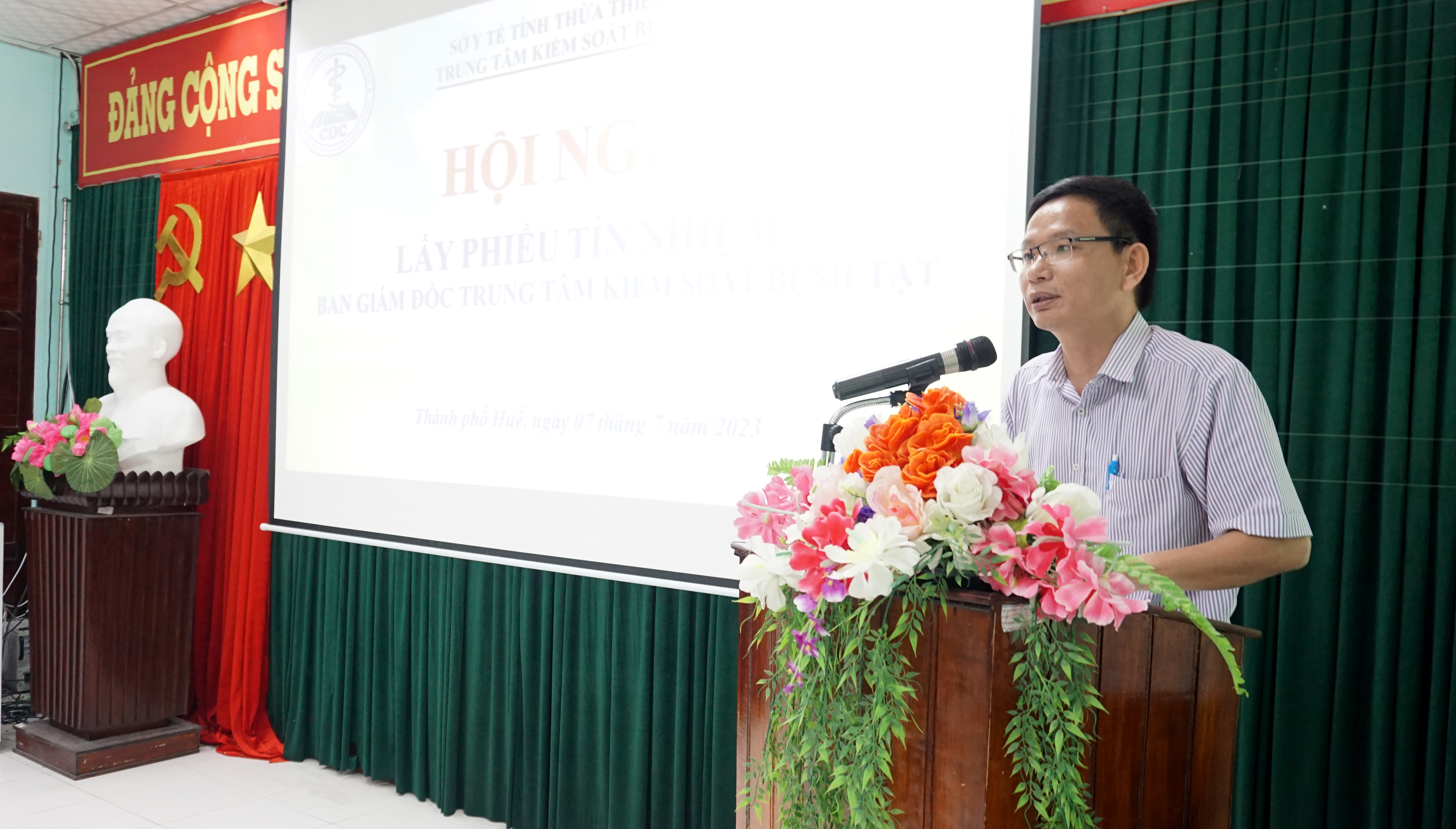 Sáng ngày 7/7/2023, tại hội trường Trung tâm Kiểm soát bệnh tật tỉnh (CDC), ThS.BSCKII Hoàng Trọng Quý - Phó Giám đốc sở, BSCKII Nguyễn Đắc Ngọc - Trưởng Phòng Tổ chức - Cán bộ Sở Y tế chủ trì hội nghị và giám sát lấy phiếu tín nhiệm Ban Giám đốc Trung tâm kiểm soát bệnh tật. Tham dự hội nghị có Ban Chấp hành Đảng bộ bộ phận, Ban Giám đốc, Ban Chấp hành Công đoàn, đại diện Đoàn TNCS Hồ Chí Minh cùng các cán bộ chủ chốt, trưởng/phó các Khoa/Phòng của CDC.