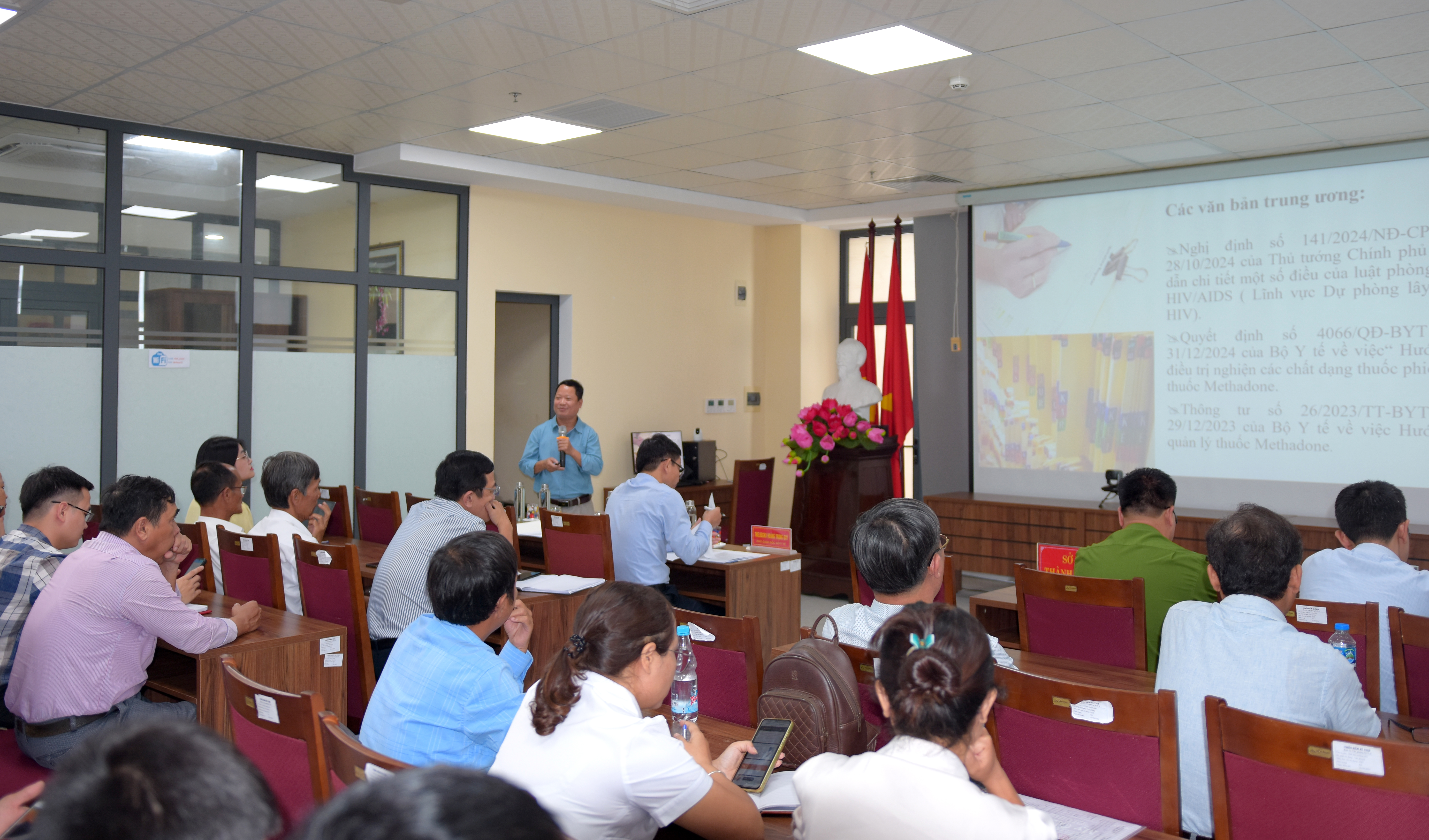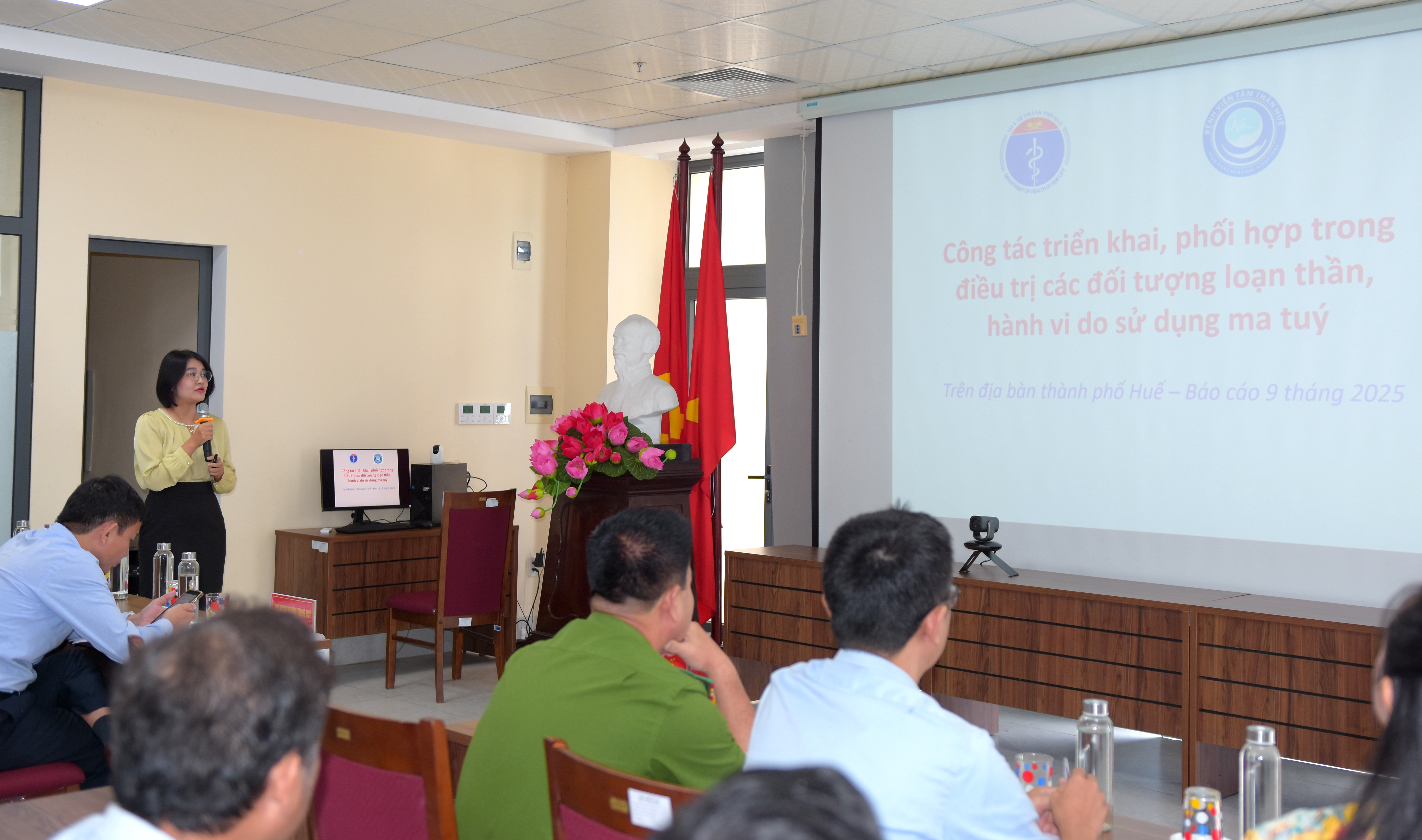 Tham dự hội nghị có Phòng Cảnh sát điều tra tội phạm về ma túy - Công An thành phố, lãnh đạo/chuyên viên các phòng chuyên môn/nghiệp vụ Sở Y tế, Bệnh viện Tâm thần Huế, Trung tâm Kiểm soát bệnh tật, các Trung tâm Y tế, đại diện UBND và trạm Y tế 40 xã/phường trên địa bàn thành phố.