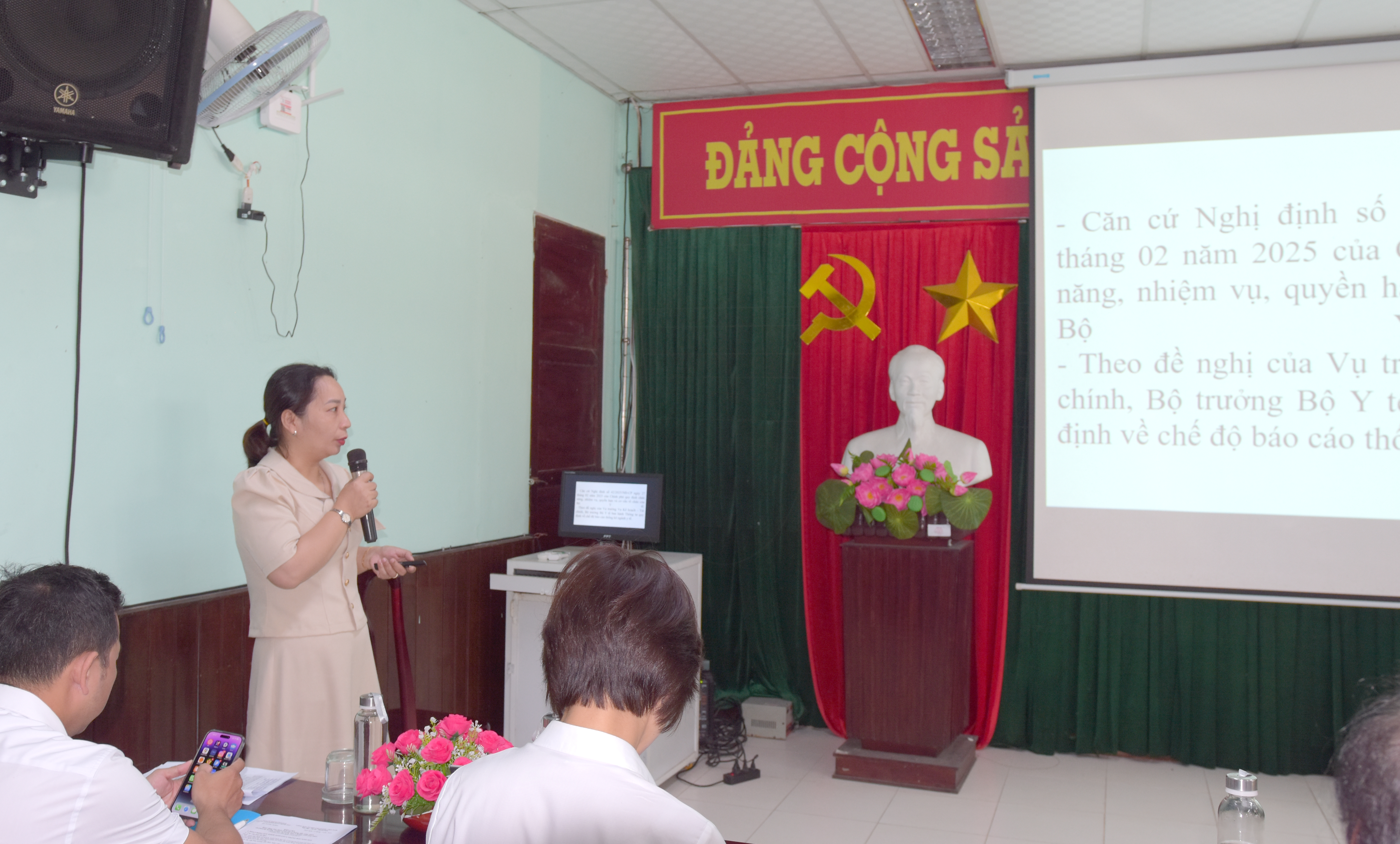 ThS.BS Hà Thị Mỹ Dung - Trưởng Khoa Sức khỏe Bà Mẹ - Trẻ em báo cáo sơ kết hoạt động SKSS.