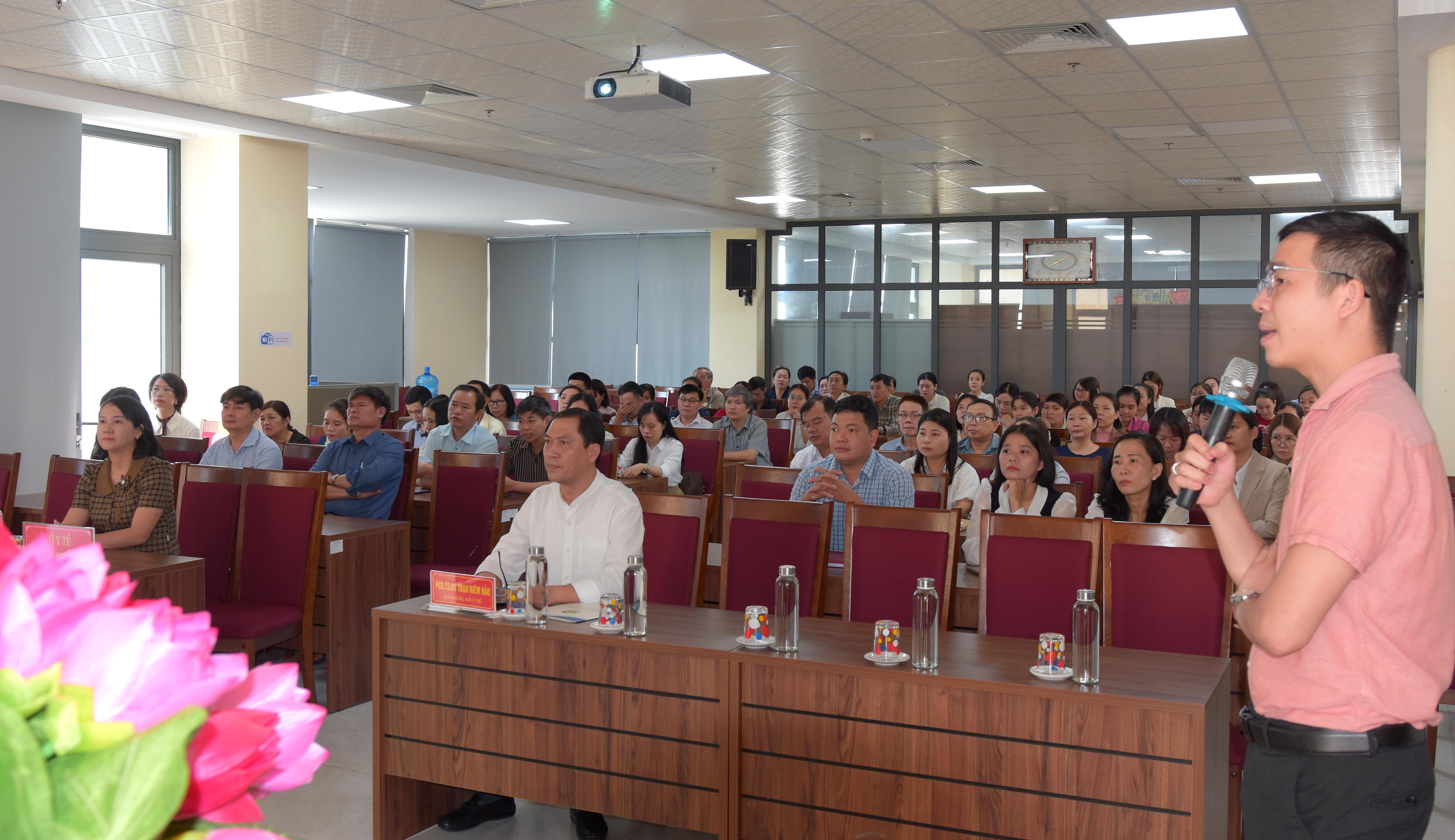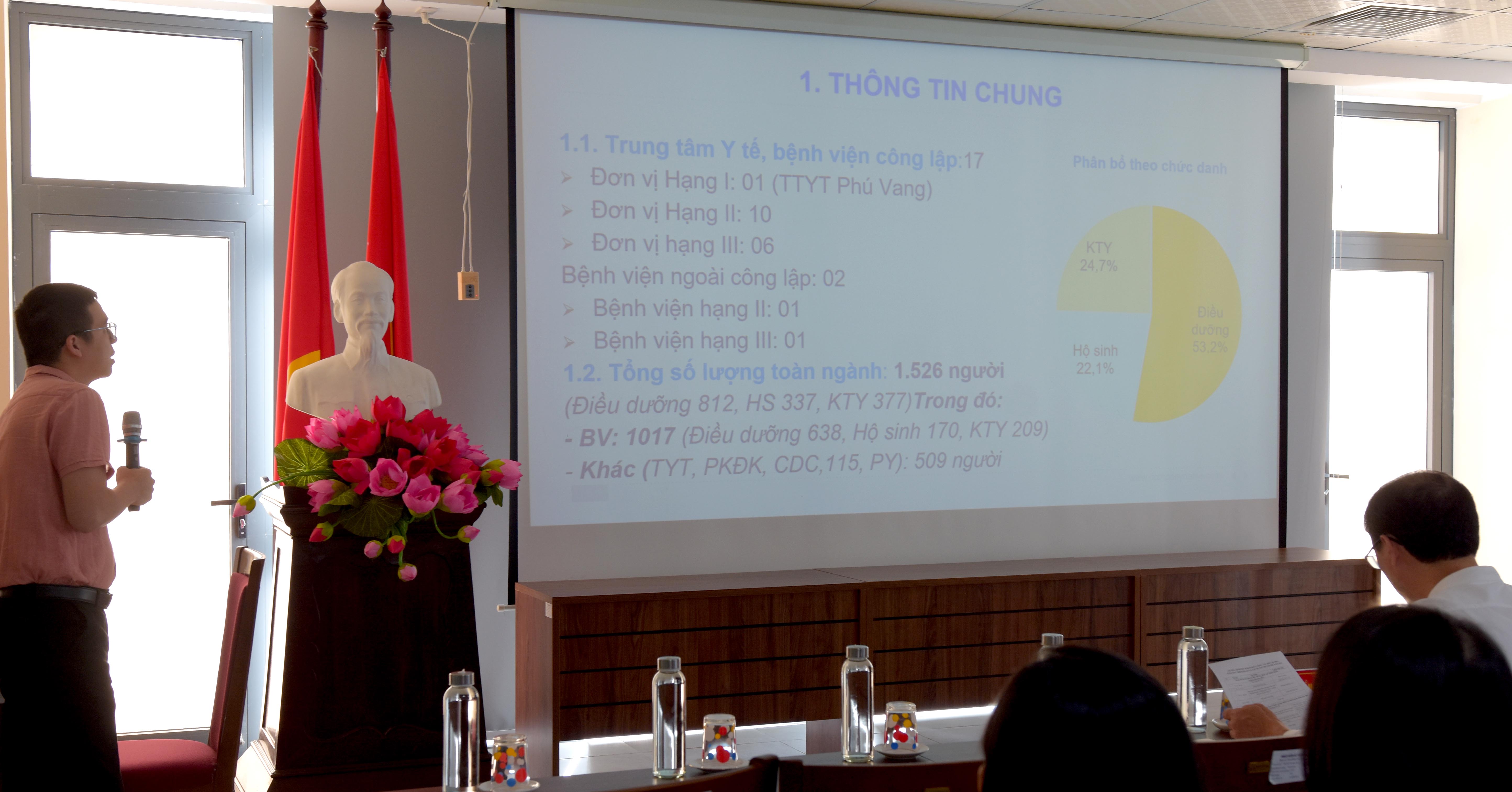 ThS.BS Trần Đoàn Quốc Long - Chuyên viên Phòng Nghiệp vụ Y, báo cáo công tác Điều dưỡng và Kiểm soát nhiễm khuẩn của hệ thống y tế thành phố Huế.