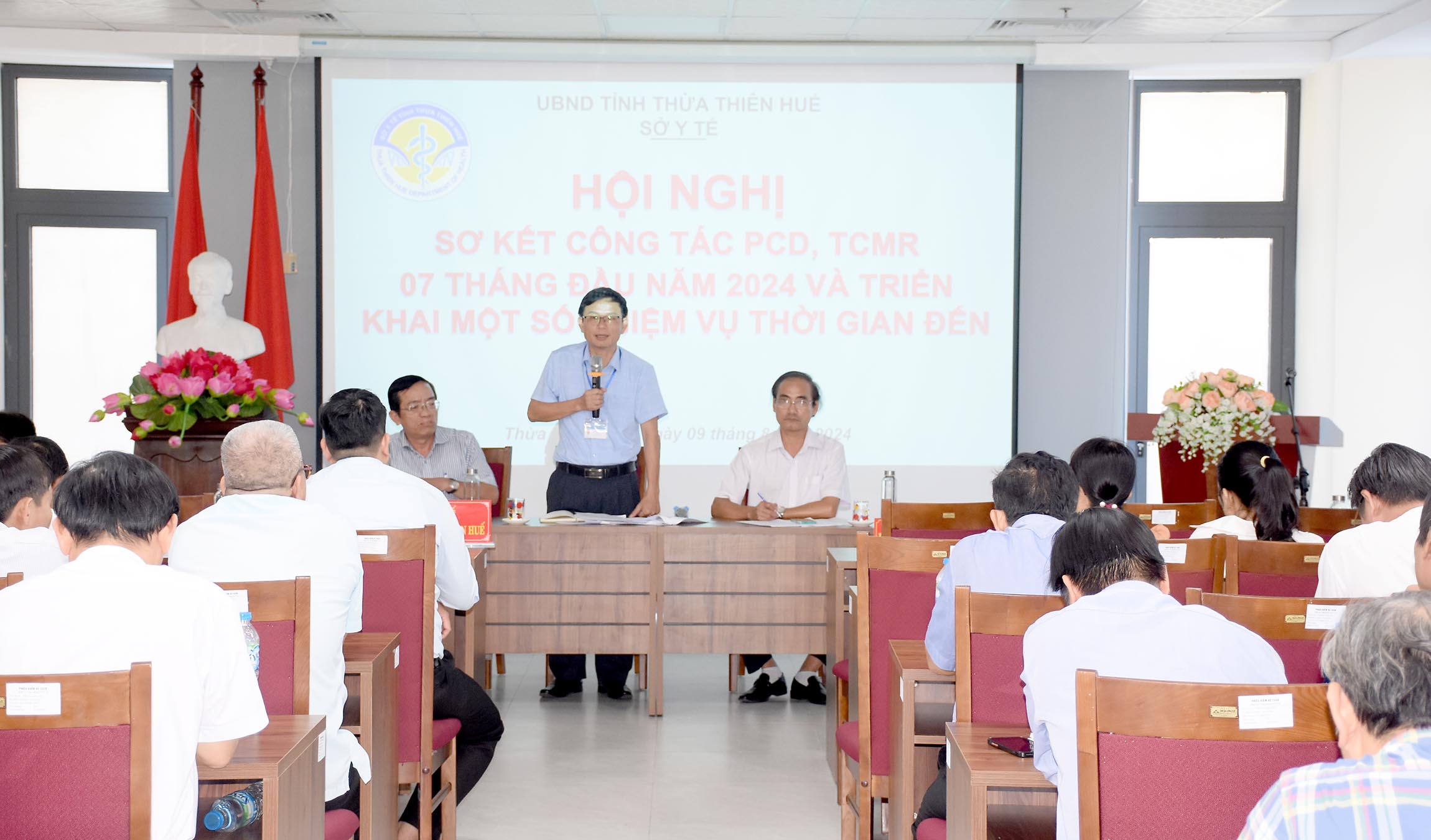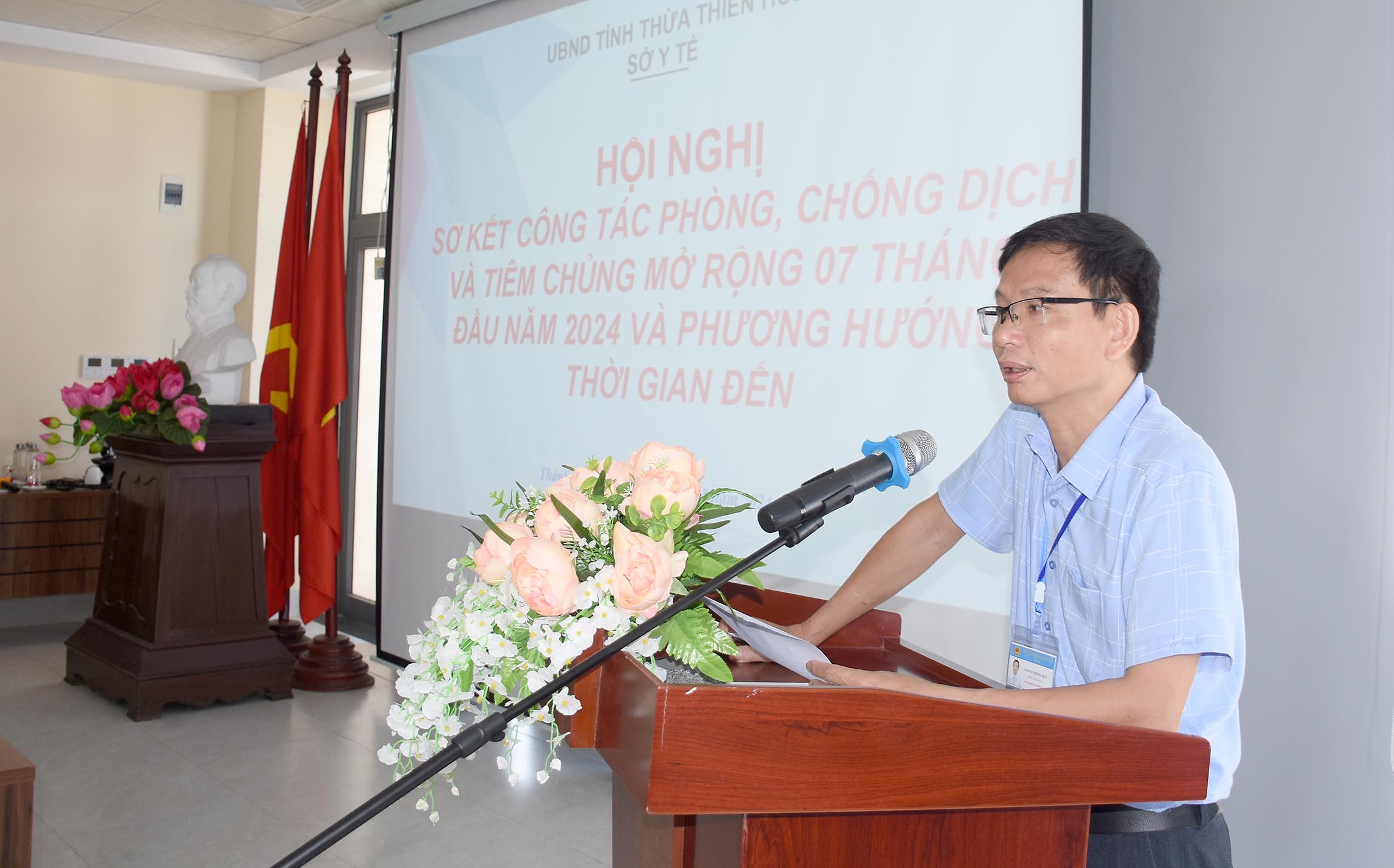 Ngày 9/8/2024, Sở Y tế tổ chức “Hội nghị Sơ kết công tác Phòng chống dịch bệnh và Tiêm chủng mở rộng 7 tháng đầu năm 2024 và triển khai một số nhiệm vụ trong thời gian tới”. Tham dự hội nghị có lãnh đạo và chuyên viên phòng Nghiệp vụ Y sở y tế; đại diện lãnh đạo UBND, lãnh đạo, cán bộ chuyên trách PCDB và TCMR các TTYT huyện/thị xã/thành phố; Ban Giám đốc cùng lãnh đạo khoa Phòng chống bệnh truyền nhiễm - Ký sinh trùng - Côn trùng và các bộ phận liên quan của Trung tâm KSBT, ThS.BSCKII Hoàng Trọng Quý - Phó Giám đốc Sở Y tế chủ trì hội nghị.