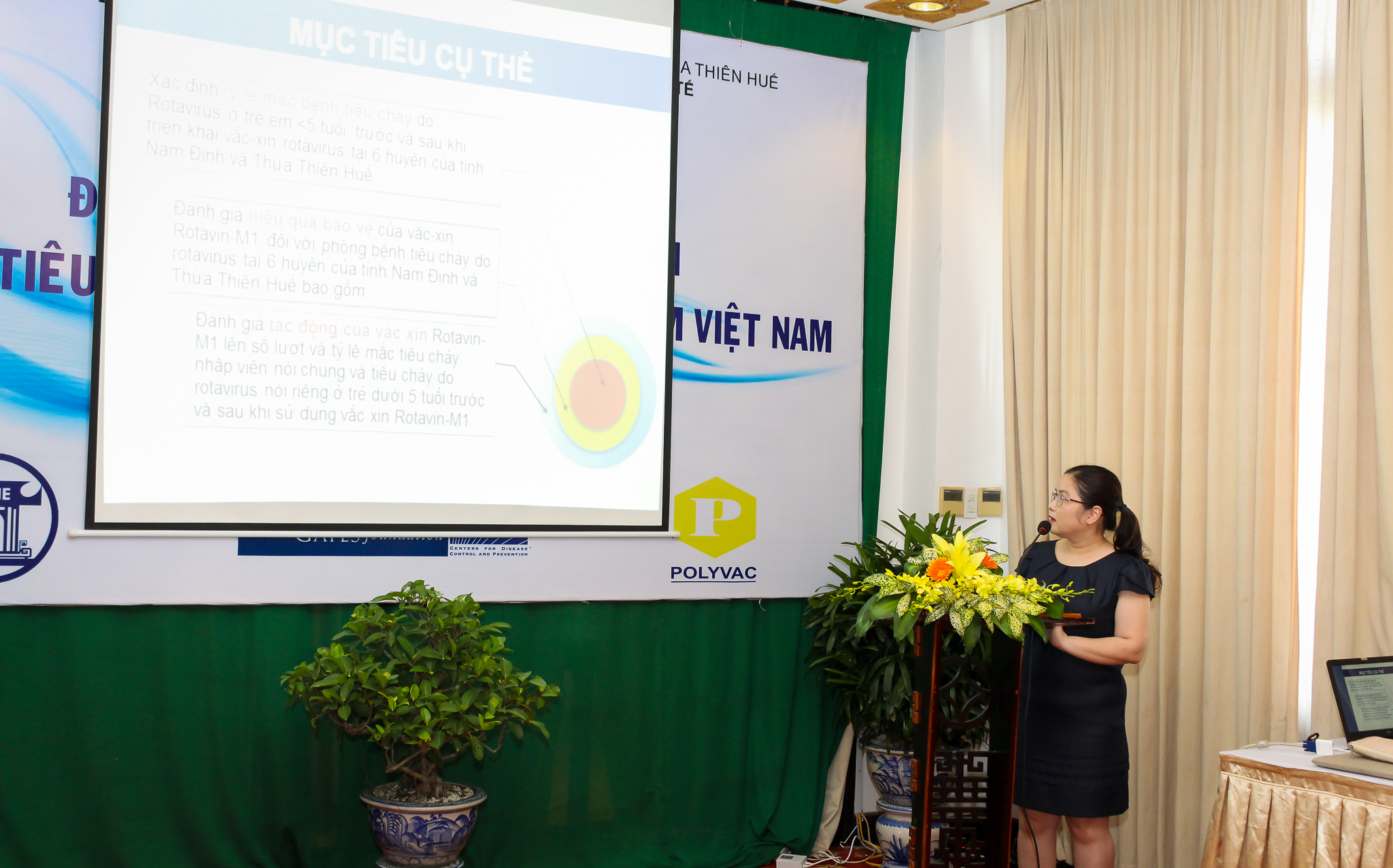 Tại Hội nghị các đại biểu đã được nghe PGS.TS Nguyễn Đình Sơn - Phó Giám đốc phụ trách Trung tâm Kiểm soát bệnh tật tỉnh Thừa Thiên Huế trình bày những thuận lợi, khó khăn và phương hướng sắp đến trong quá trình triển khai dự án Rotavin tại Thừa Thiên Huế.