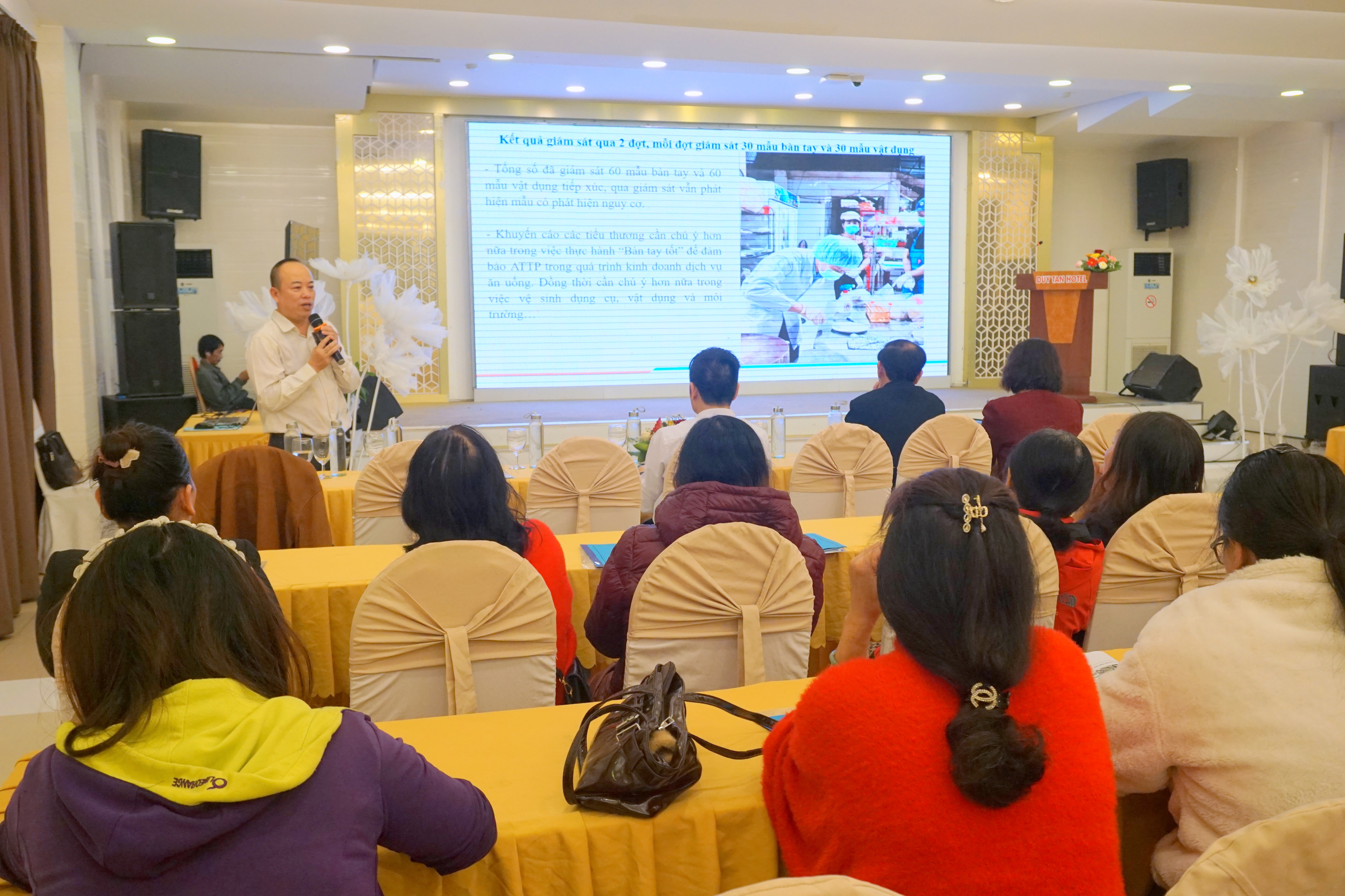 Tại hội nghị, các đại biểu đã được nghe Th.BS Lê Viết Thận – Phòng An toàn thực phẩm toàn báo cáo kết quả xây dựng mô hình điểm “Chợ an toàn thực phẩm trong kinh doanh dịch vụ ăn uống” tại chợ Tây Lộc. Báo cáo nêu rõ quá trình triển khai, những kết quả đạt được cũng như các khó khăn, tồn tại trong thực tiễn thực hiện mô hình.