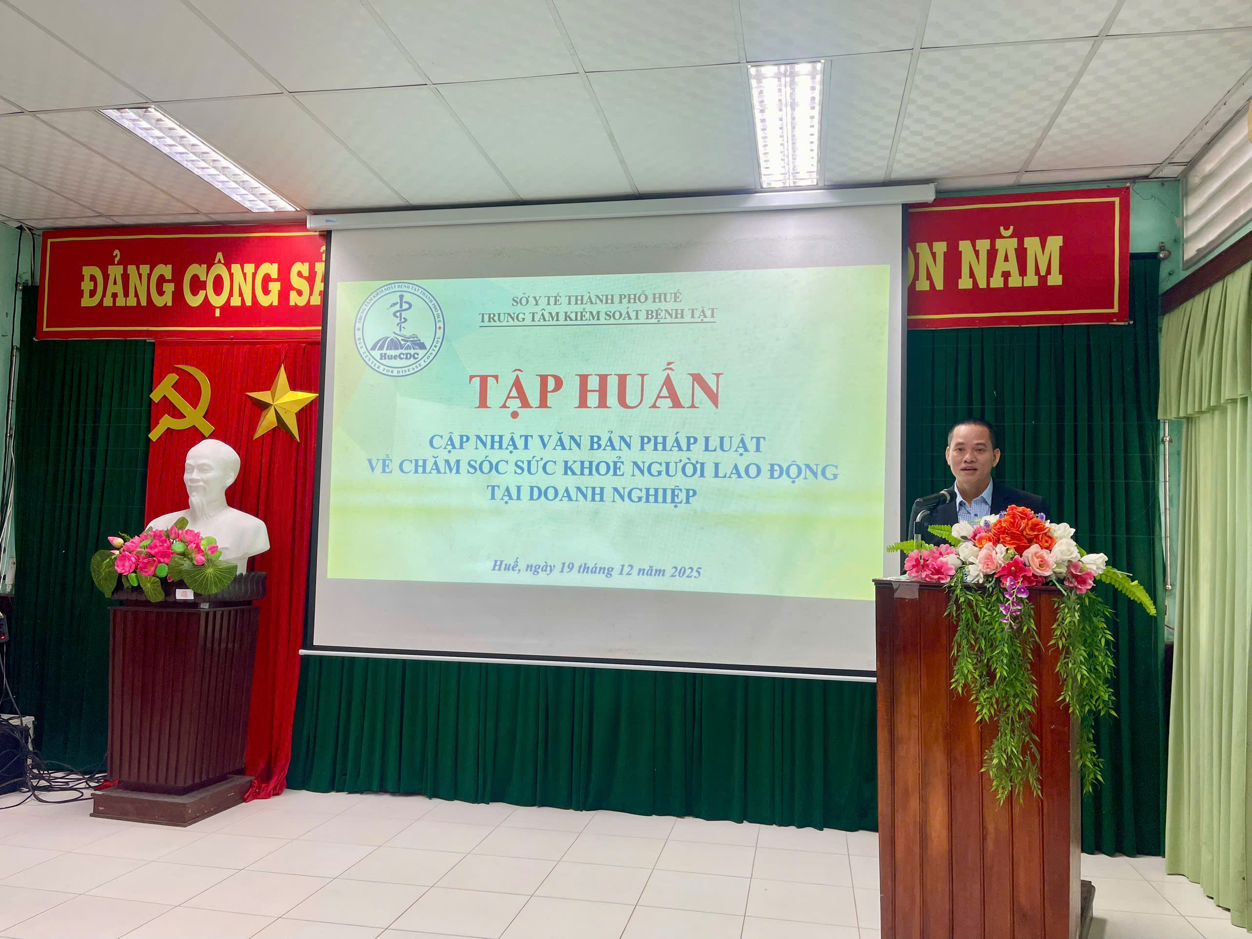 Ngày 19/12, Trung tâm Kiểm soát bệnh tật thành phố Huế tổ chức Hội nghị tập huấn cập nhật văn bản pháp luật về chăm sóc sức khỏe người lao động tại doanh nghiệp năm 2025. Tham dự có đại diện các doanh nghiệp sản xuất, kinh doanh trên địa bàn thành phố Huế, cùng đội ngũ cán bộ làm công tác an toàn, vệ sinh lao động