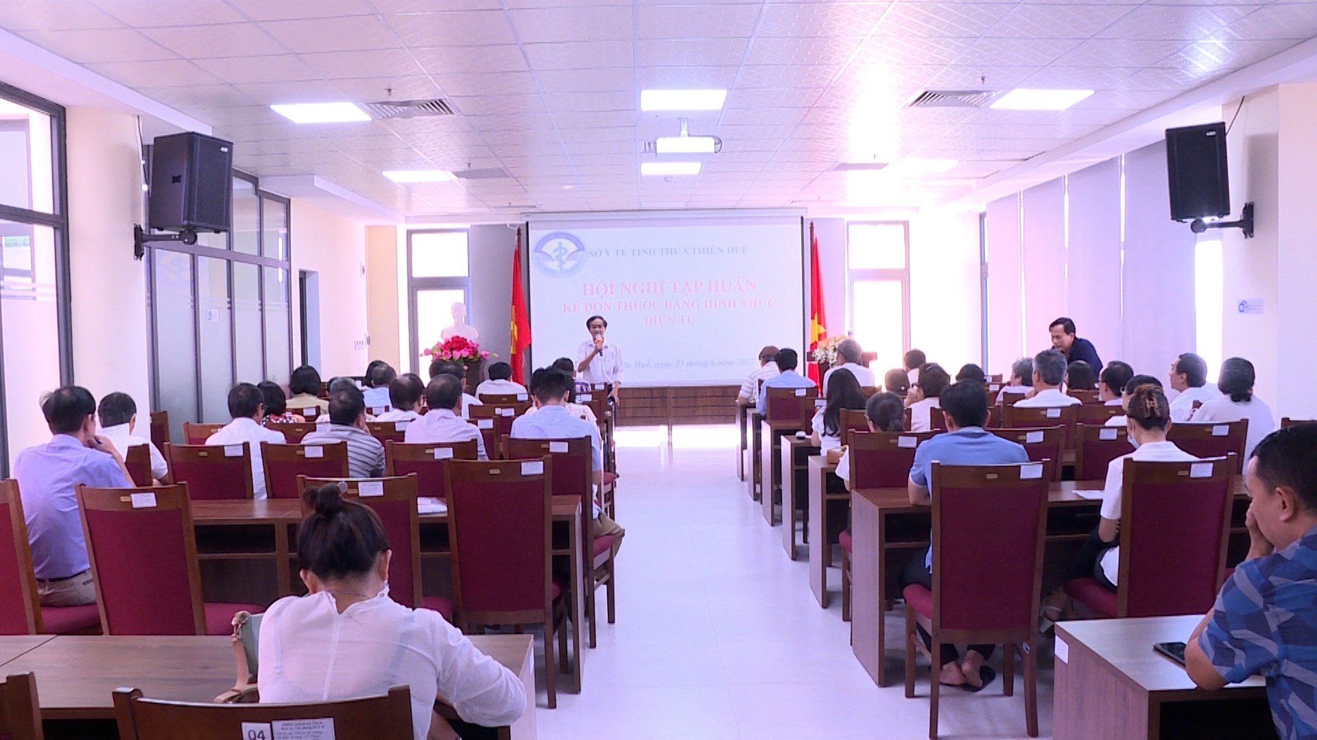 Thực hiện Kế hoạch số 1961/KH-SYT ngày 6/6/2023 của Sở Y tế về việc Tổ chức tập huấn triển khai kê đơn thuốc điện tử. Nhằm mục tiêu đạt 100% các cơ sở khám chữa bệnh công lập và ngoài công lập triển khai kê đơn thuốc điện tử đảm bảo đúng lộ trình quy định tại Thông tư số 04/2022/TT-BYT ngày 12/7/2022 của Bộ Y tế về việc sửa đổi, bổ sung một số điều của Thông tư số 52/2017/TT-BYT ngày 29 tháng 12 năm 2017 và Thông tư số 18/2018/TT-BYT ngày 22 tháng 8 năm 2018 của Bộ trưởng Bộ Y tế sửa đổi, bổ sung một số điều của Thông tư số 52/2017/TT-BYT quy định về đơn thuốc và kê đơn thuốc hóa dược, sinh phẩm trong điều trị ngoại trú và Thông tư số 27/2021/TT-BYT ngày 20 tháng 12 năm 2021 của Bộ trưởng Bộ Y tế về việc quy định kê đơn thuốc bằng hình thức điện tử. Ngày 23/6/3023, Sở Y tế tổ chức Hội nghị tập huấn Triển khai kê đơn thuốc bằng hình thức điện tử. Tham dự Hội nghị Ông Lê Đình Nhân – Phó Trưởng phòng Nghiệp vụ Y, Bà Phạm Thị Vân – Phó Tổng Hội tin học y tế Việt nam – Bộ Y tế cùng các cơ sở khám chữa bệnh ngoài công lập.