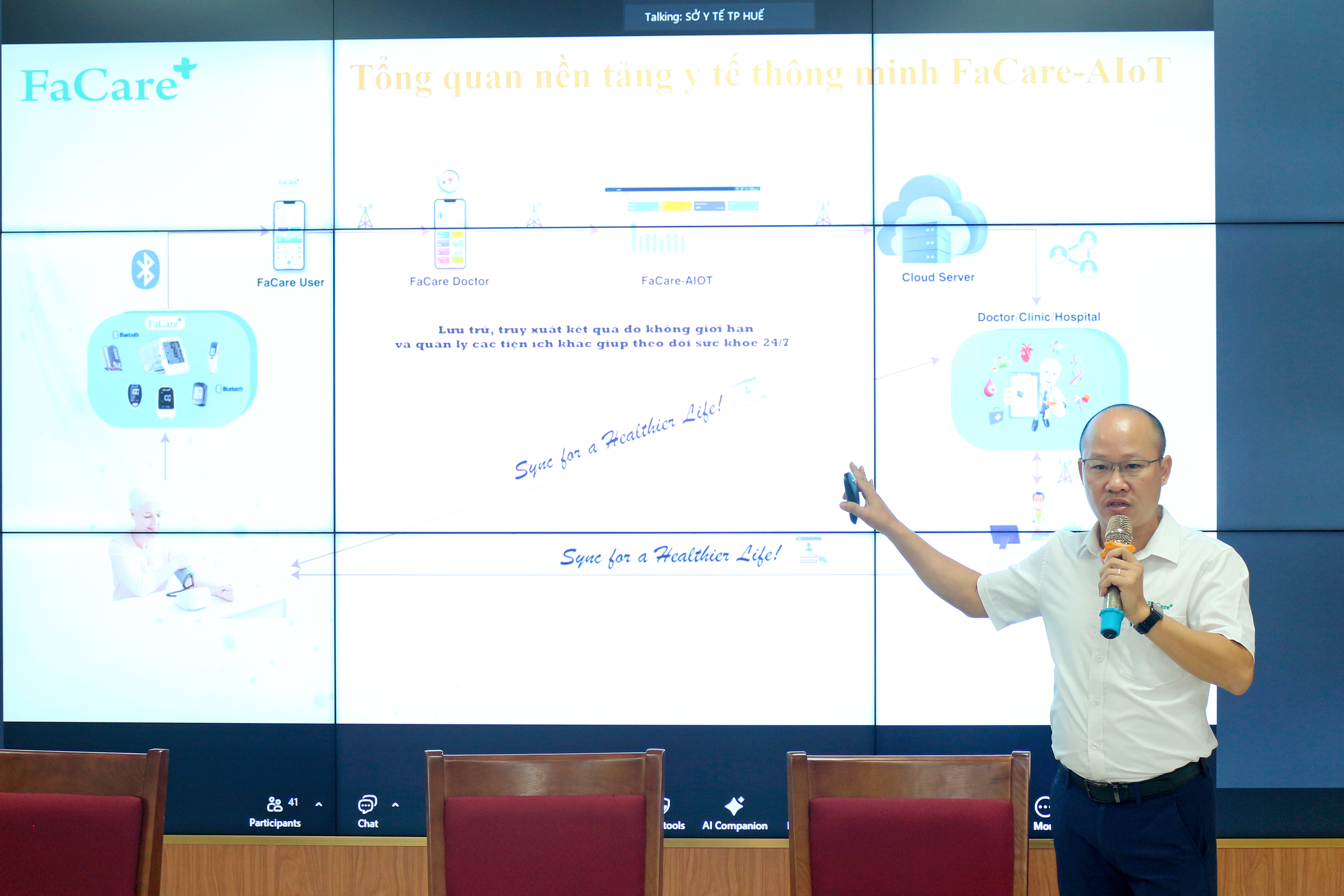 Đại diện Công ty Cổ phần Công nghệ Y tế FaCare Quốc tế trình bày nền tảng