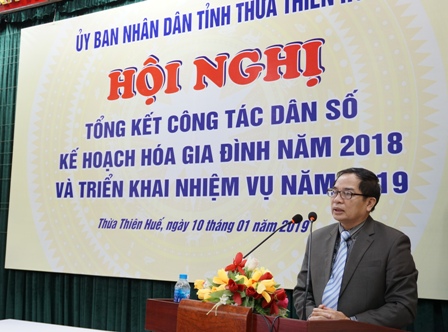 Phát biểu tại hội nghị, Phó Chủ tịch UBND tỉnh - Nguyễn Dung, đánh giá cao những kết quả đạt được của công tác dân số kế hoạch hoá gia đình năm 2018 và lưu ý một số vấn đề chưa thực hiện tốt như tỷ lệ sinh con thứ 3 vẫn còn cao ở một số đơn vị, việc chưa quan tâm đúng mức trong thực hiện mô hình “Xã, phường, cụm dân cư không sinh con thứ 3 trở lên”, tình trạng tảo hơn tại hai huyện miền núi Nam Đông, A Lưới vẫn còn xảy ra. Phó Chủ tịch UBND tỉnh lưu ý, năm 2019 là năm thứ 4 của kế hoạch 5 năm thực hiện phát triển kinh tế các hội của tỉnh và Chương trình mục tiêu y tế dân số giai đoạn 2016-2020. Để đạt được mục tiêu đề ra cần có sự tham gia chỉ đạo và vào cuộc tích cực của các cấp ủy Đảng, chính quyền, sự phối hợp của các ban, ngành, đoàn thể và sự nỗ lực quyết tâm của những người làm công tác công tác dân số kế hoạch hoá gia đình từ tỉnh đến cơ sở.