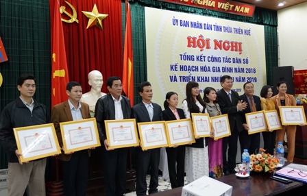 Các chỉ tiêu về Dân số - KHHGĐ của tỉnh đều đạt và vượt kế hoạch đề ra: giảm sinh đạt 0,21%0; tỷ lệ tăng tự nhiên dân số đạt 1,08%; tỷ số giới tính khi sinh là 112,6 bé trai/100 bé giái và tỷ lệ các cặp vợ chồng áp dụng biện pháp tránh thai là 71,5%. Những đơn vị có tỷ lệ sinh con thứ 3 trở lên giảm rõ rệt so với năm 2017 là huyện Phú Vang, thị xã Hương Thủy, thị xã Hương Trà và huyện Phú Lộc.