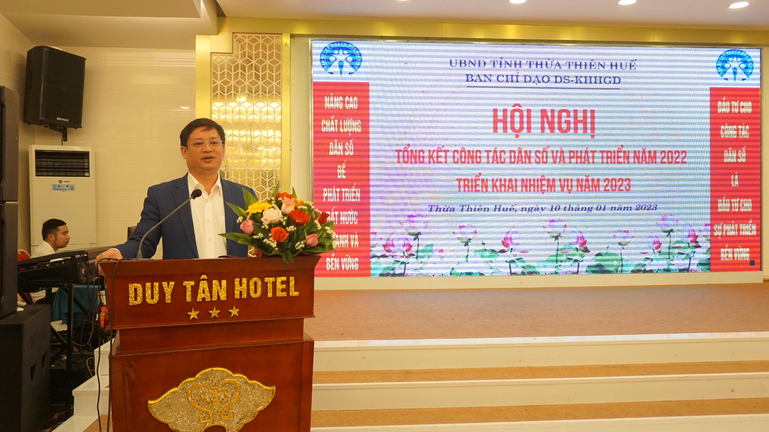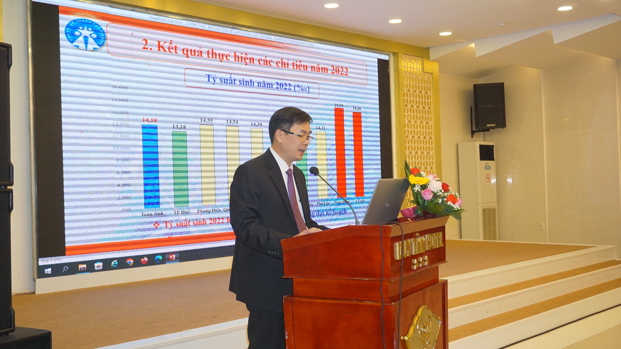 Phát biểu chỉ đạo hội nghị, Phó Chủ tịch UBND tỉnh Nguyễn Thanh Bình đã ghi nhận kết quả đạt được về công tác Dân số -KHHGĐ, tuy nhiên nhiệm vụ chính cần nhấn mạnh đó là vấn đề tảo hôn, sinh con thứ 3 và chăm sóc người cao tuổi cần được đẩy mạnh. Qua đó, nâng cao chất lượng dân số, chú trọng về nguồn nhân lực, nâng chỉ tiêu chăm sóc sức khỏe cho cộng đồng. Tăng cường sự lãnh đạo, chỉ đạo hơn nữa của cấp ủy, chính quyền các cấp vể công tác DS-KHHGĐ, chuyển trọng tâm chính sách từ tập trung vào KHHGĐ sang giải quyết toàn diện các vấn đề quy mô, cơ cấu, phân bố và chất lượng dân số ; tiếp tục hoàn thiện chính sách, pháp luật về dân số gắn với xây dựng gia đình hạnh phúc; phối hợp với UBND cấp huyện rà soát các đơn vị có mức sinh và tỷ lệ sinh con thứ ba trở lên còn cao để chỉ đạo triển khai với những hoạt động cụ thể; tiếp tục kiện toàn tổ chức bộ máy làm công tác dân số theo hướng tinh gọn, chuyên nghiệp; Đẩy mạnh trong ngành Y tế tổ chức triển khai công tác chuyển đổi số, tăng cường hoạt động truyền thông về DS-KHHGĐ, nhằm thực hiện tốt các mục tiêu, ưu tiên cho những vùng trọng tâm, trọng điểm, vùng có tỷ lệ sinh con thứ ba trở lên còn cao trở lên so với mặt bằng chung của tỉnh; đẩy mạnh tuyên truyền giảm thiểu tình trạng tảo hôn và sinh con thứ 3 trở lên tại hai huyện Nam Đông và A Lưới…nhằm góp phần nâng cao chất lượng dân số, hoàn thành các chỉ tiêu phát triển kinh tế - xã hội của tỉnh nhà./