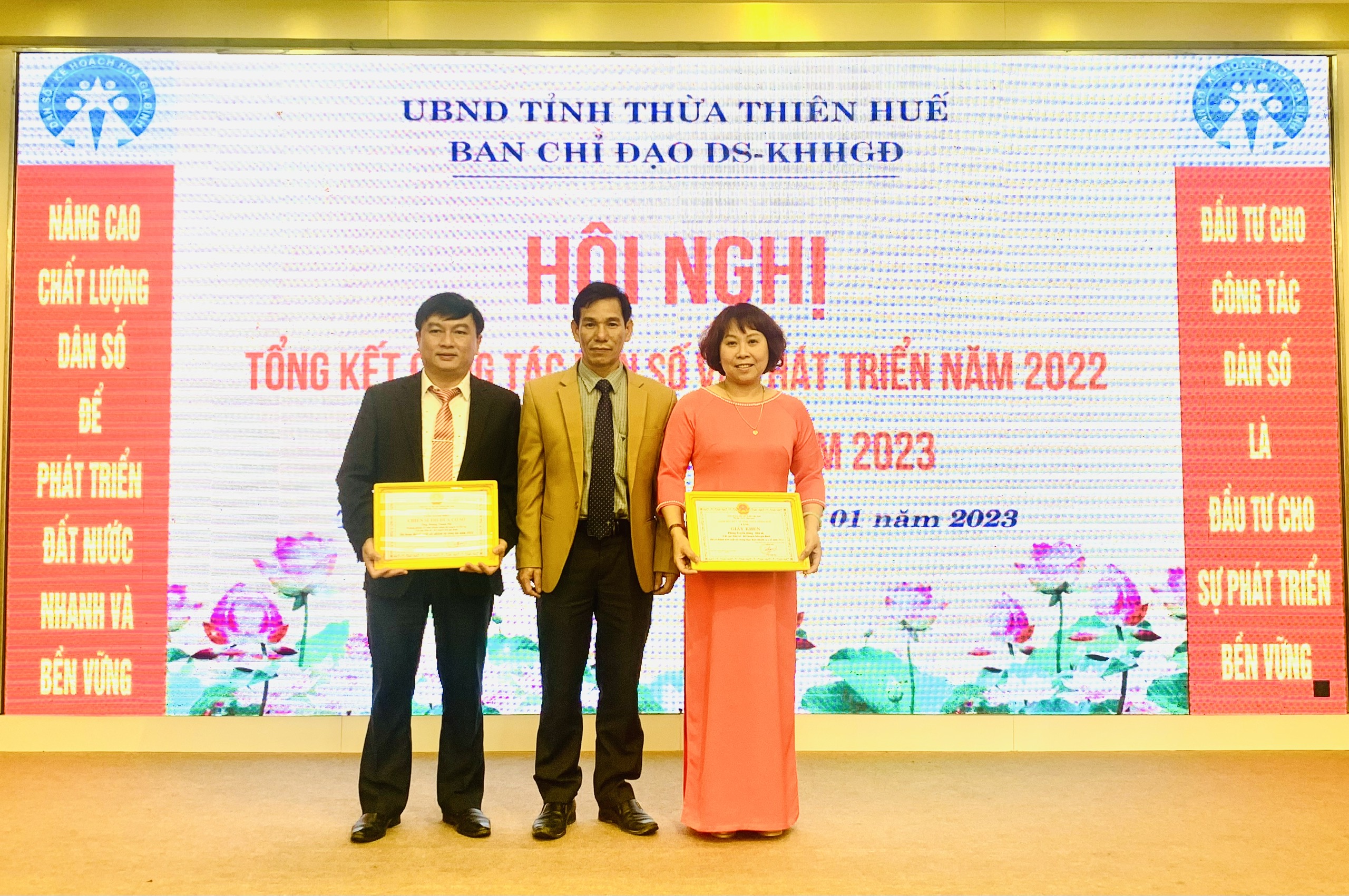 Tại hội nghị, UBND tỉnh đã trao bằng khen cho 2 cụm dân cư đạt 3 năm liền không có người sinh con thứ 3 trở lên. Giấy khen của Tổng cục Dân số cho các tập thể, cá nhân có thành tích xuất sắc và giấy khen của Sở Y tế cho các tập thể và các cá nhân có thành tích xuất sắc trong năm 2022.