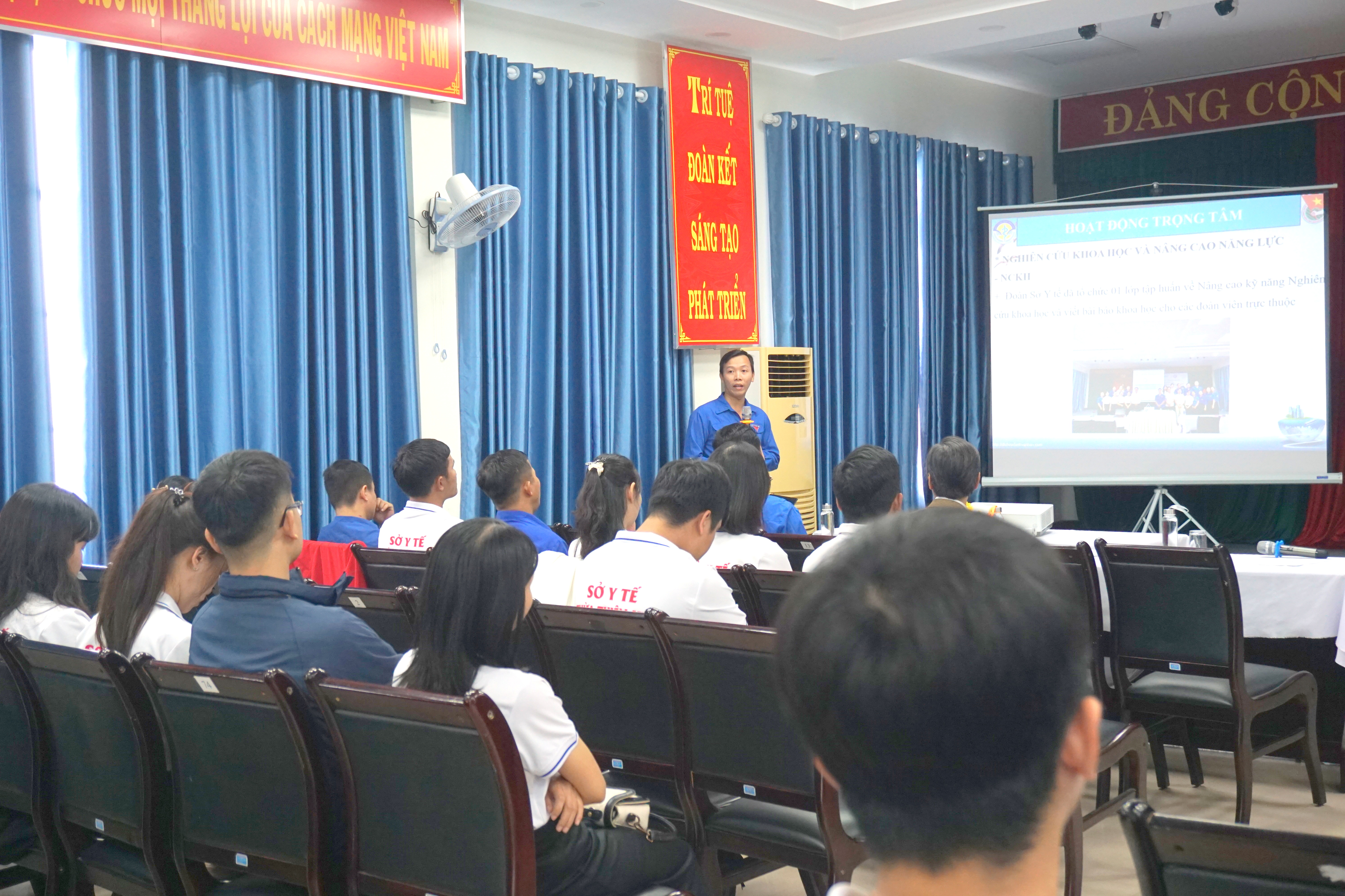 Đ/c Hồ Minh Duy – Bí thư đoàn Thanh niên Sở Y tế trình bày phương hướng nhiệm vụ trọng tâm công tác đoàn và phong trào thanh niên năm 2024