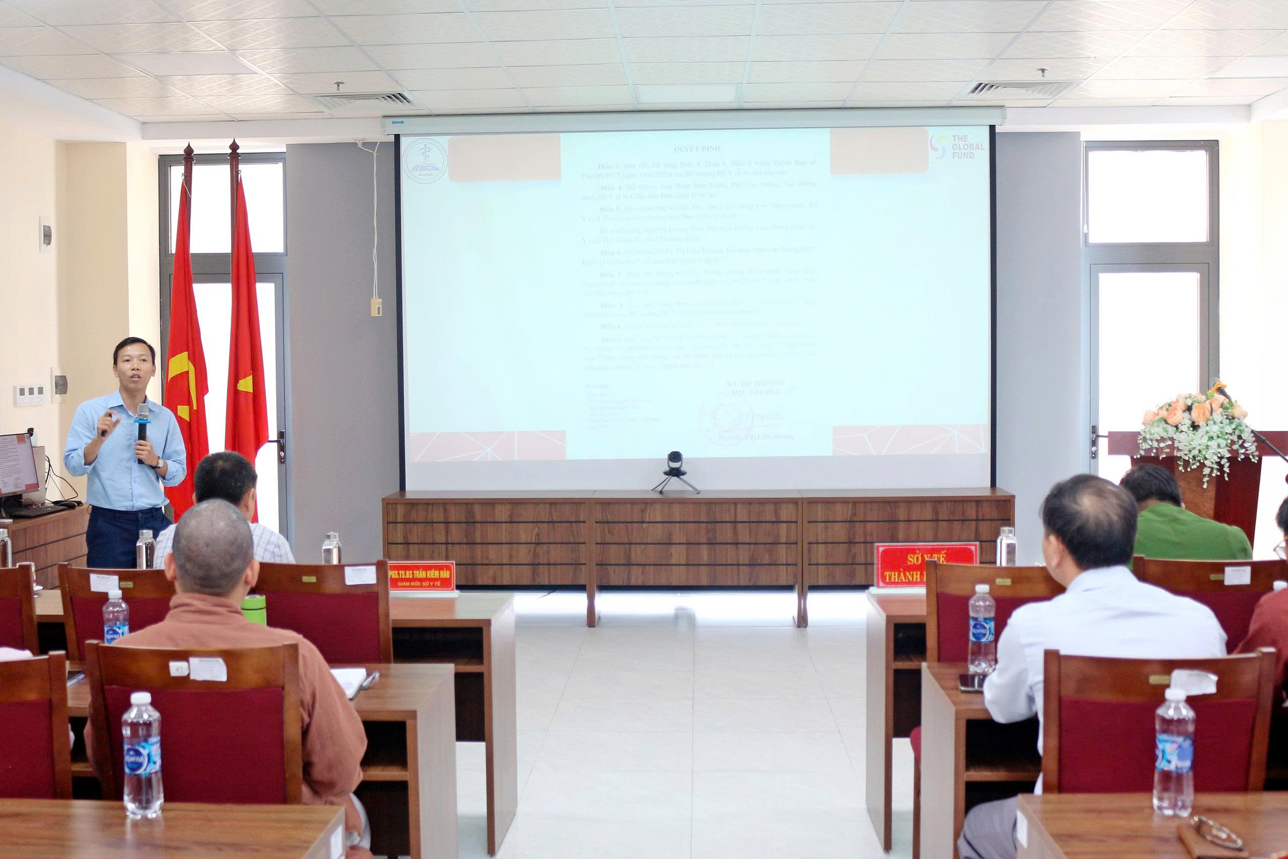 ThS Nguyễn Văn Mỹ - Cán bộ Khoa Phòng, chống HIV/AIDS báo cáo tại hội nghị