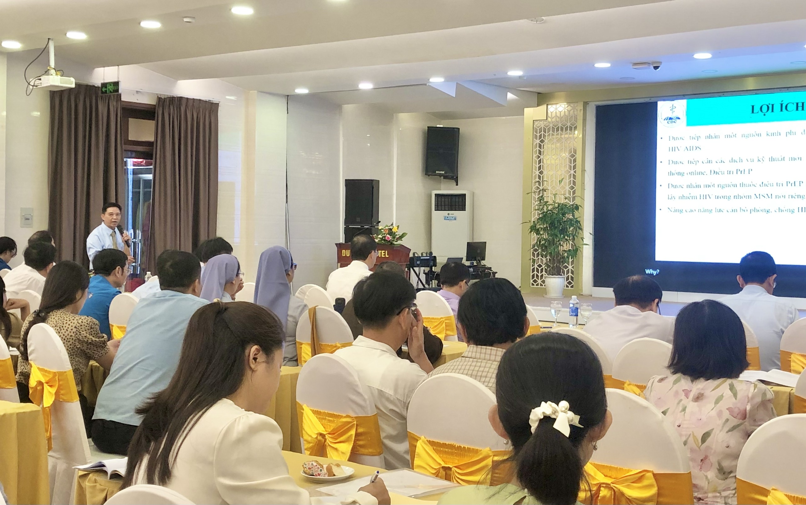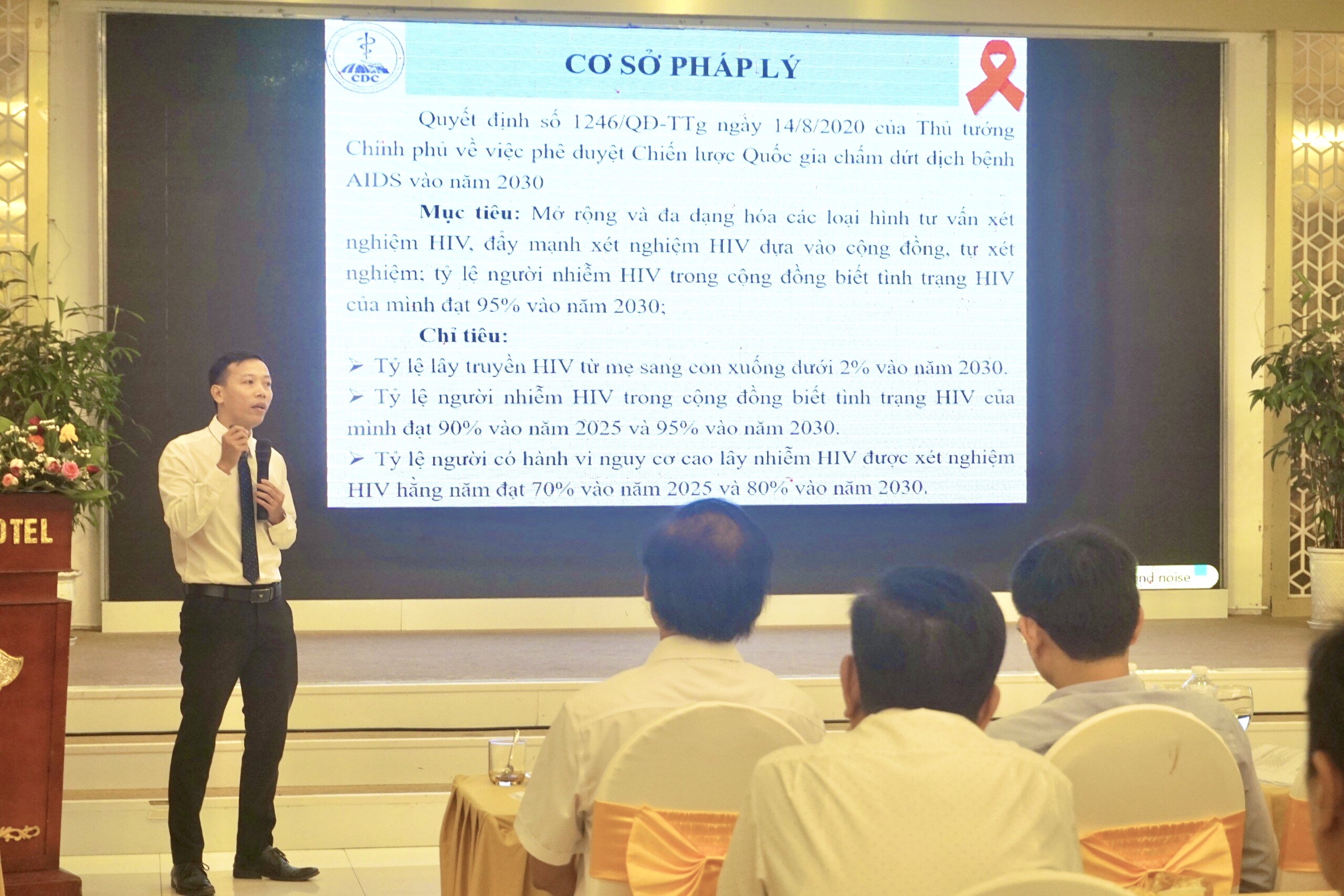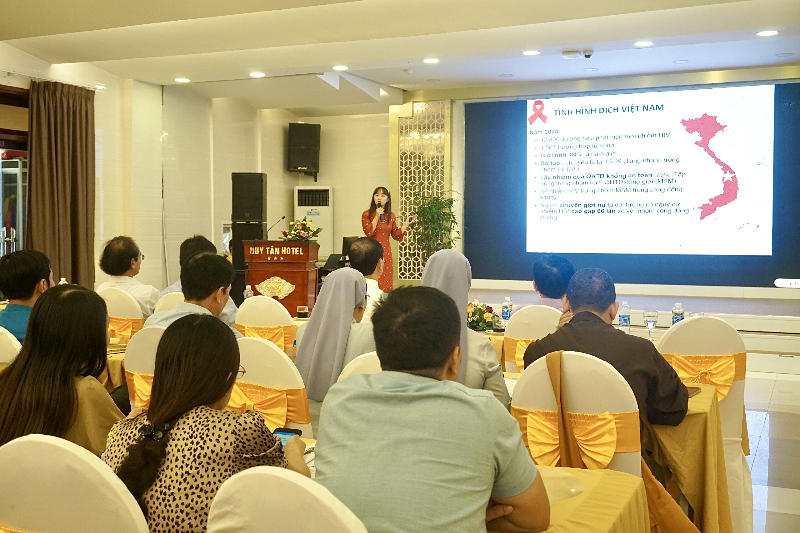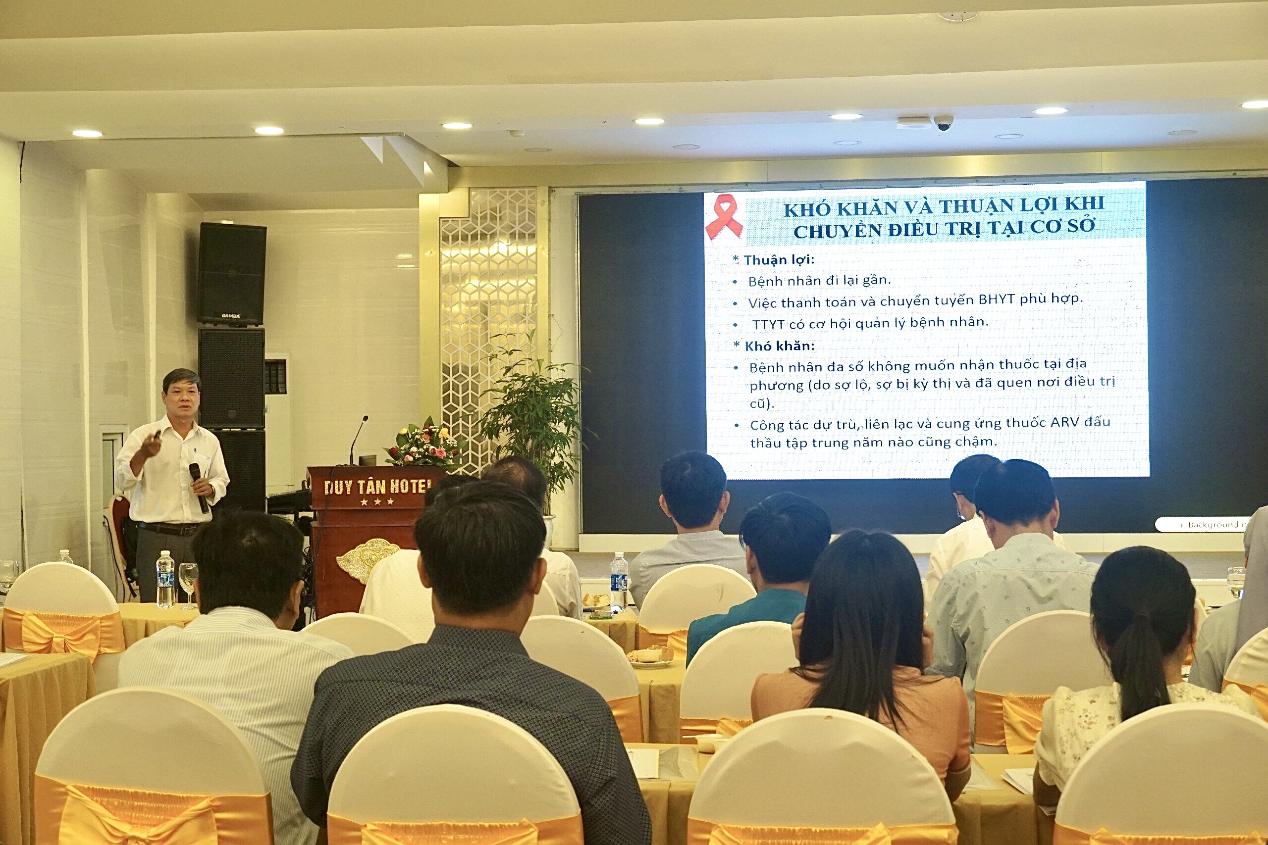 Báo cáo viên khoa PC HIV/AIDS - TTKSBT trình bày các nội dung tại Hội nghị