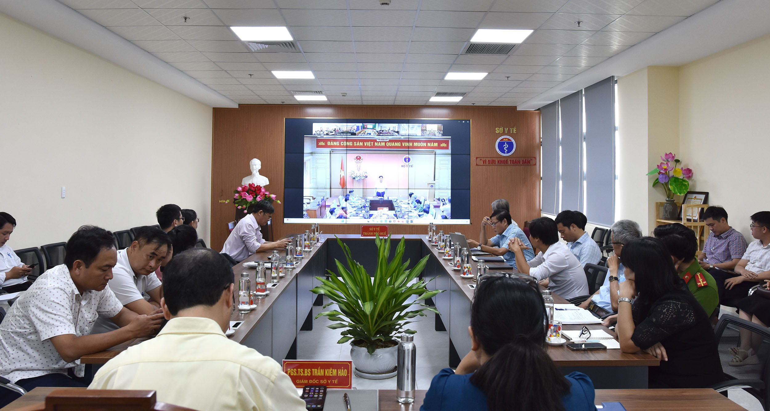 Tham dự hội nghị, tại đầu cầu thành phố Huế có PGS.TS Trần Kiêm Hảo - Giám đốc Sở Y tế, lãnh đạo các Phòng Nghiệp vụ Dược, Phòng An toàn thực phẩm, Phòng Thanh tra Sở Y tế. Đại diện lãnh đạo Sở Công thương, Sở Nông nghiệp và Môi trường, Sở Văn hóa - Thể thao và Du lịch, Công an thành phố. Đại diện lãnh đạo UBND, TTYT, cán bộ phụ trách công tác Dược và An toàn thực phẩm các quận/huyện/thị xã trên địa bàn thành phố Huế.