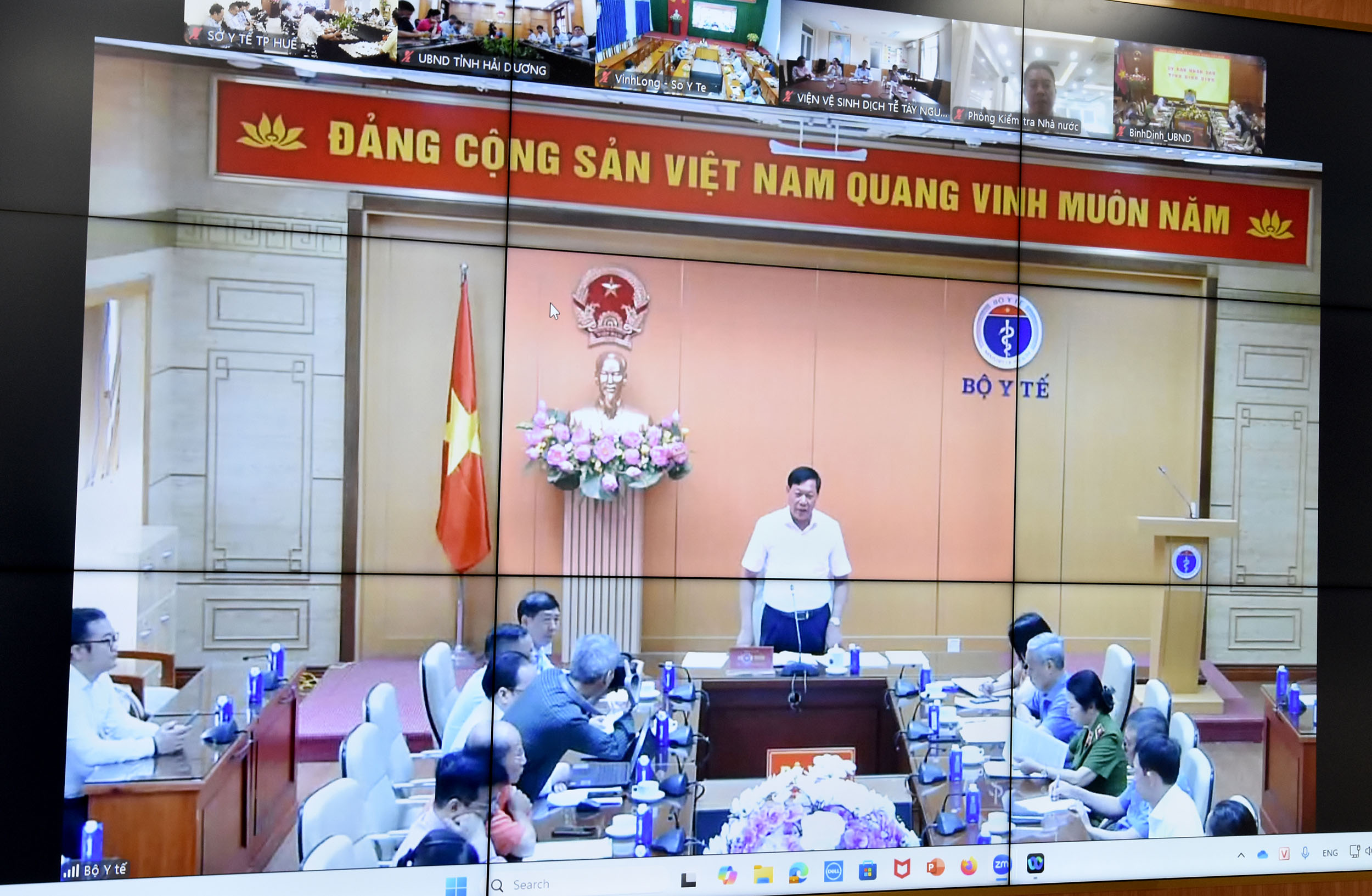 Sáng ngày 7/5, Bộ Y tế tổ chức Hội nghị trực tuyến toàn quốc về tăng cường kiểm tra việc chấp hành các quy định pháp luật về Dược, An toàn thực phẩm, đồng chí Đỗ Xuân Tuyên - Thứ trưởng thường trực Bộ Y tế chủ trì hội nghị. Tham dự hội nghị có lãnh đạo Bộ Y tế, Văn phòng Bộ, Cục Phòng bệnh, Cục Quản lý khám chữa bệnh, Cục Quản lý Dược, Cục An toàn thực phẩm, Thanh tra Bộ Y tế, đại diện các Bộ Công an, Bộ Công thương, Bộ Nông nghiệp và Nông thôn, Bộ VH-TT-DL, hội nghị được trực tuyến đến các tỉnh/thành trên toàn quốc.