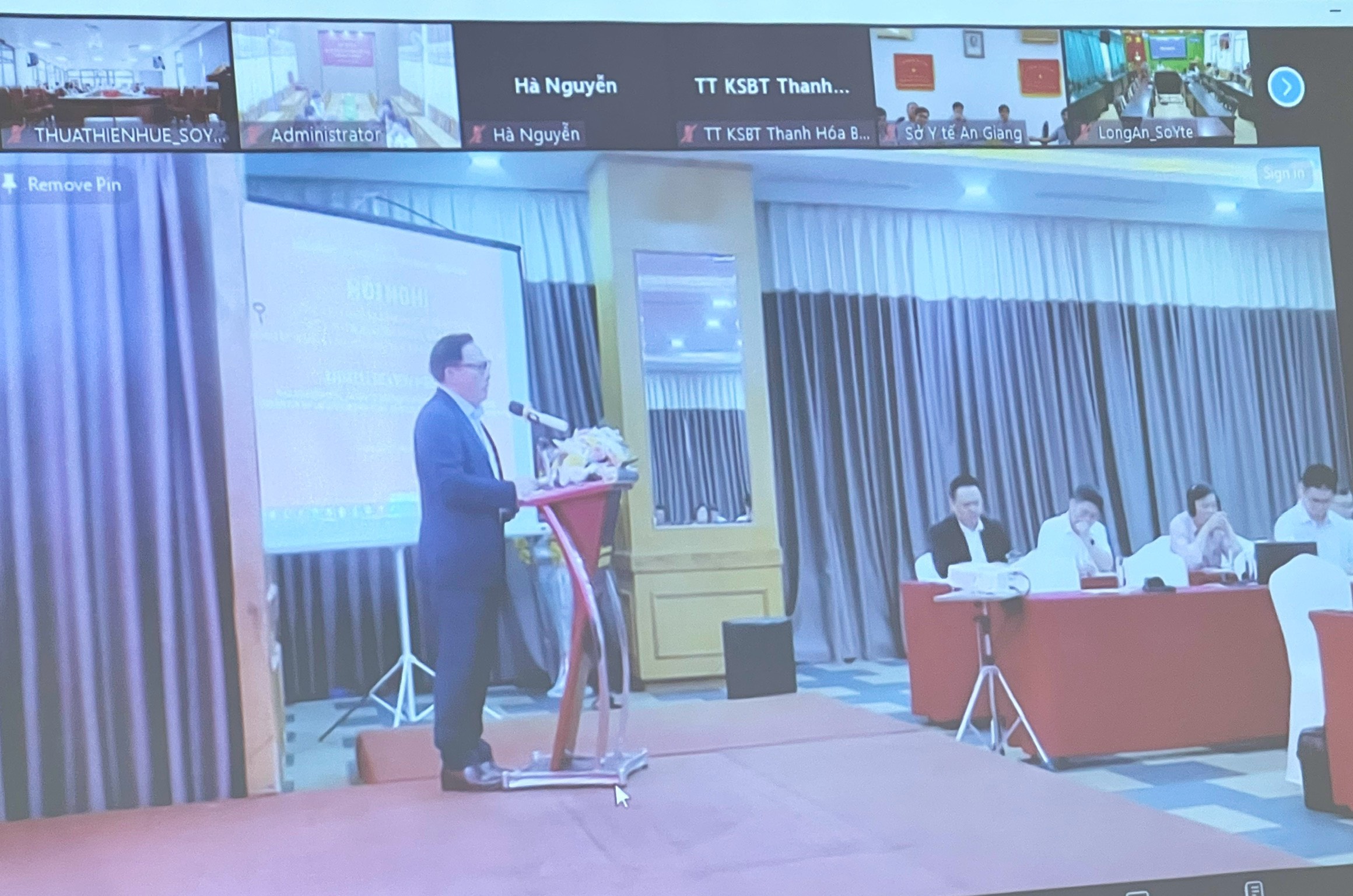 ThS.BS.CKII Hoàng Trọng Quý - Phó Giám đốc Sở Y tế tham dự chủ trì tại điểm cầu tỉnh Thừa Thiên Huế.